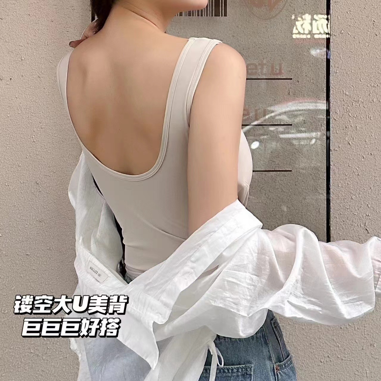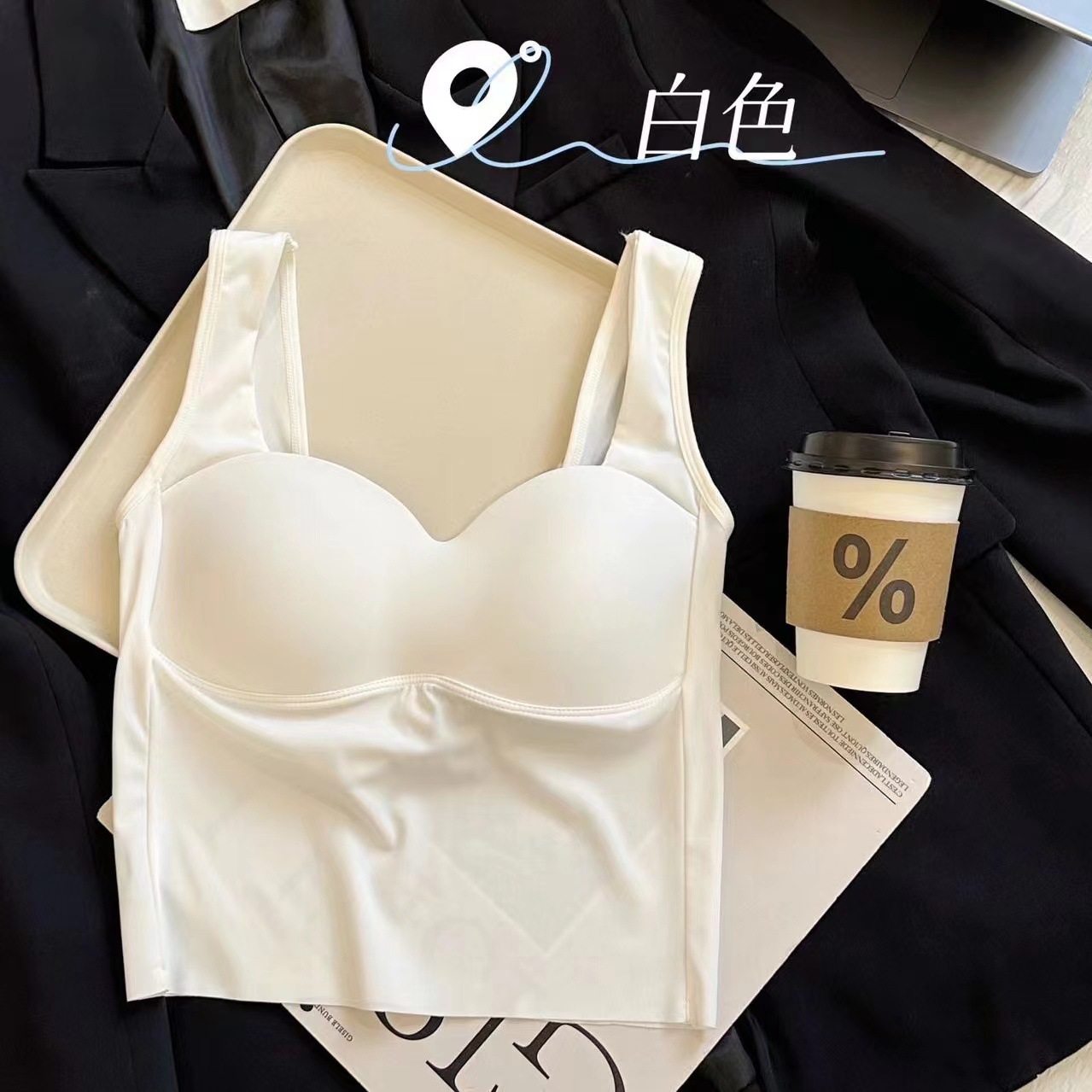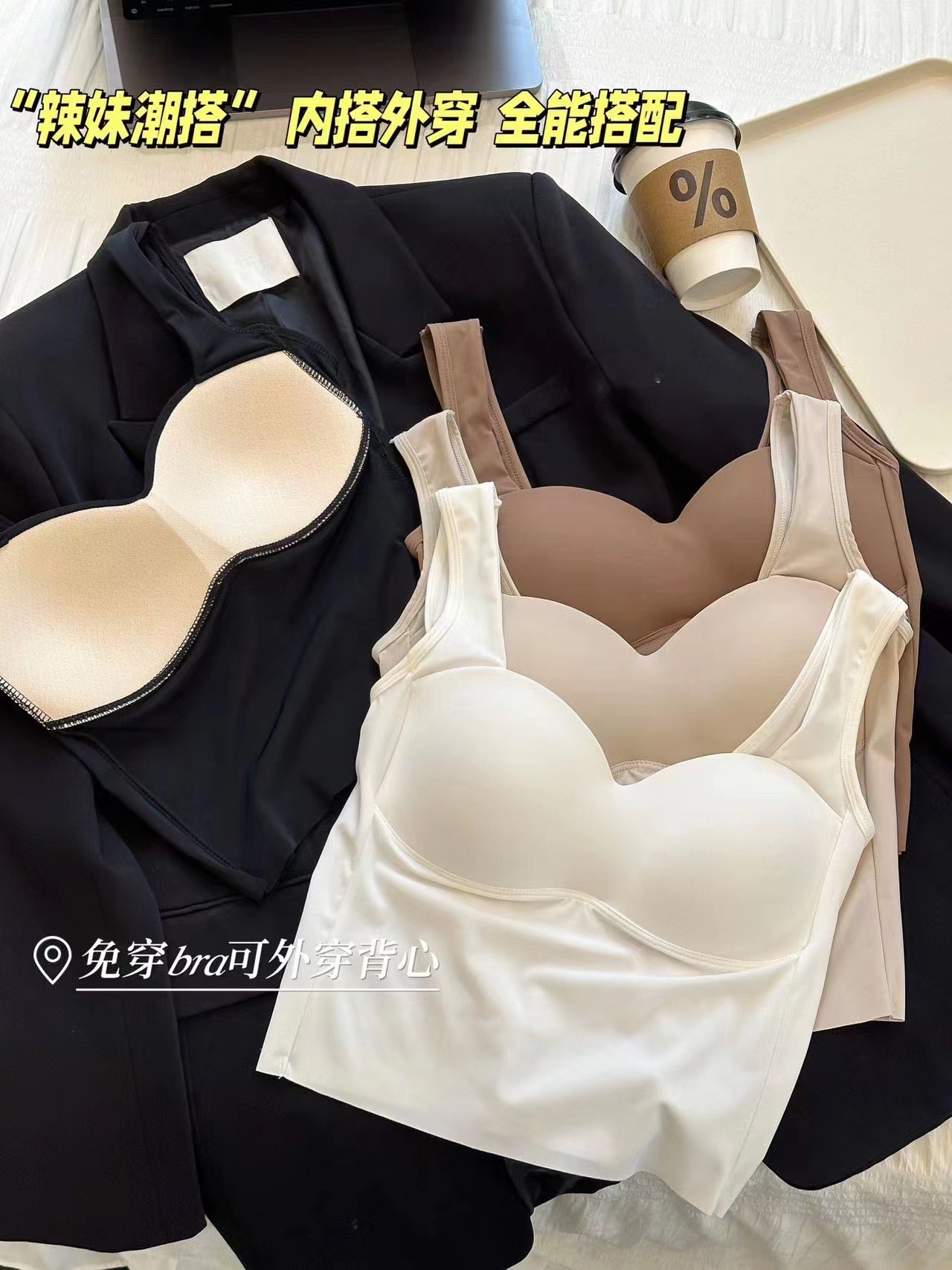 【瑜伽生活家】「29.9包邮,免穿bar!拼团同款」冰丝无痕U型美背固定杯内衣 一体式内搭外穿抹胸中长款打底小背心上衣