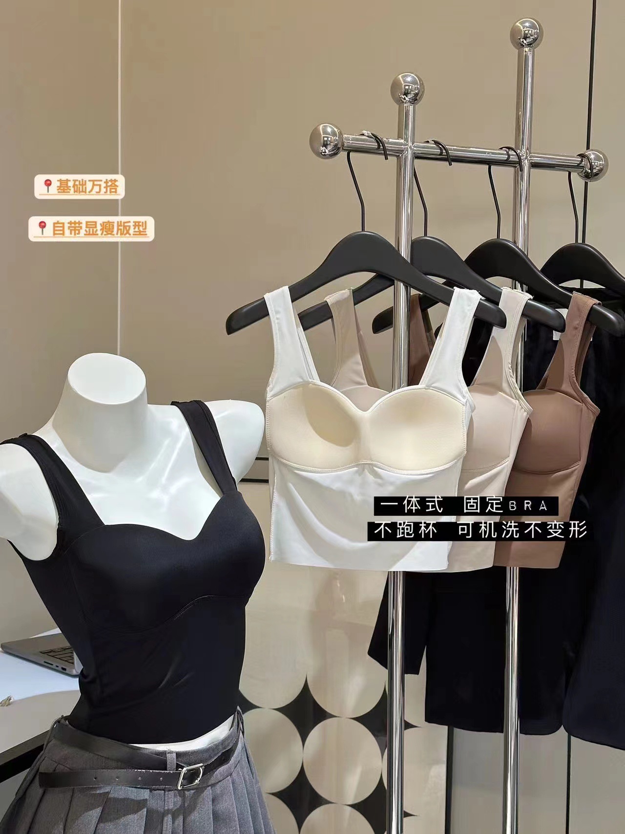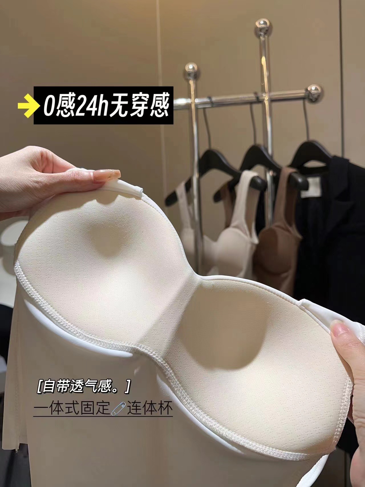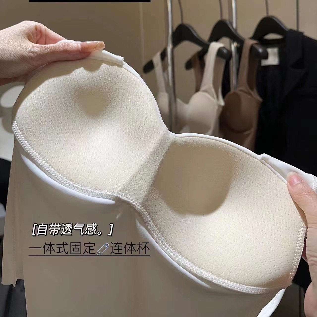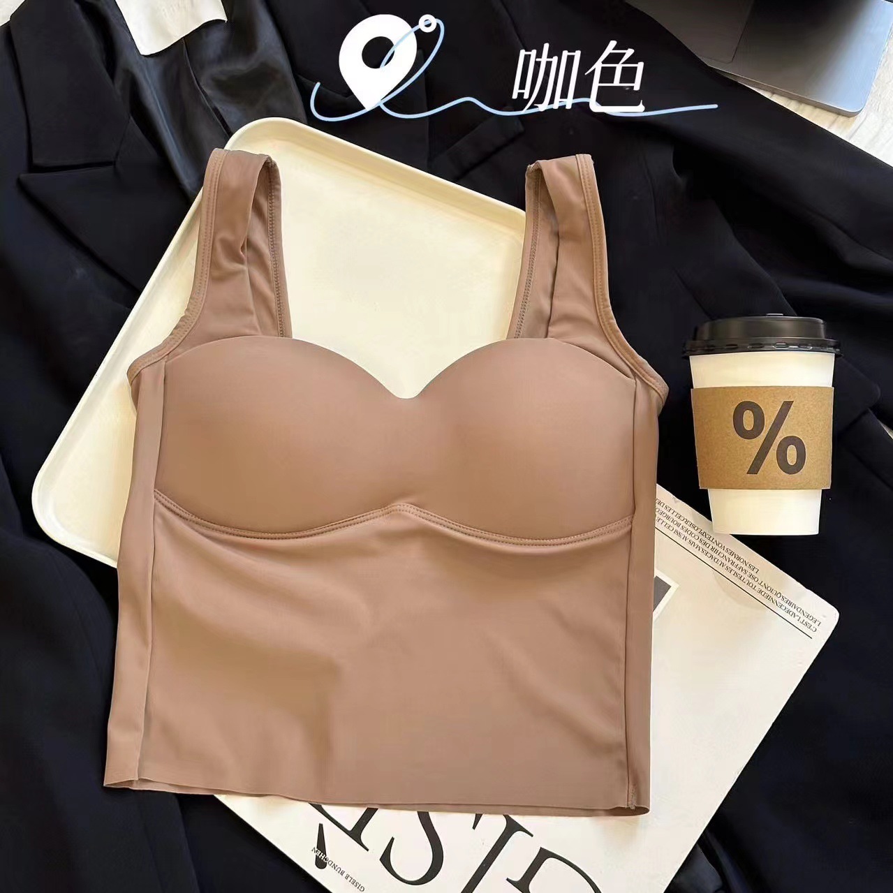 【瑜伽生活家】「29.9包邮,免穿bar!拼团同款」冰丝无痕U型美背固定杯内衣 一体式内搭外穿抹胸中长款打底小背心上衣
