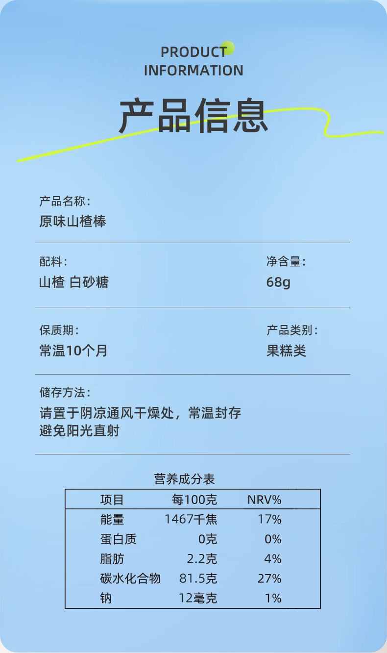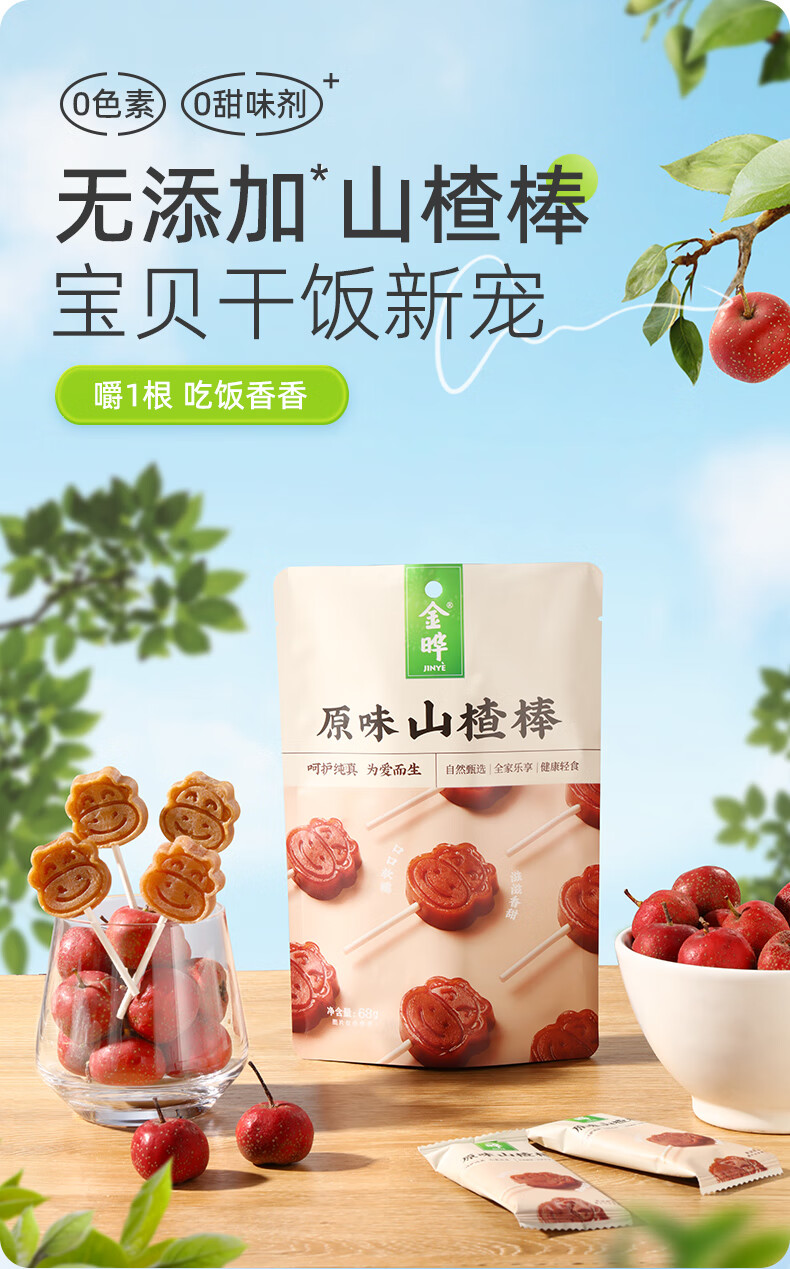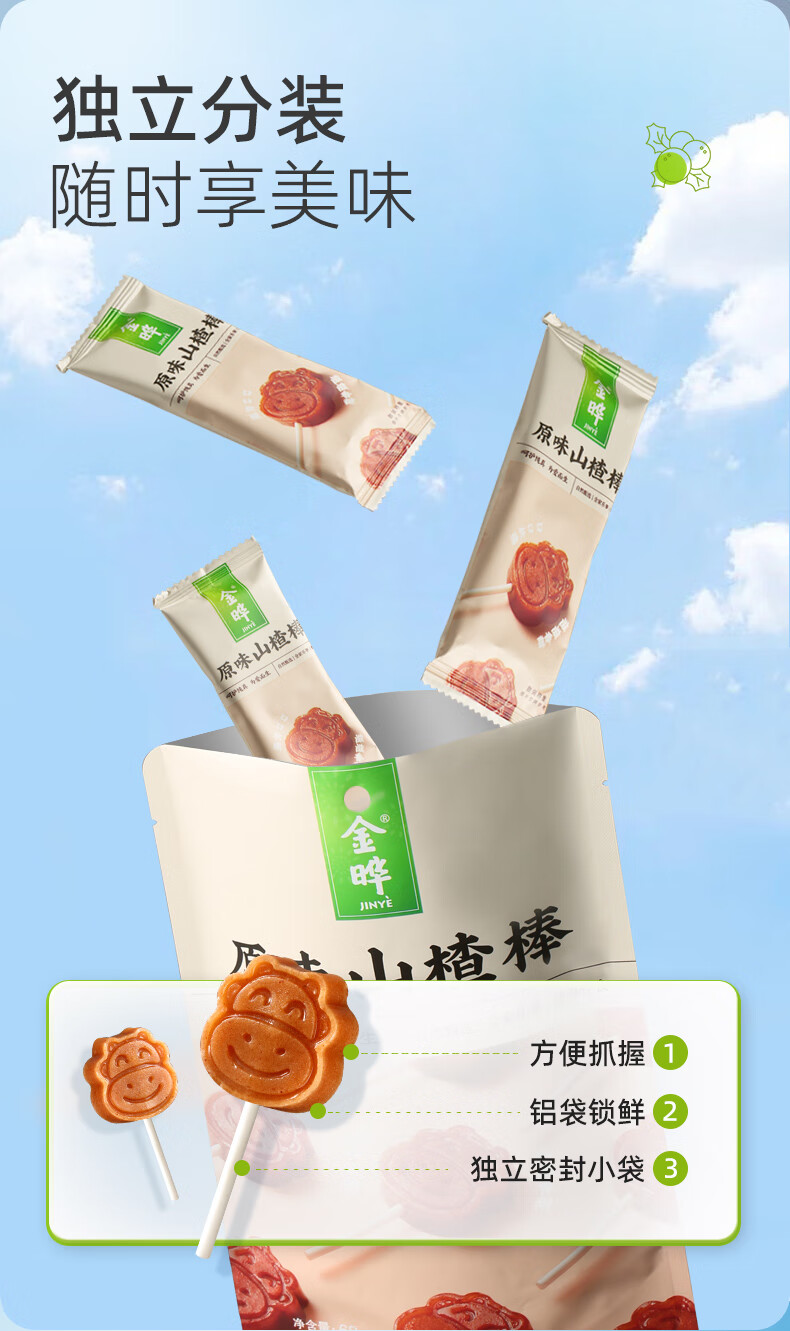 金晔山楂棒小牛原味休闲食品零食蜜饯果脯原味山楂棒棒糖68g