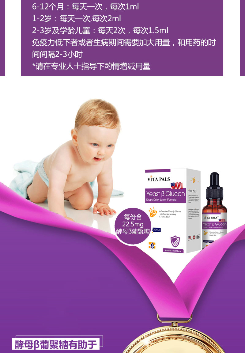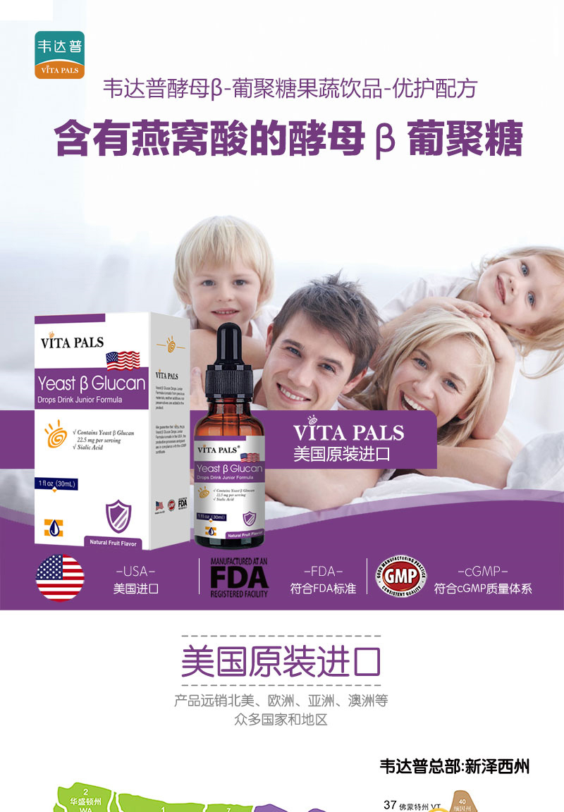 (开封需冷藏)美国进口韦达普酵母葡聚糖果蔬饮品优护调节肠胃儿童