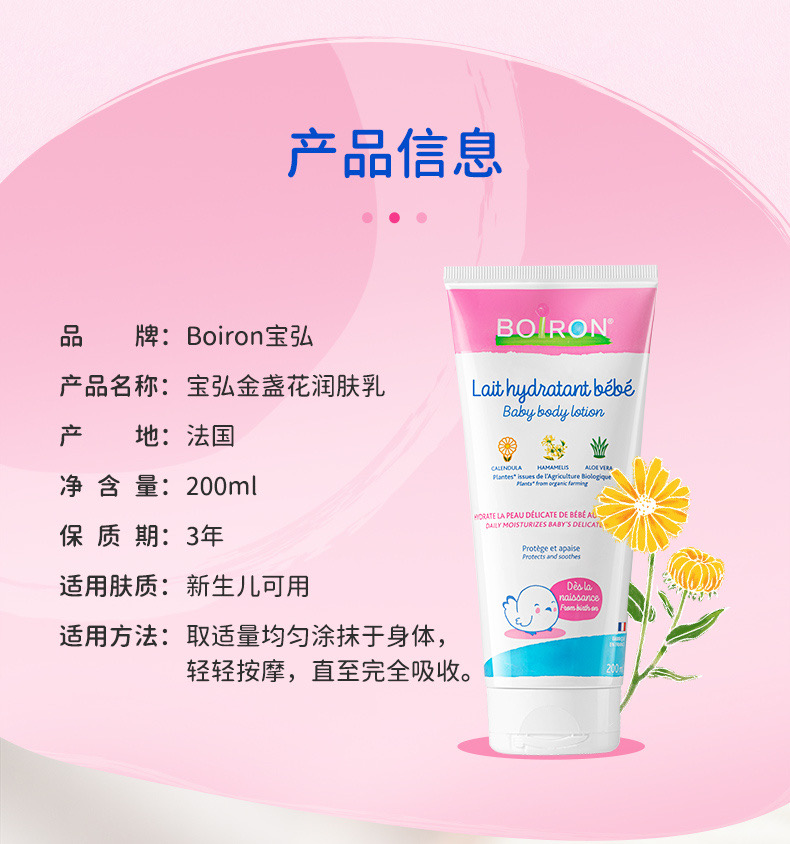 法国进口BOIRON宝弘金盏花润肤乳200ml