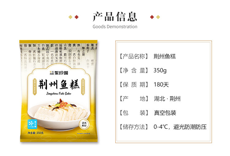 【严选】百年聚珍园鲜嫩可口荆州鱼糕350g/袋*2袋