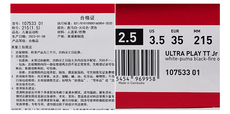 SFS彪马Puma正品ULTRA入门级碎钉TF儿童人草低帮足球鞋107533-01