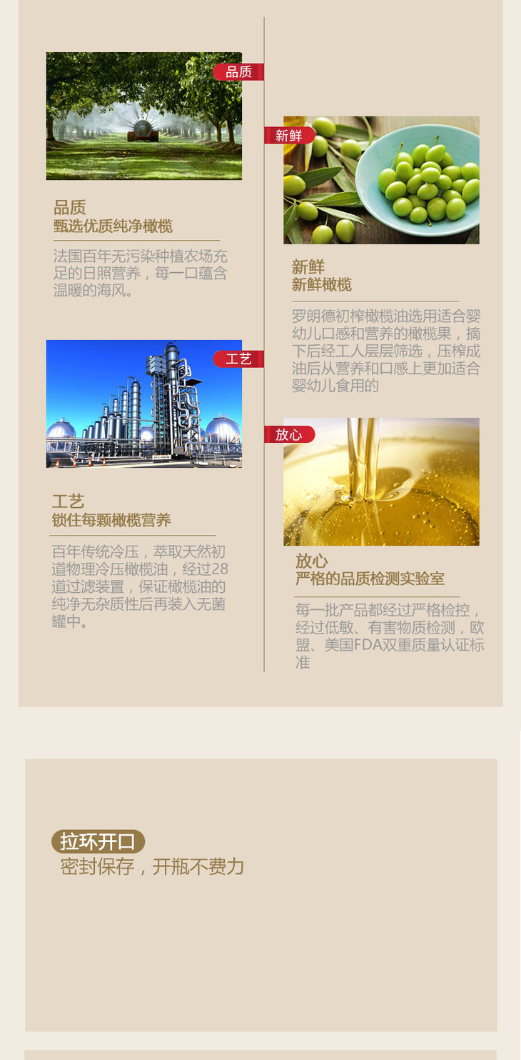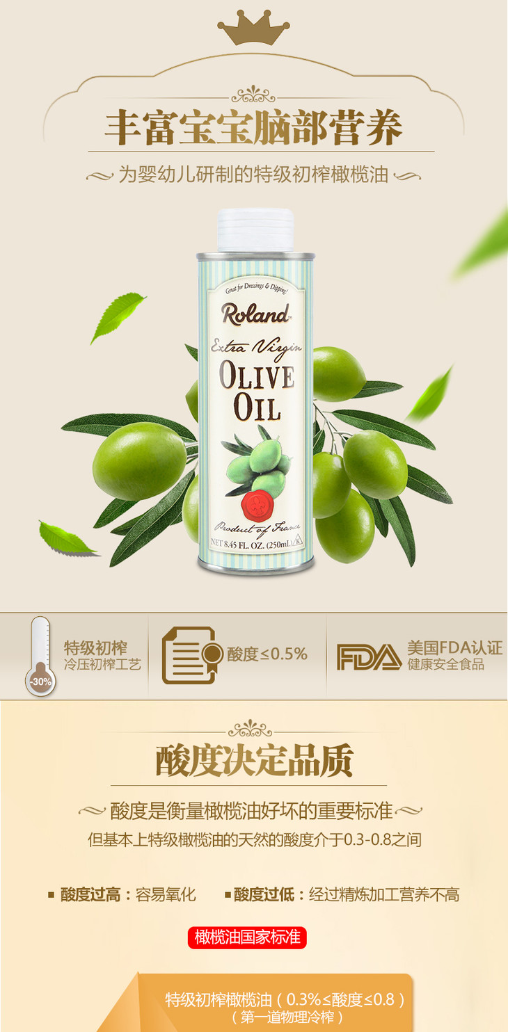 罗朗德roland 初榨橄榄油 宝宝食用油 婴幼儿专用辅食用油 250ml 无添加