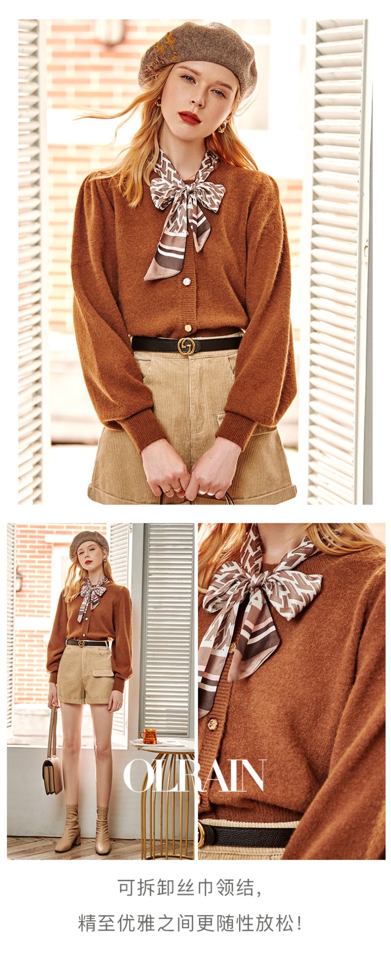 欧芮儿毛衣女宽松外穿冬季季新款开衫慵懒风复古港风外套
