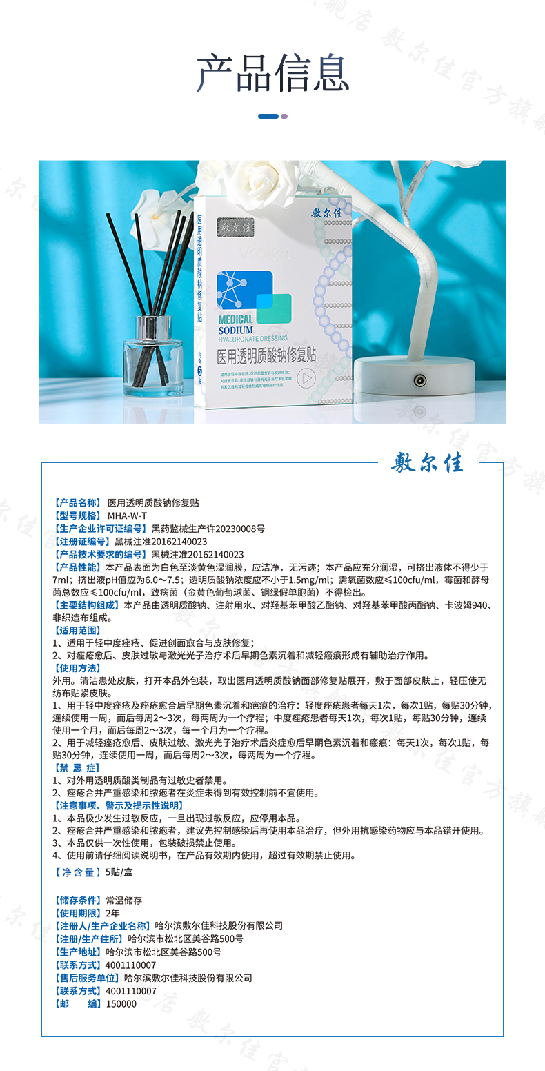敷尔佳医用透明质酸钠修复贴(白膜)