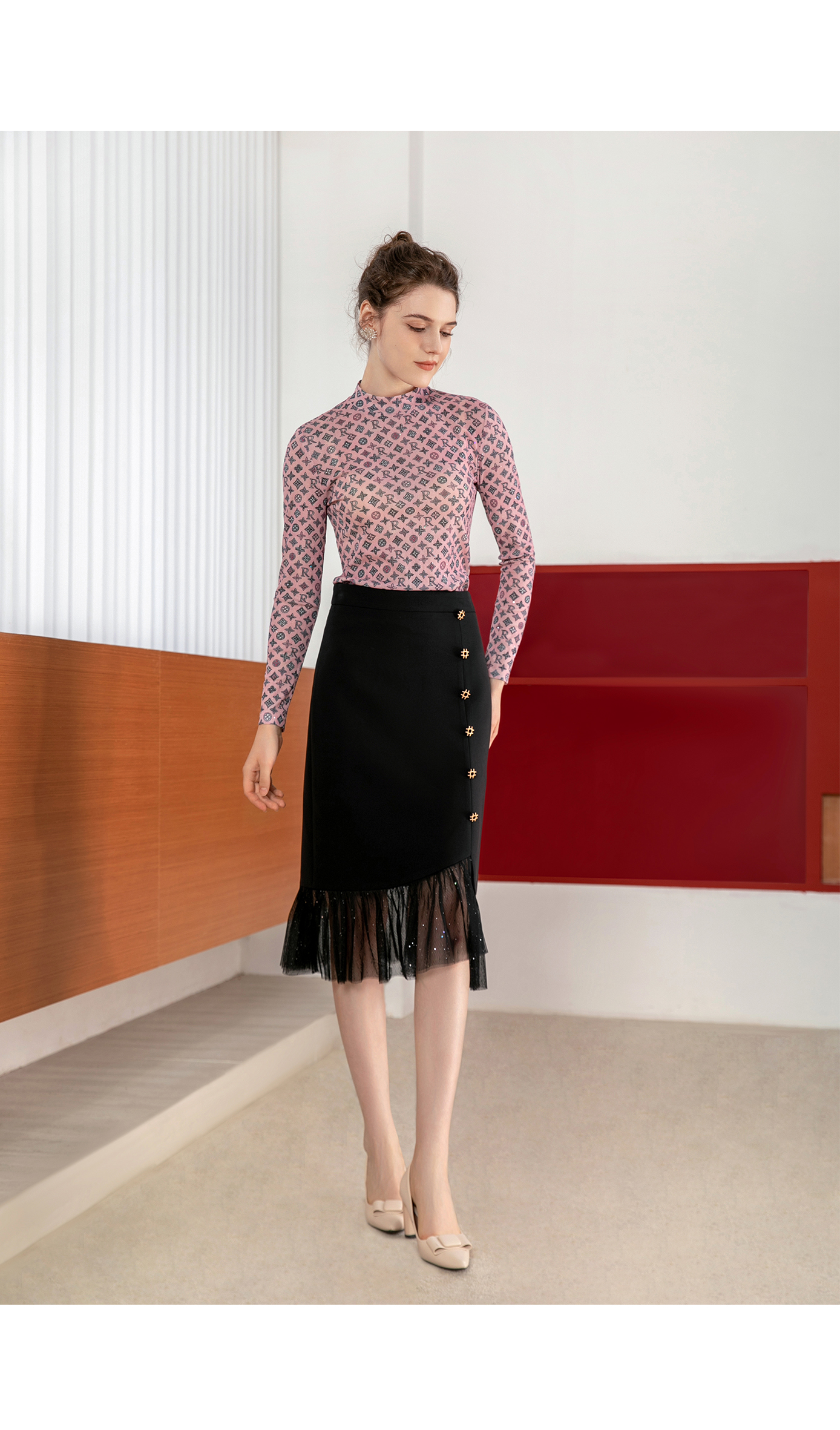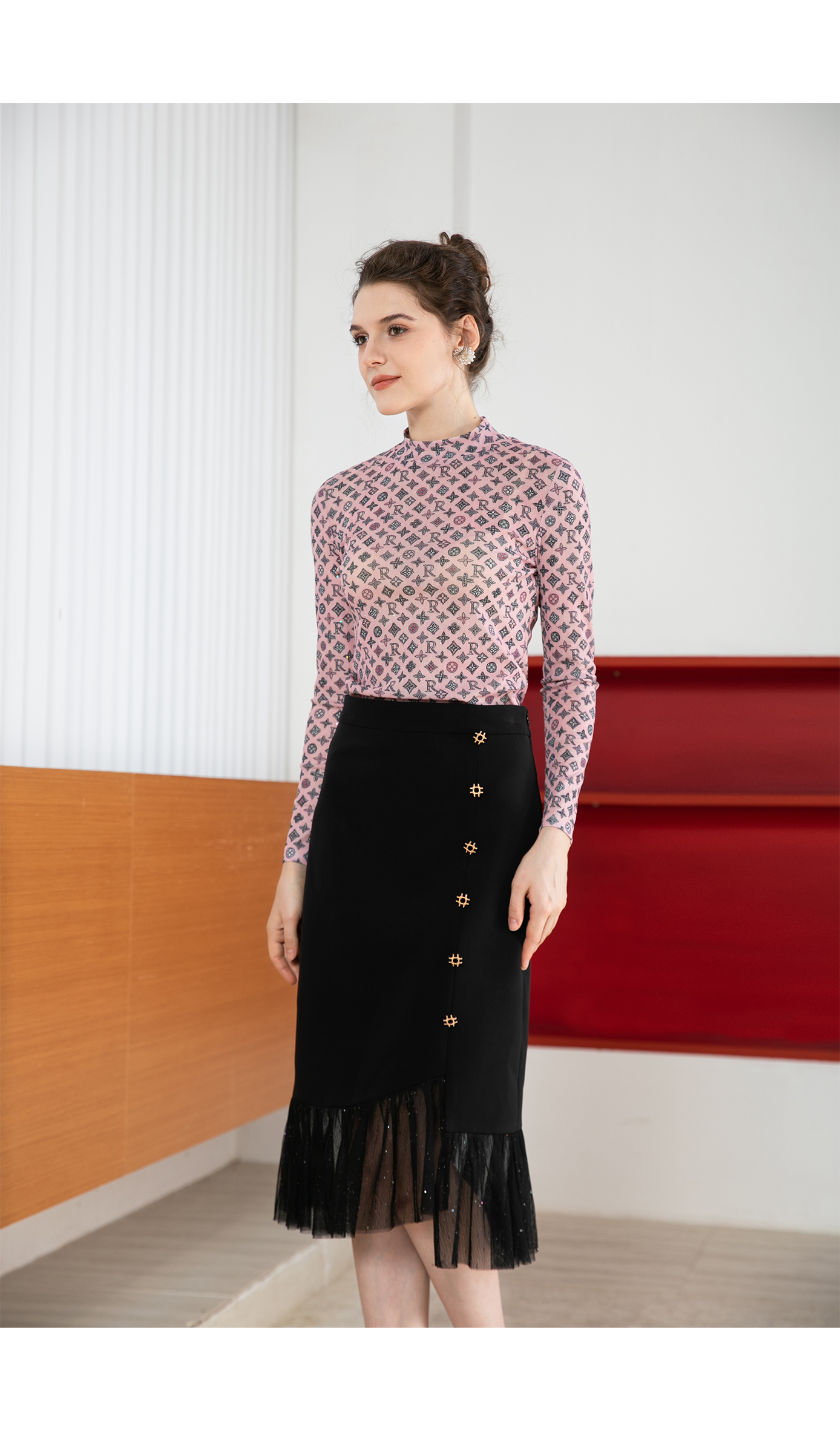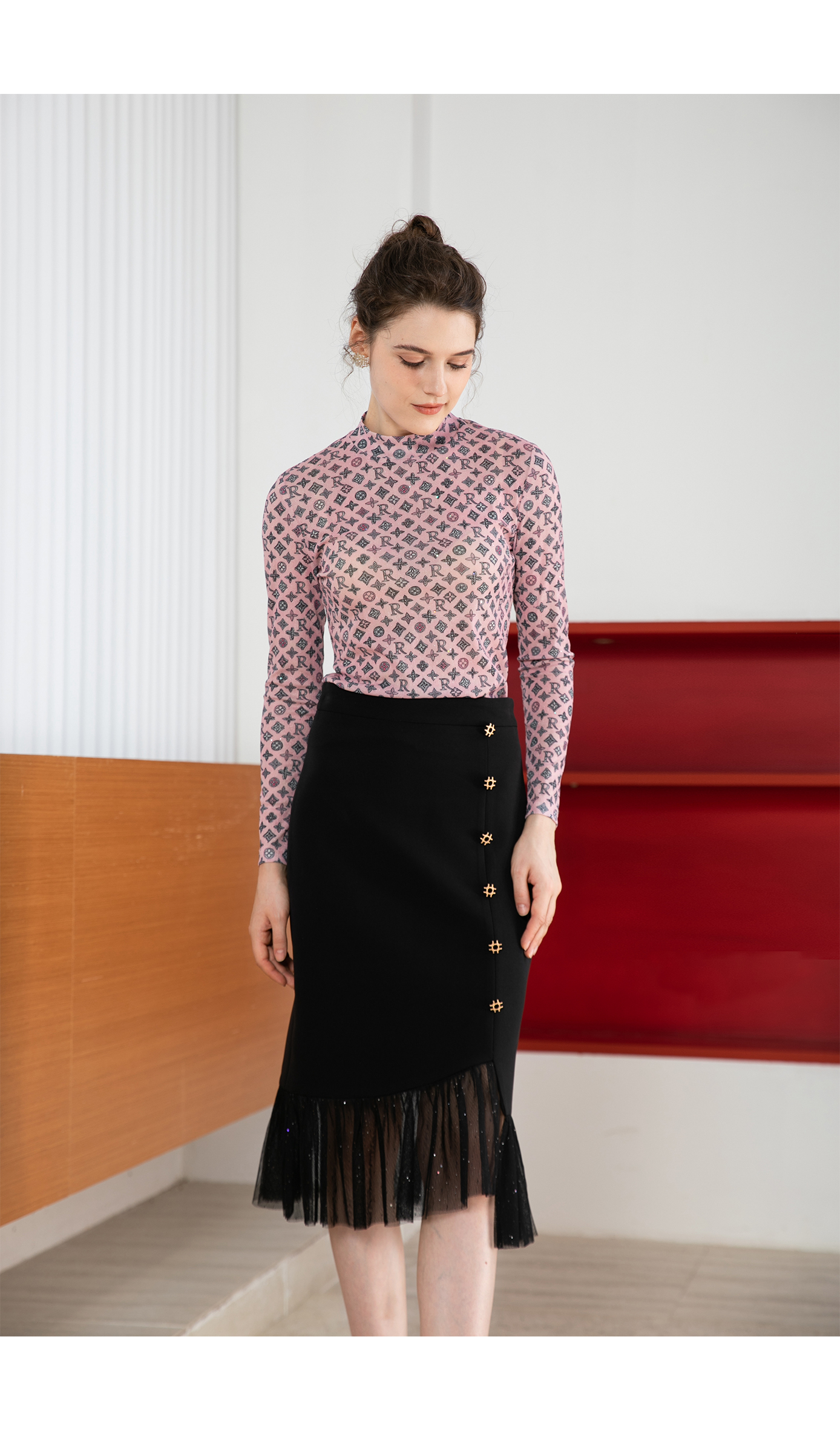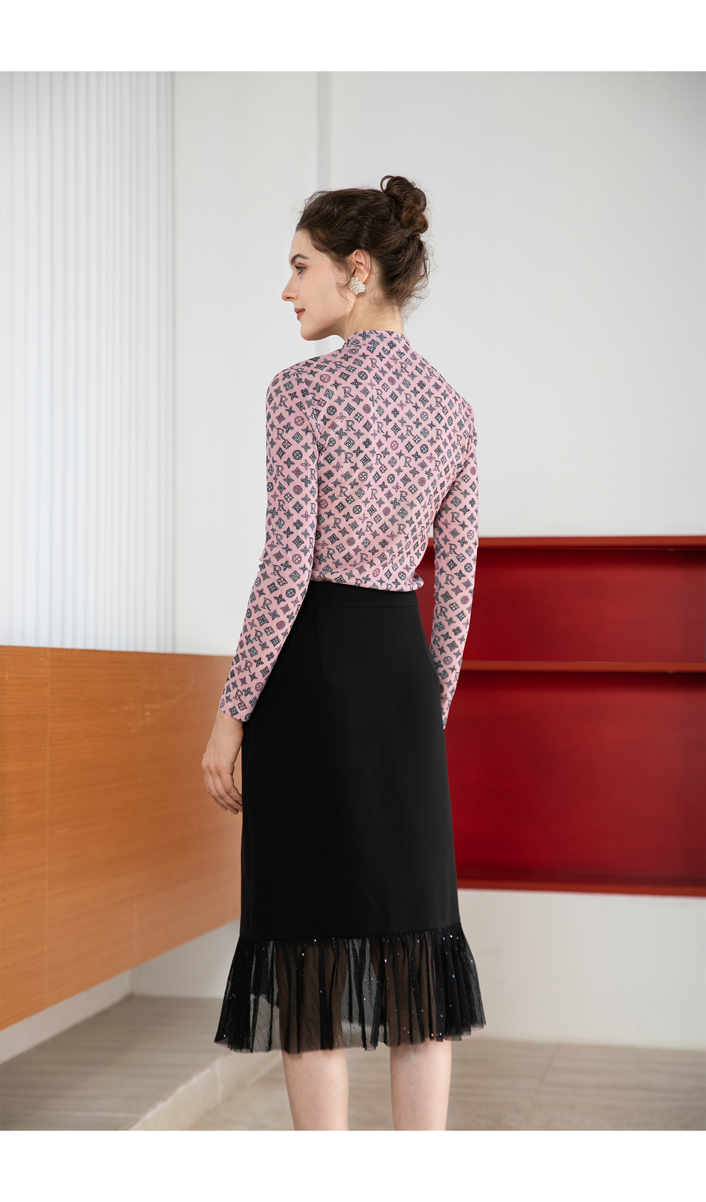 司歌弹力打底高领衫长袖秋冬印花女上衣ET901332X