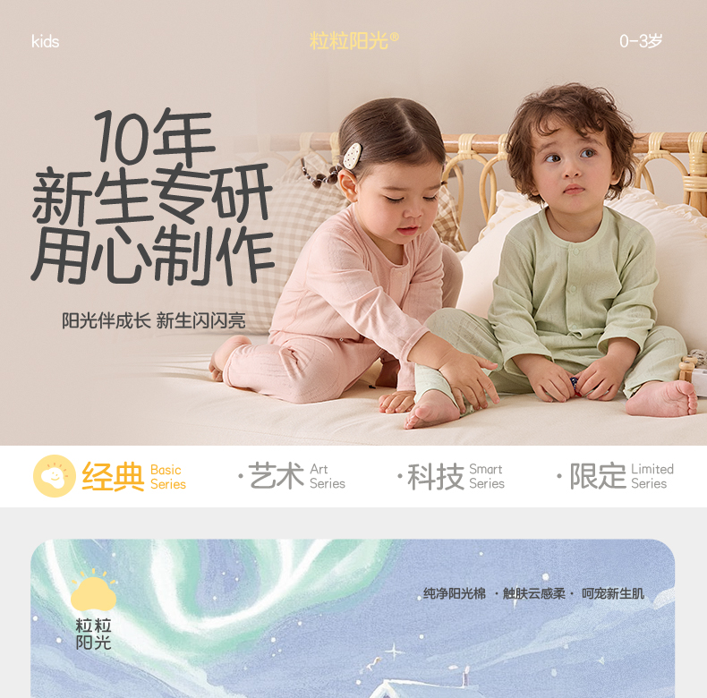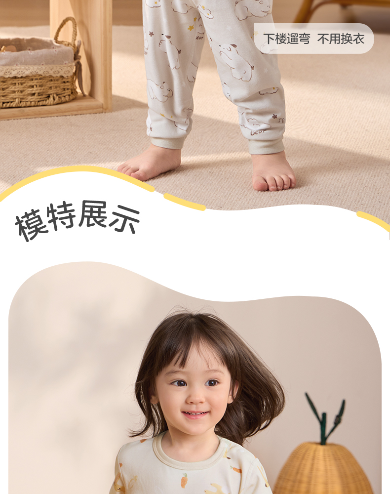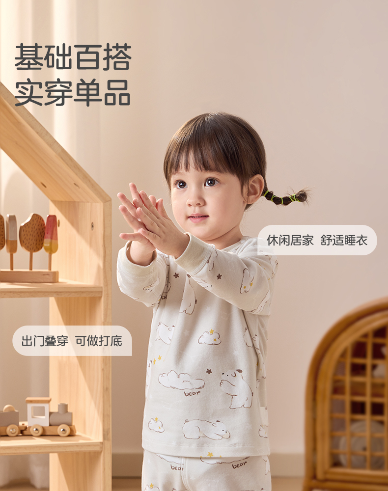 粒粒阳光儿童家居服纯棉儿童睡衣2025新秋季婴儿衣服分体