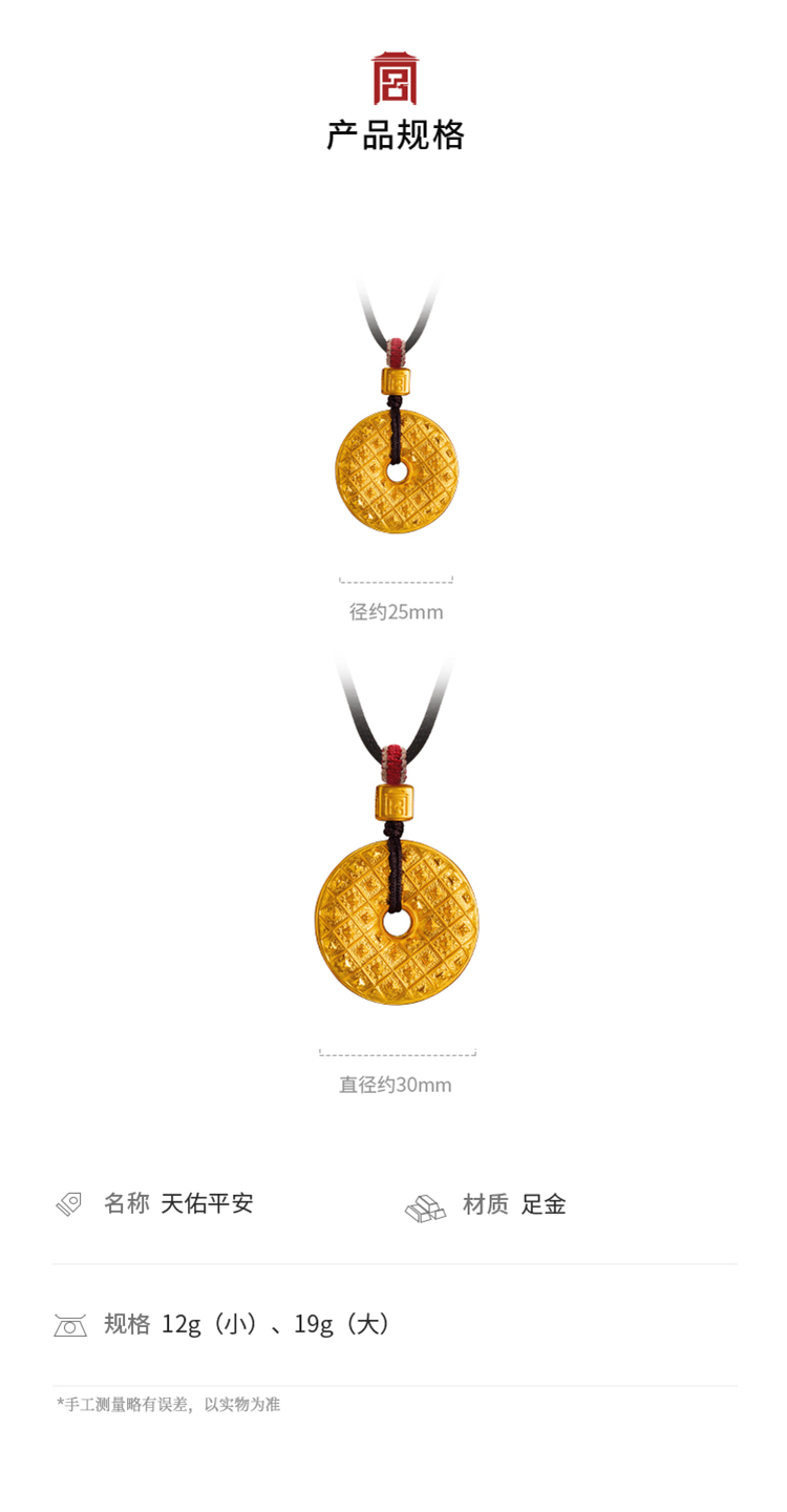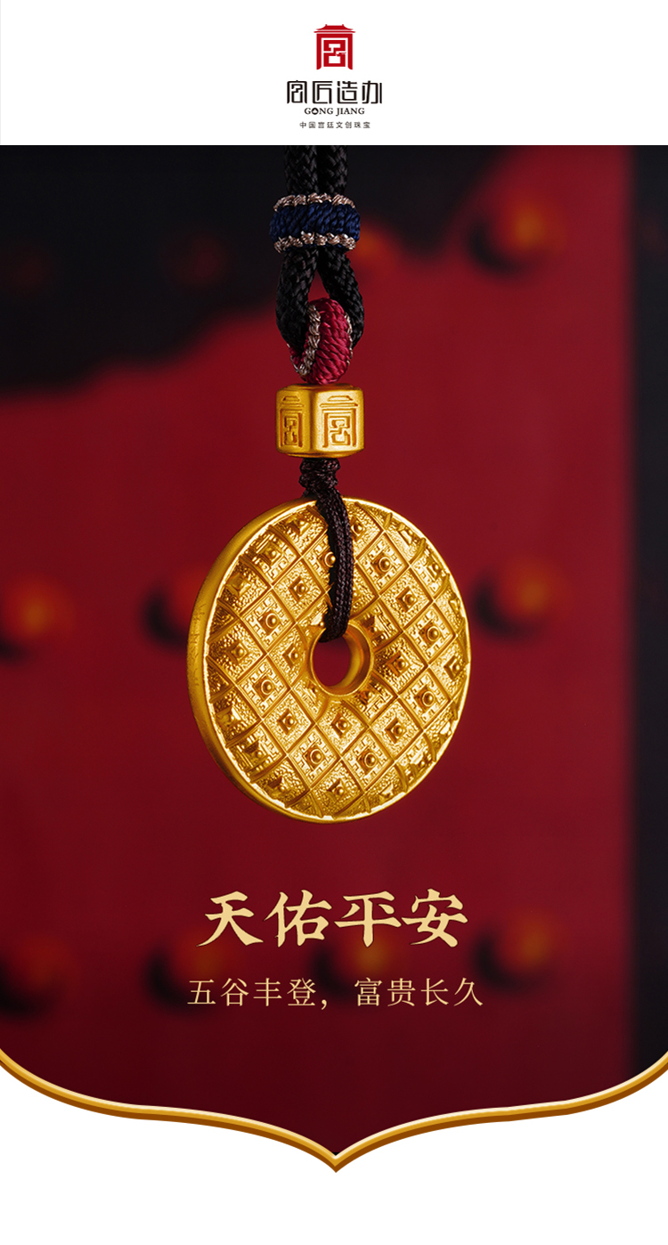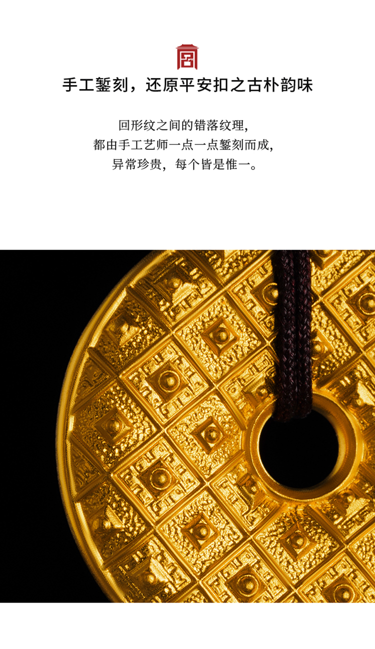 宫匠造办 十朝十美平安扣 商·天佑平安黄金吊坠