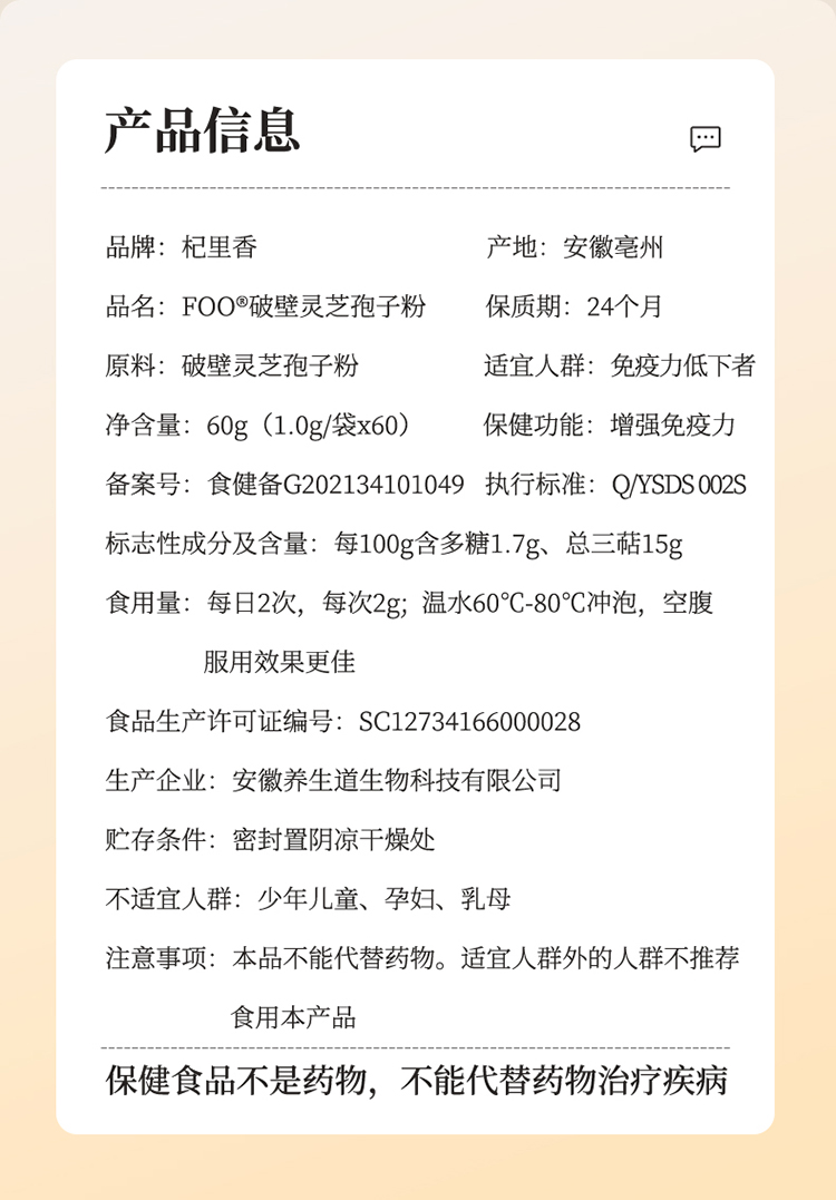 破壁灵芝孢子粉【60g (1.0g/袋x60)】