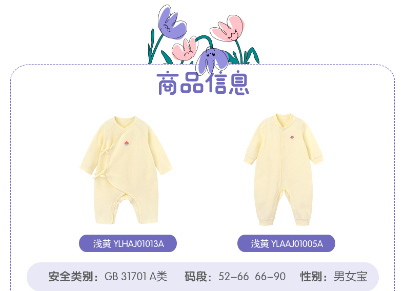 英氏婴儿连体衣宝宝纯棉哈衣爬服吸吸棉速干YLHAJ01013A YLAAJ01005A01