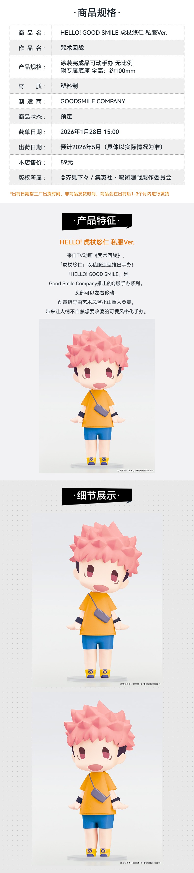 【GSC预售定金】HELLO! GOOD SMILE 虎杖悠仁 私服Ver. 咒术回战