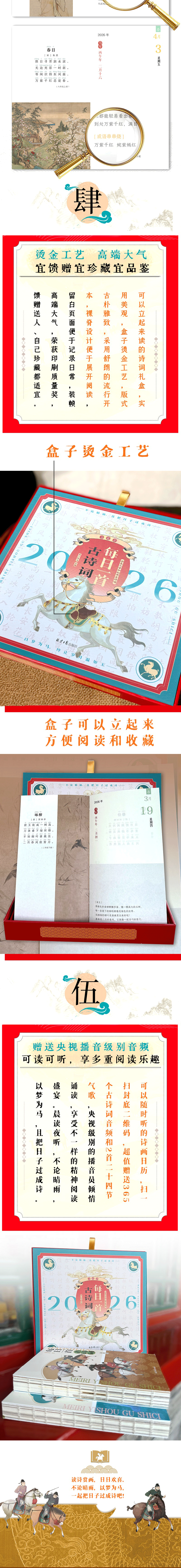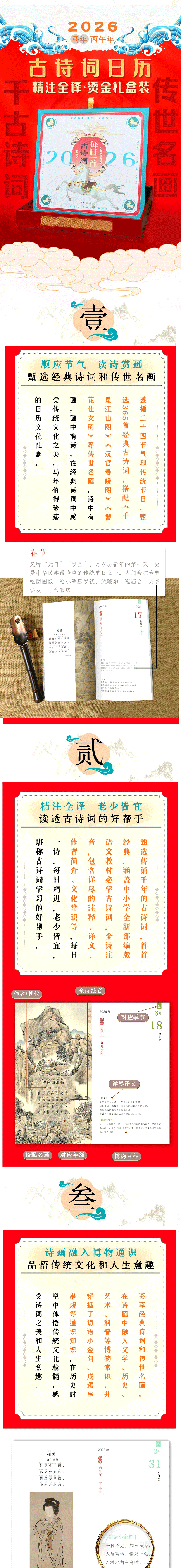 2026日历每日一首古诗词全2册365首中小学必学全拼音注释译文