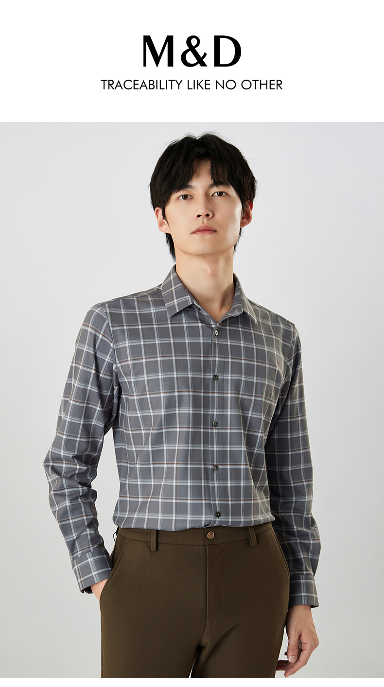 MD名盾短袖衬衫天然植物草珊瑚抗皱条纹职业夏薄款商务男士衬衣