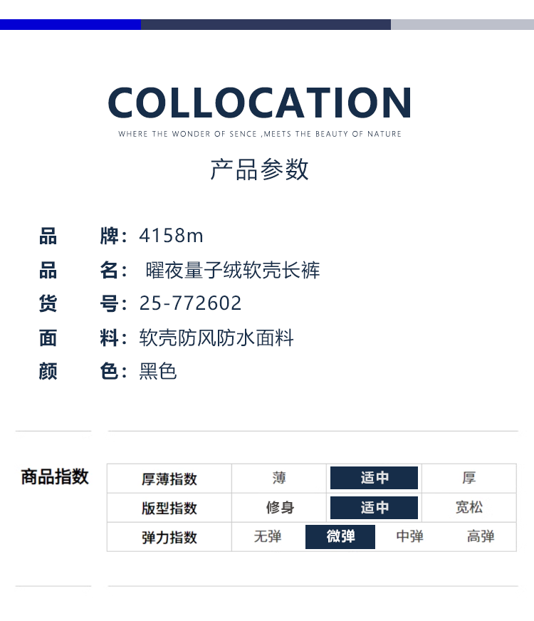 4158m 政企精英 专属定制 曜夜量子绒软壳长裤防水软壳秋冬加绒裤