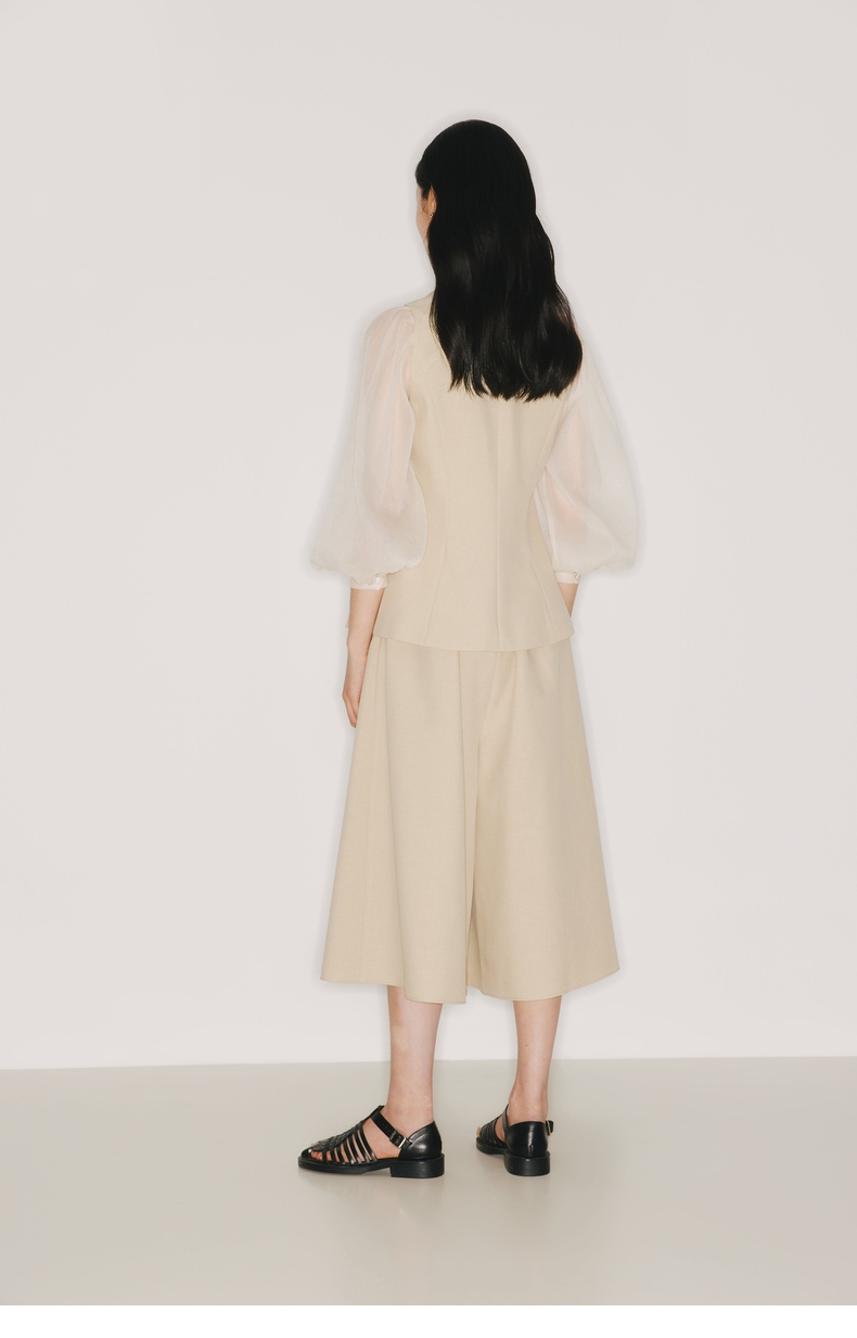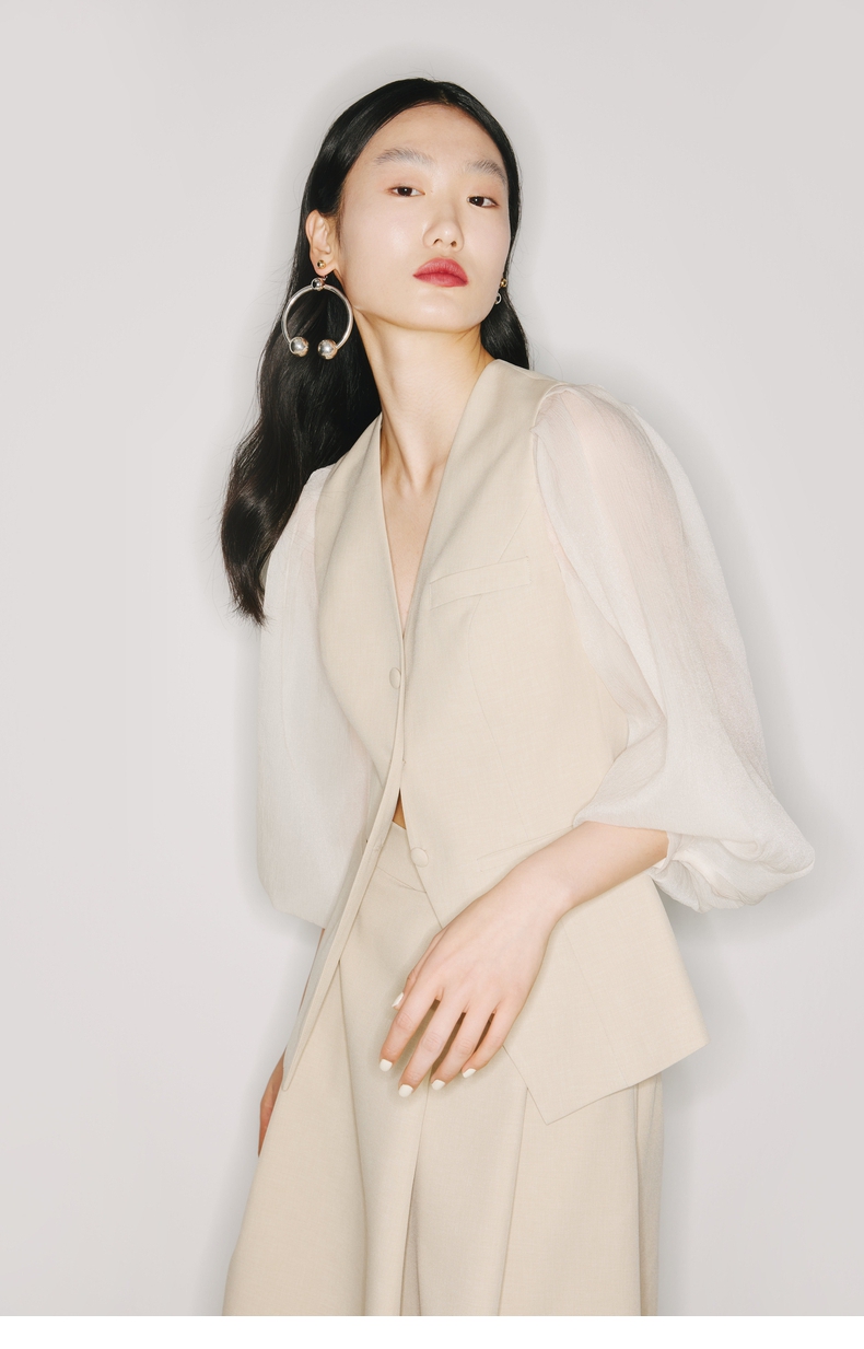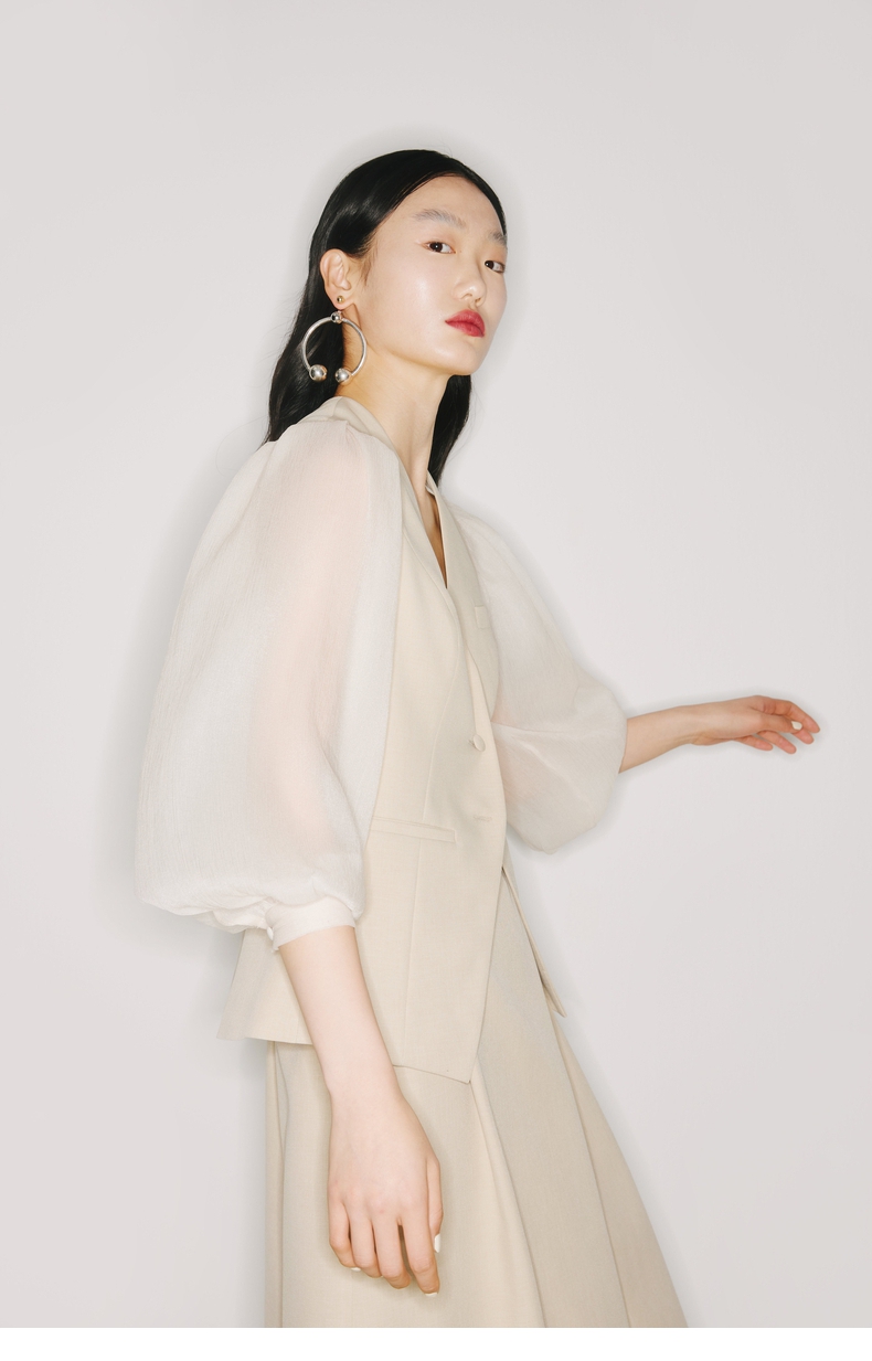 【骑士公主】象牙白透纱廓形长袖燕麦浅驼收腰马甲/220016A