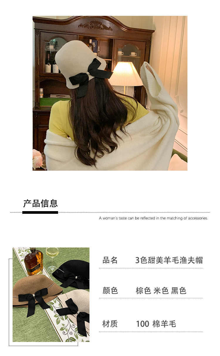 余潇潇 法式优雅风蝴蝶结渔夫帽