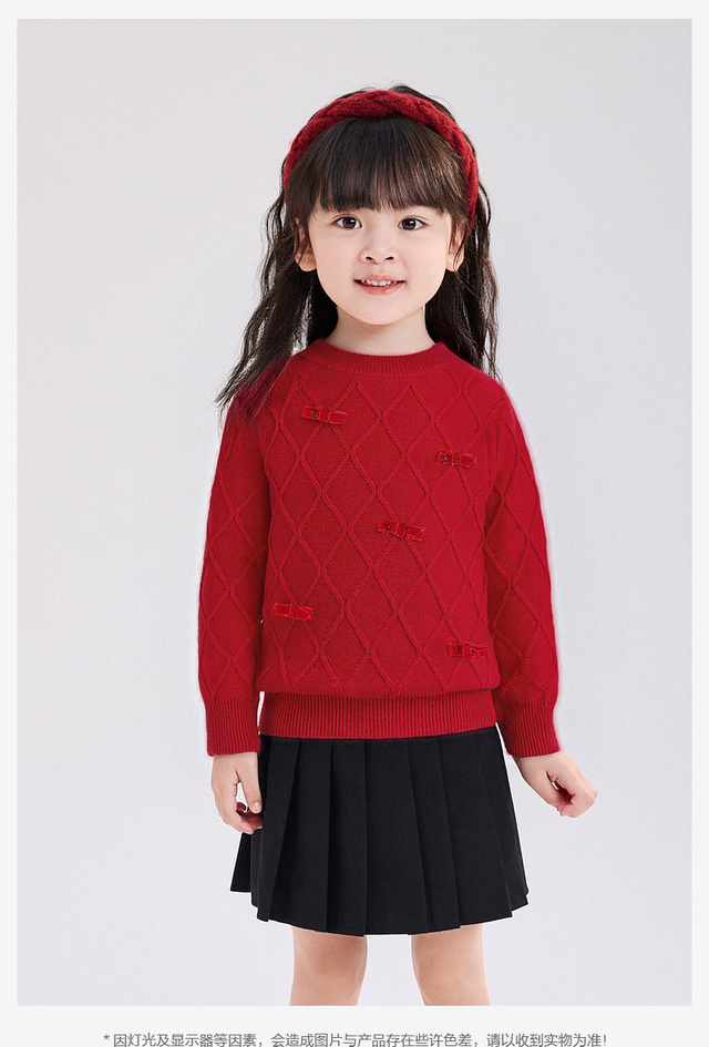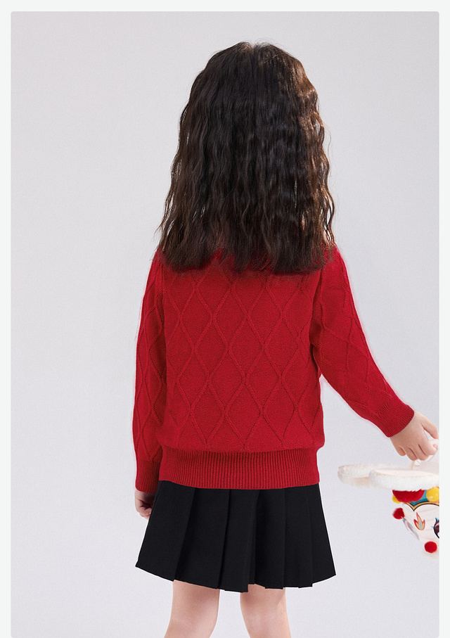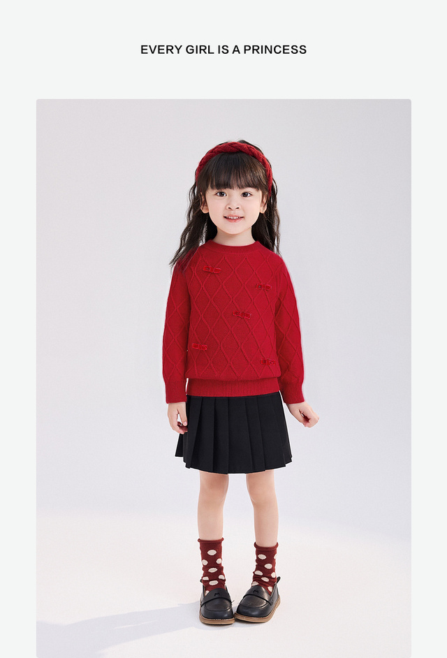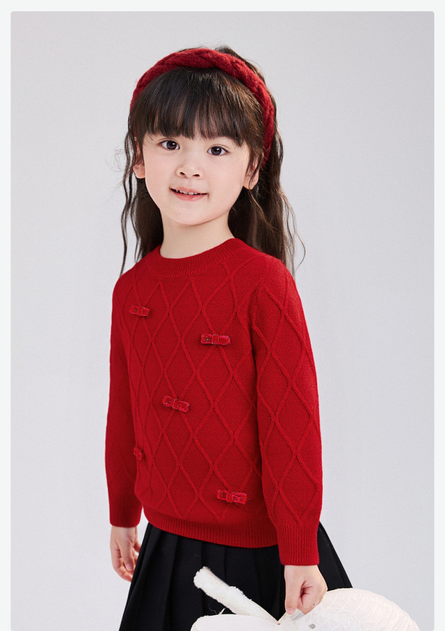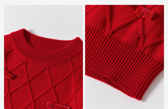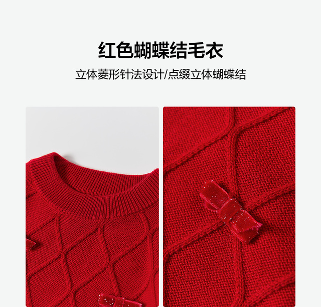 笛莎Deesha 童装女童毛衣2025冬新款红色蝴蝶结毛衣