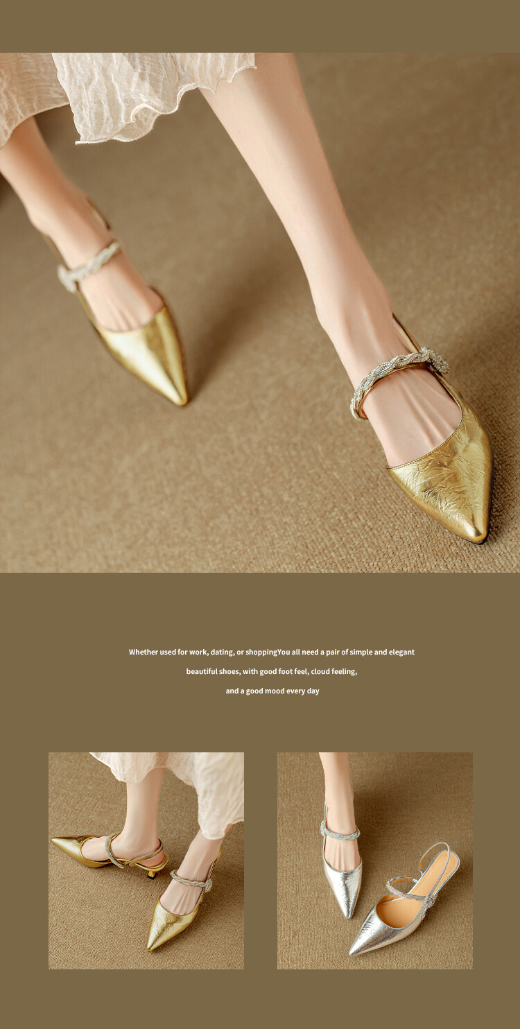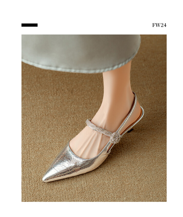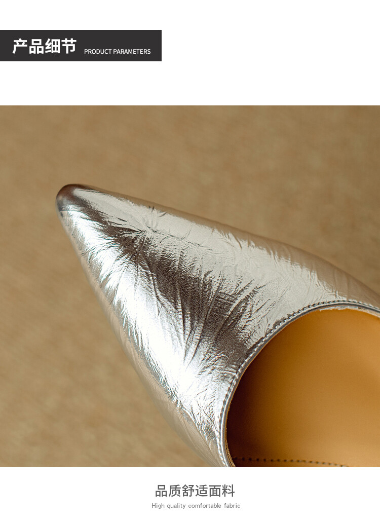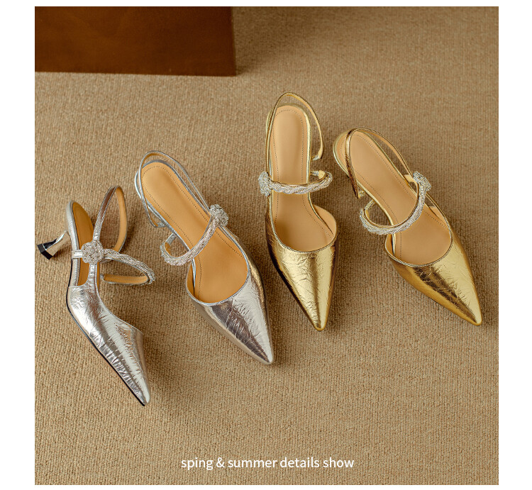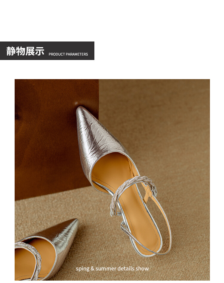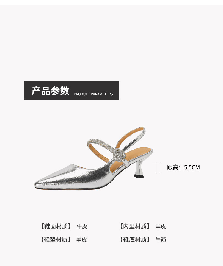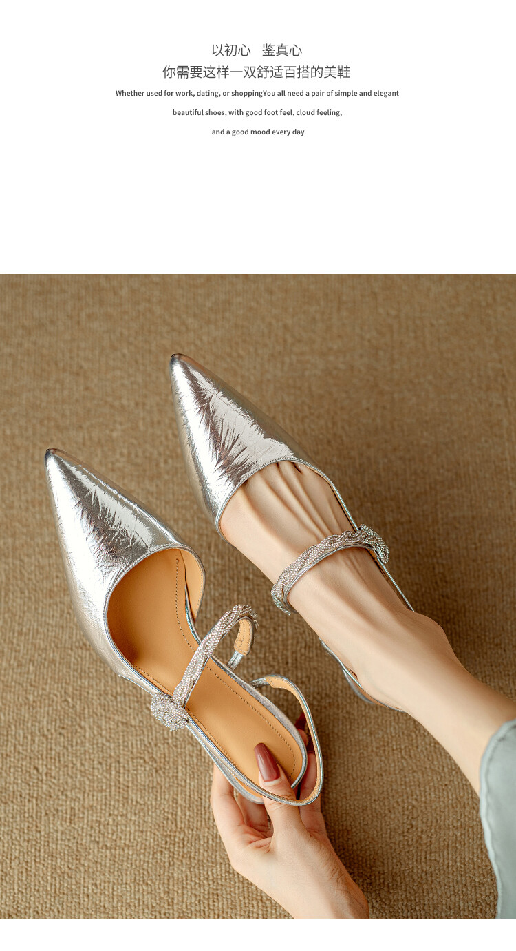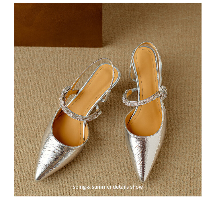 【预售5天】2024年新款夏季法式玛丽珍鞋小跟银色一字带尖头包头凉鞋DB&M5957