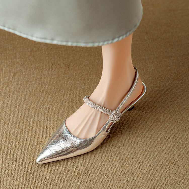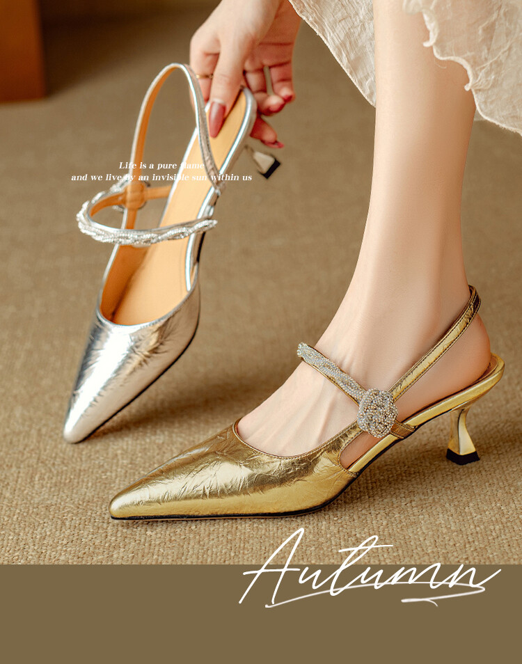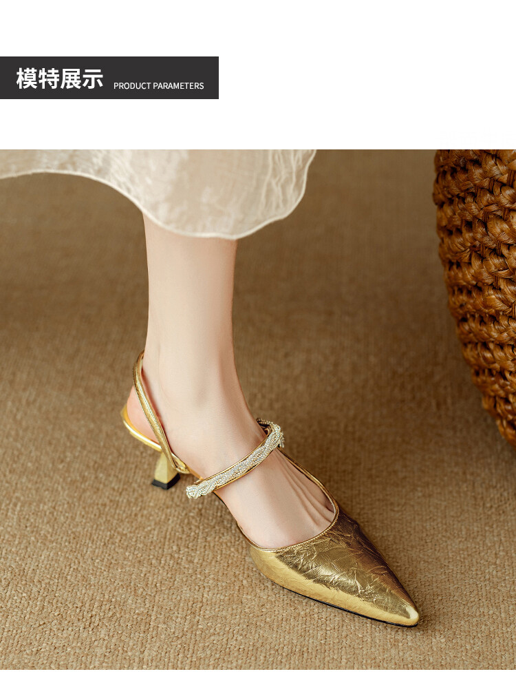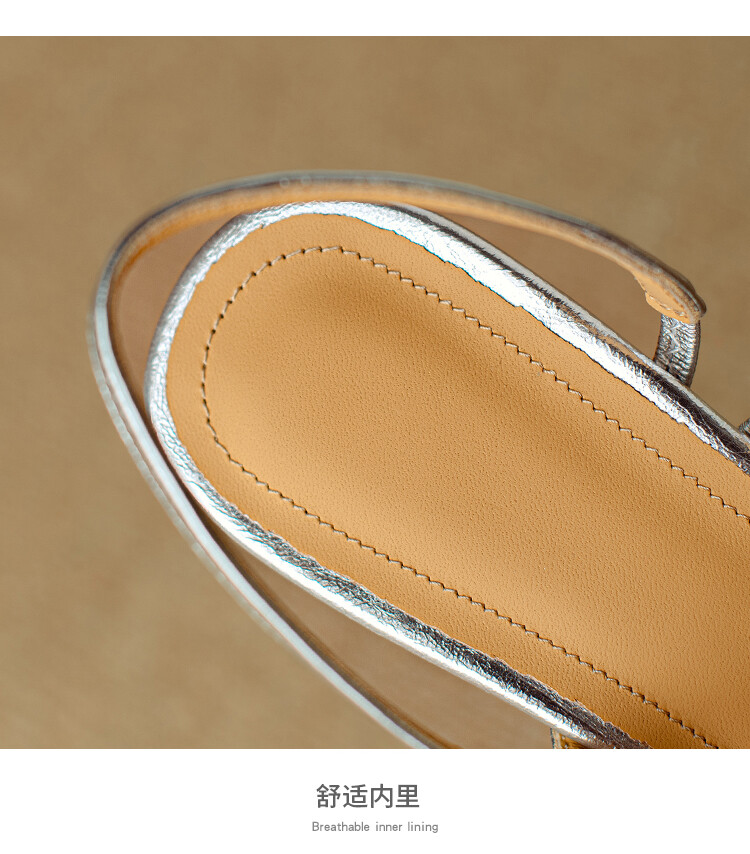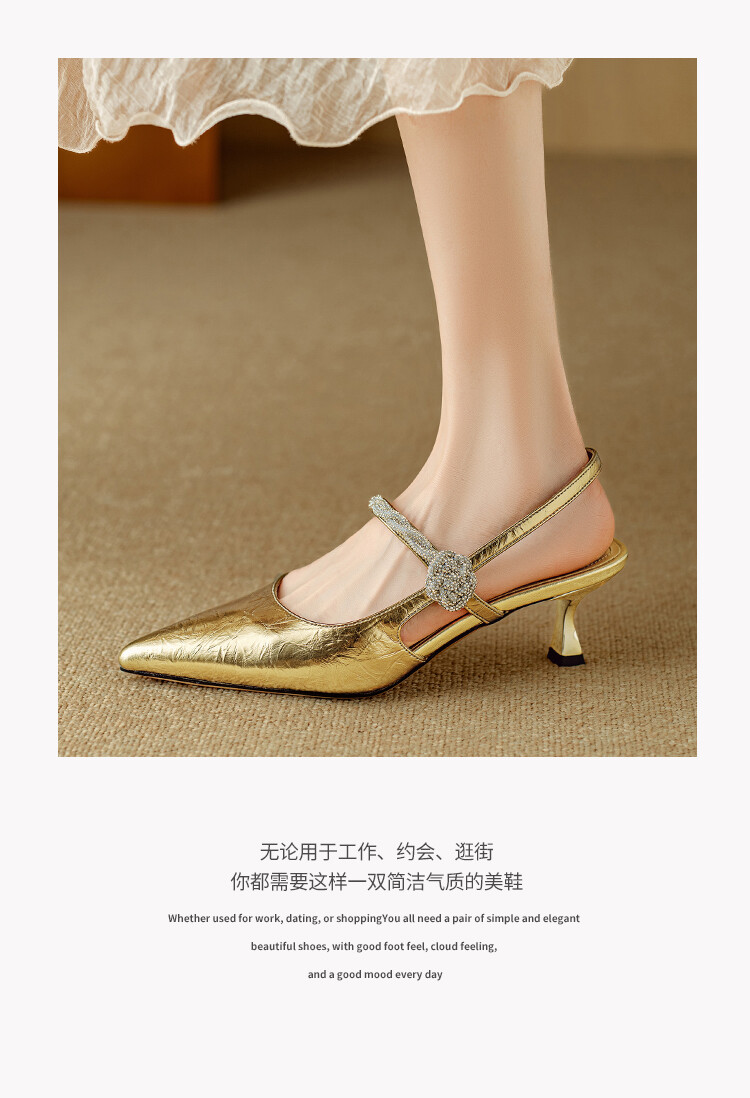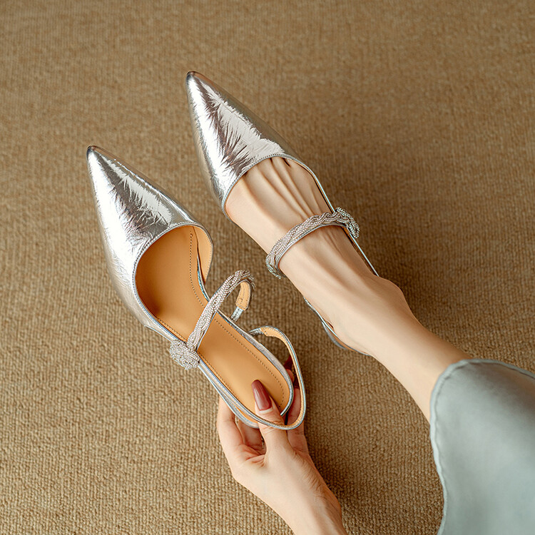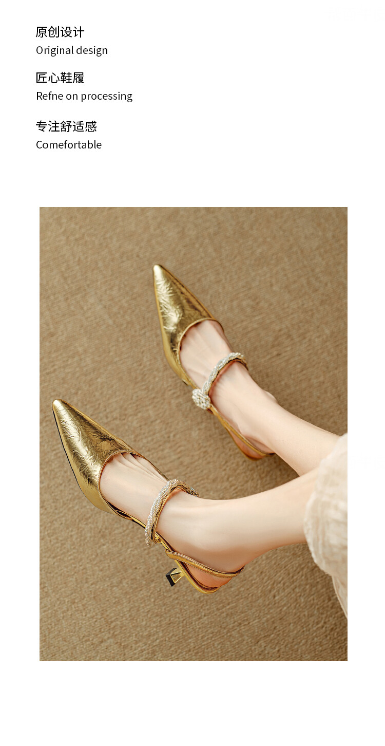 【预售5天】2024年新款夏季法式玛丽珍鞋小跟银色一字带尖头包头凉鞋DB&M5957