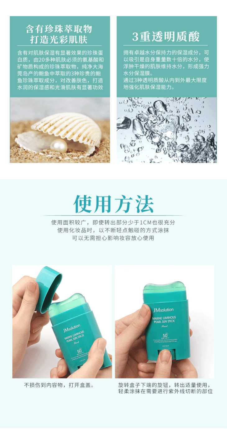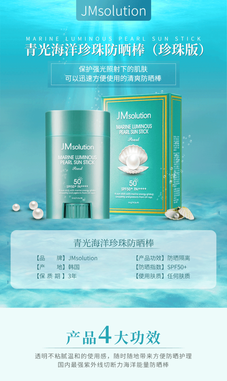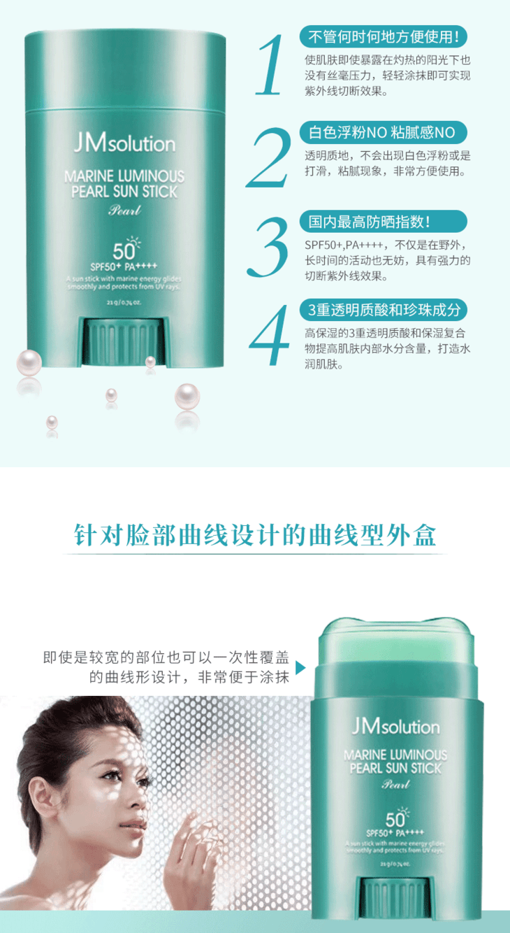 【官方品牌授权】韩国JM solution海洋珍珠玫瑰防晒棒spf50+清爽防水全身可用涂抹方便