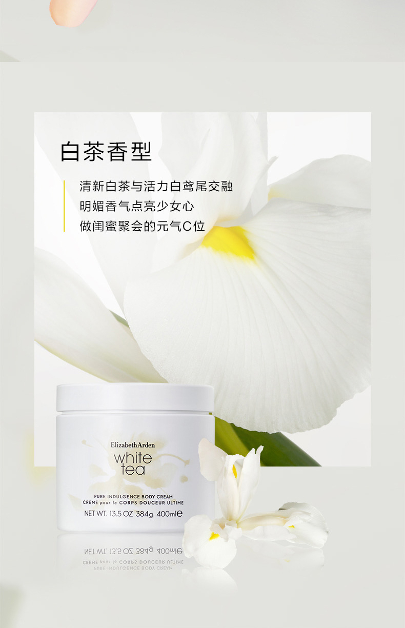 伊丽莎白雅顿身体霜384g 白茶香/野玫瑰香 天然植萃水润滋养丝香滑体 117606/117653