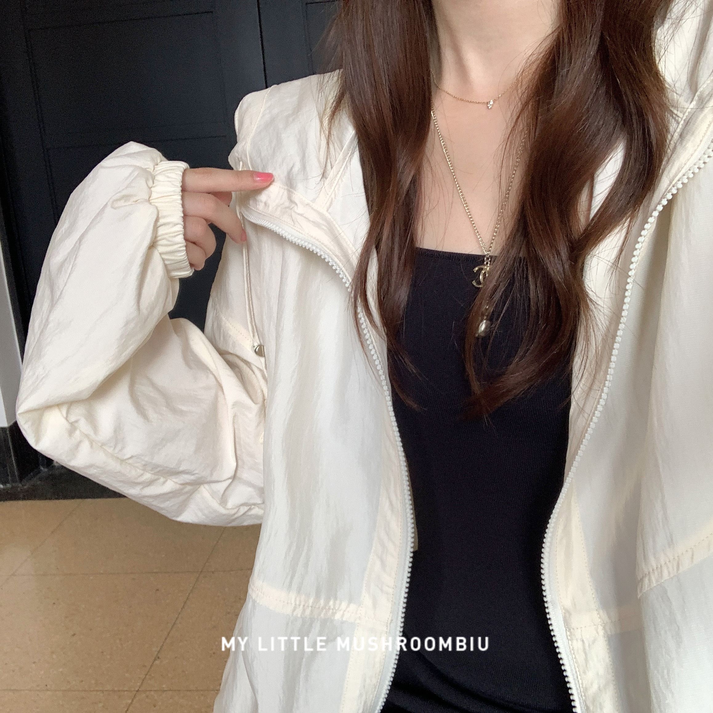 金蘑菇菇 休闲宽松冲锋衣女外套 黑色吊带连衣裙内搭2023新款