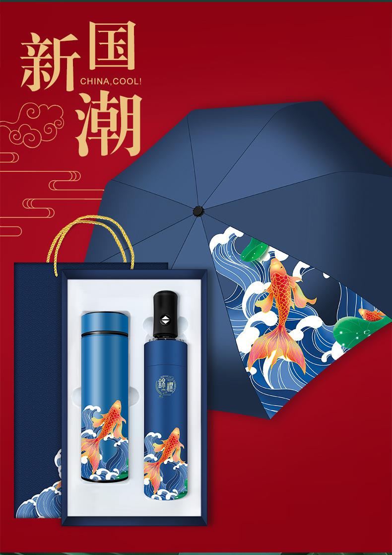 商务礼品国潮锦鲤保温杯雨伞套装公司周年庆送客户员工年会伴手礼