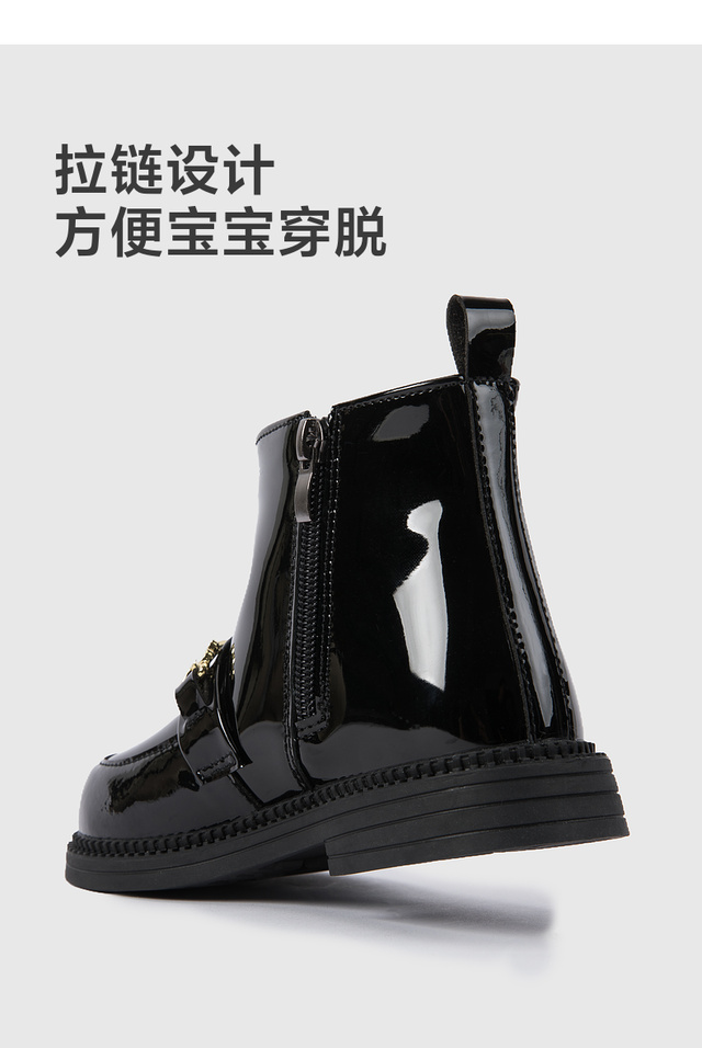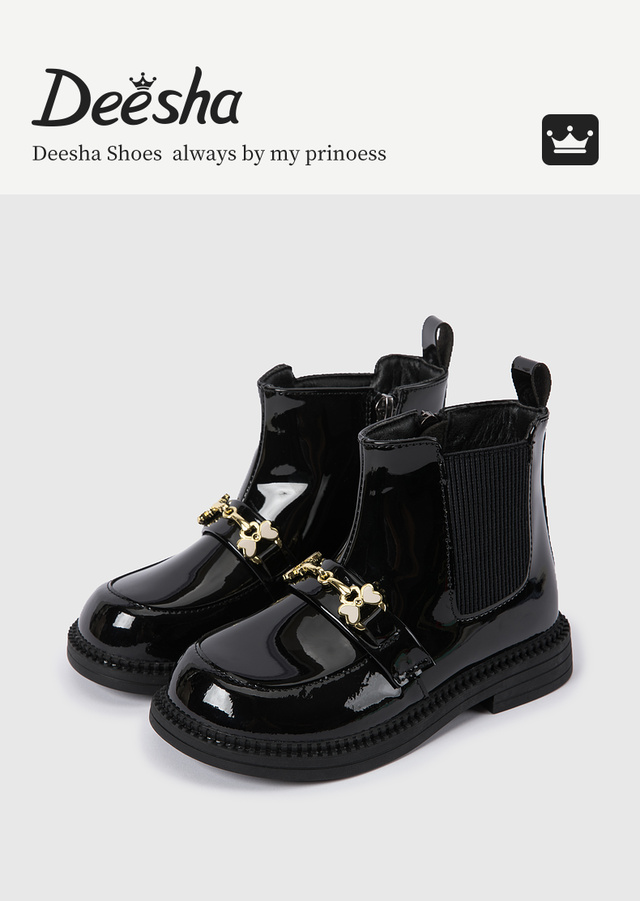 笛莎Deesha 女童童鞋2025冬季新款短筒皮靴