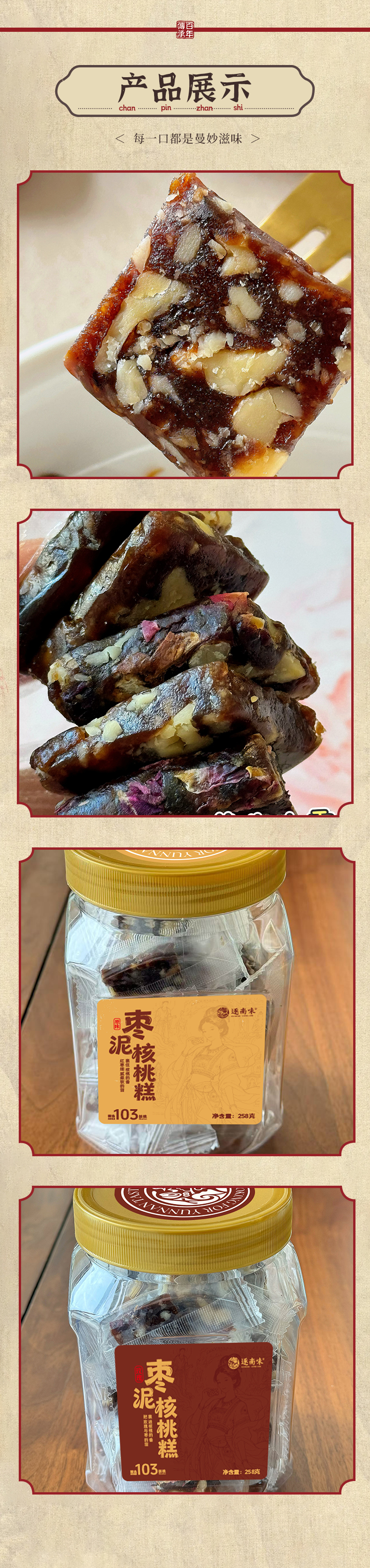 【品名/规格】【逐南味】枣泥核桃糕(258g/瓶,原味枣泥核桃糕/玫瑰枣泥核桃糕)