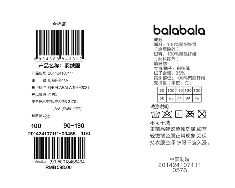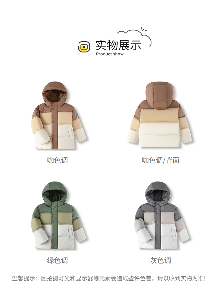 巴拉巴拉童装儿童羽绒服男童冬装撞色连帽外套上衣舒适户外时尚潮