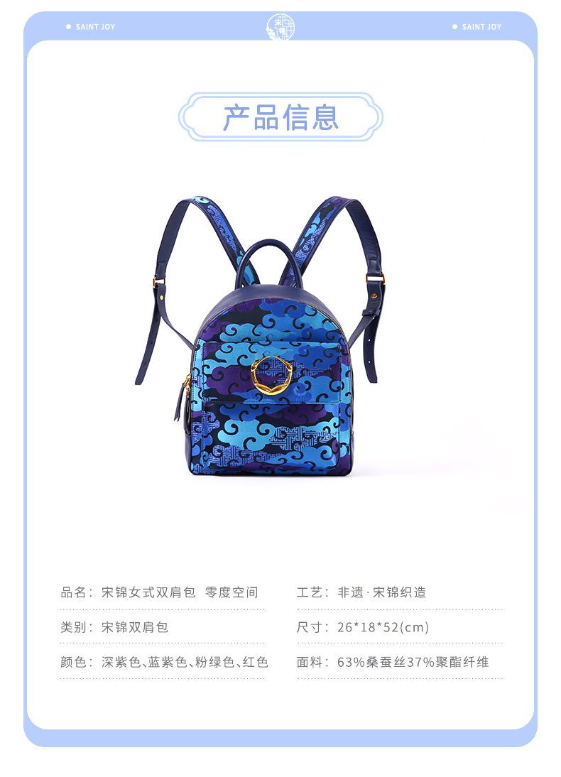 SAINTJOY/上久楷 宋锦女式双肩包 蓝紫零度空间 BWS18A0101 商品图12