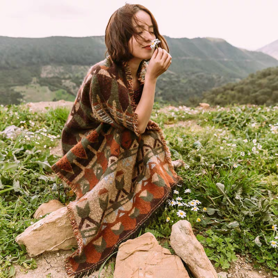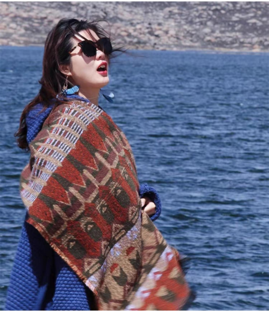 🥰【HLUOS秋冬民族风旅行披肩围巾】❤️秋冬降温首选!!💰49.9😎秒杀到手△ 披上就有一种🔥云南少数民族的感觉,💥谁穿谁美! 旅行街拍氛围感拉满!