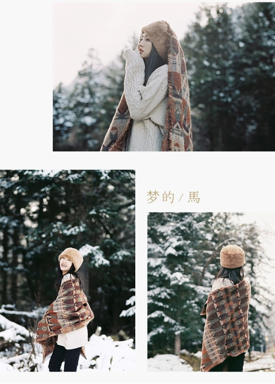 基础款式,打造出各种温暖时尚的造型, 可以和各种颜色的衣服搭配,特别是搭配其他具有民族风的衣服, 可以让整个人看上去更加神秘而迷人。