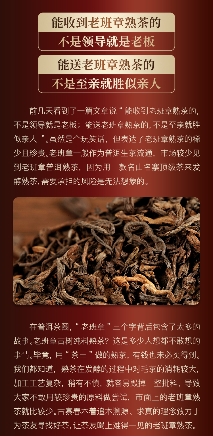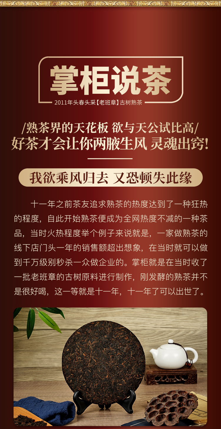 【老班章熟茶】你喝过用老班章古树来发酵的熟茶吗?重磅硬通货十一年陈老班章熟茶来袭357克/饼