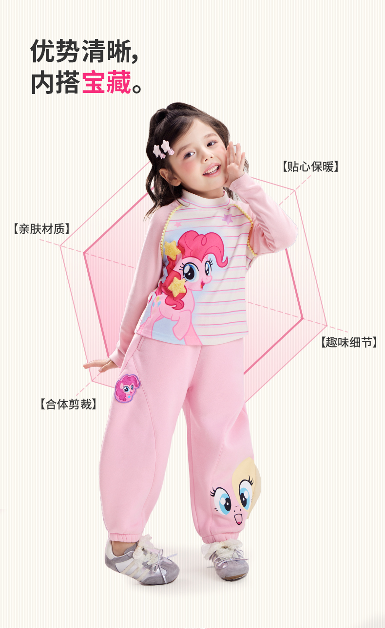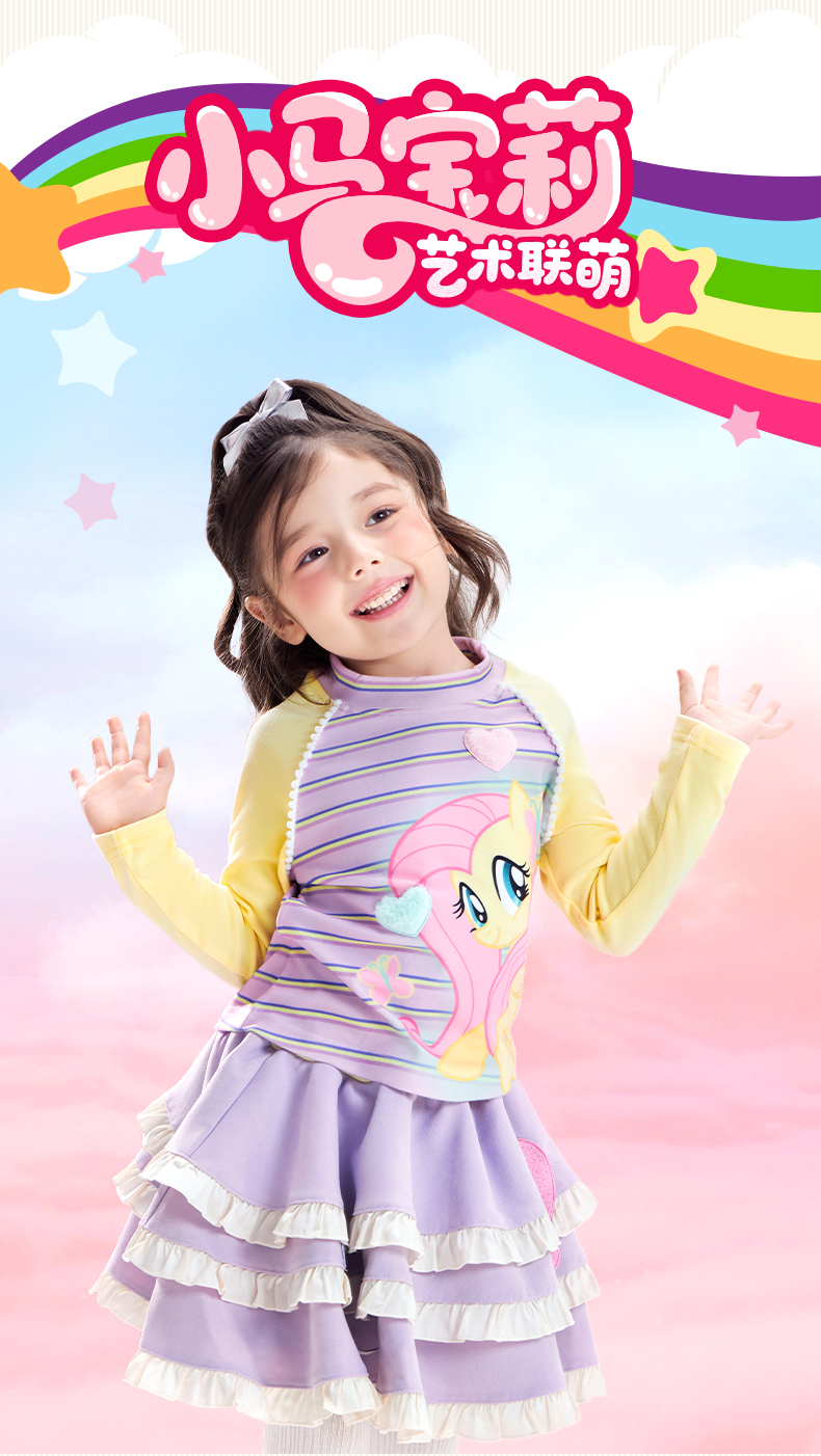小马宝莉联名年衣童装秋冬新款儿童卡通半高领小马宝莉条纹T恤