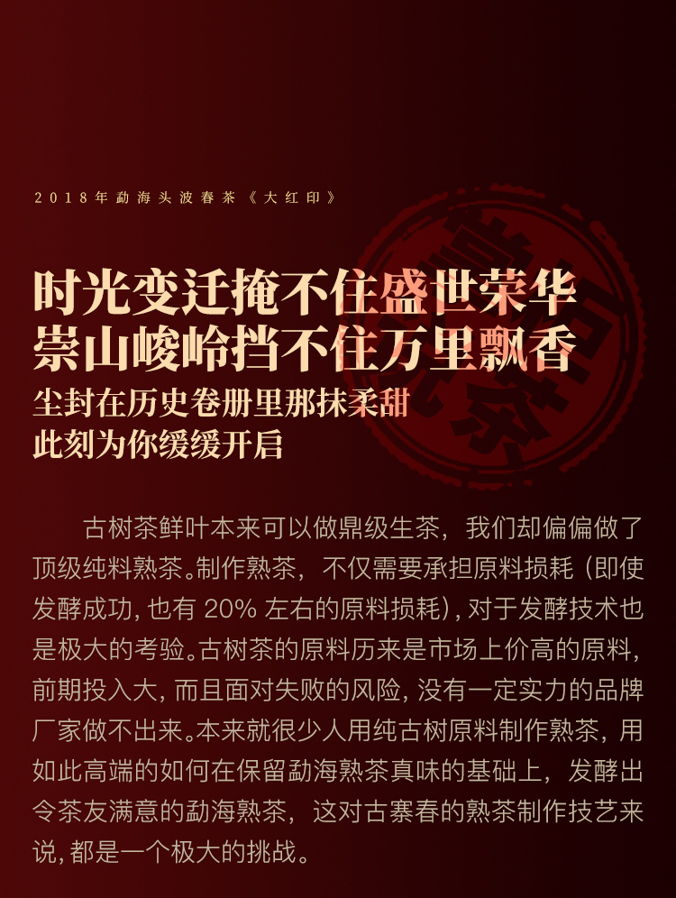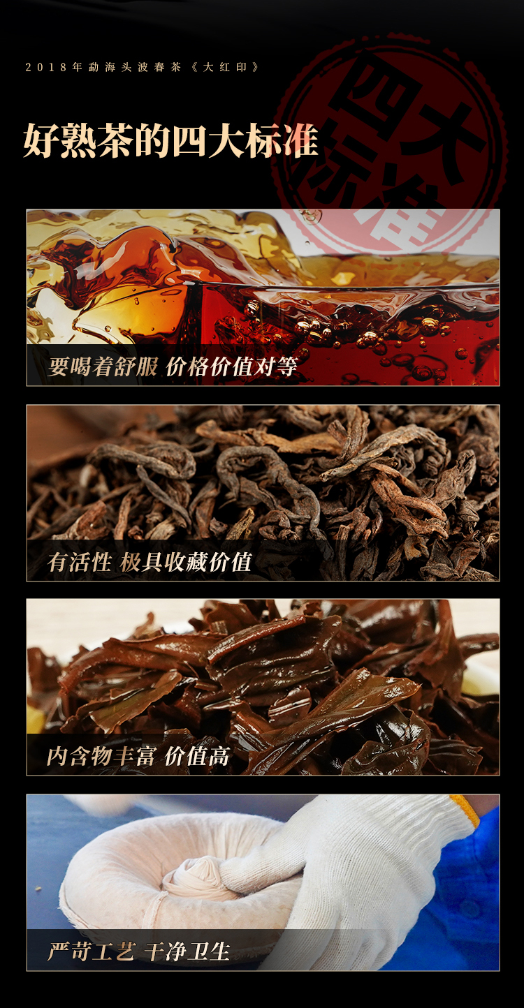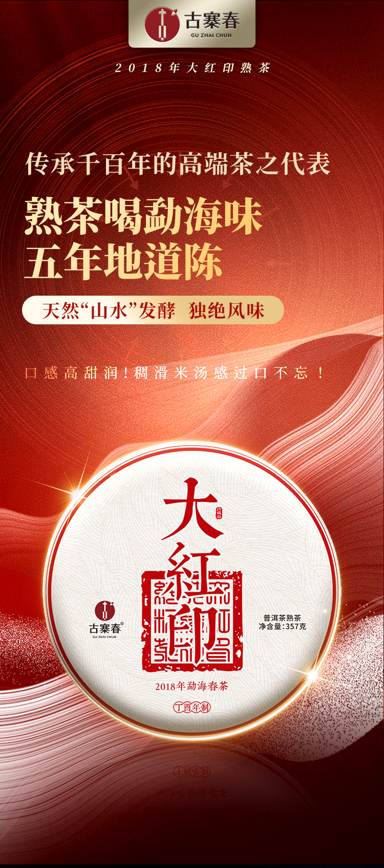1月5日上午九点【大红印熟茶】2018年勐海布朗山熟茶,传承千百年的高端茶之代表 口感高甜润!稠滑米汤感过口不忘357克/饼茶叶