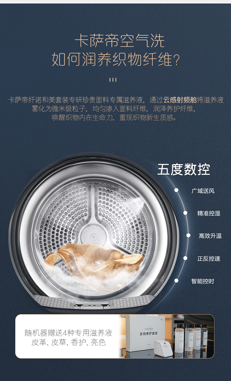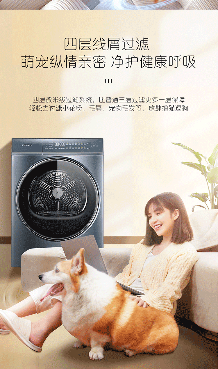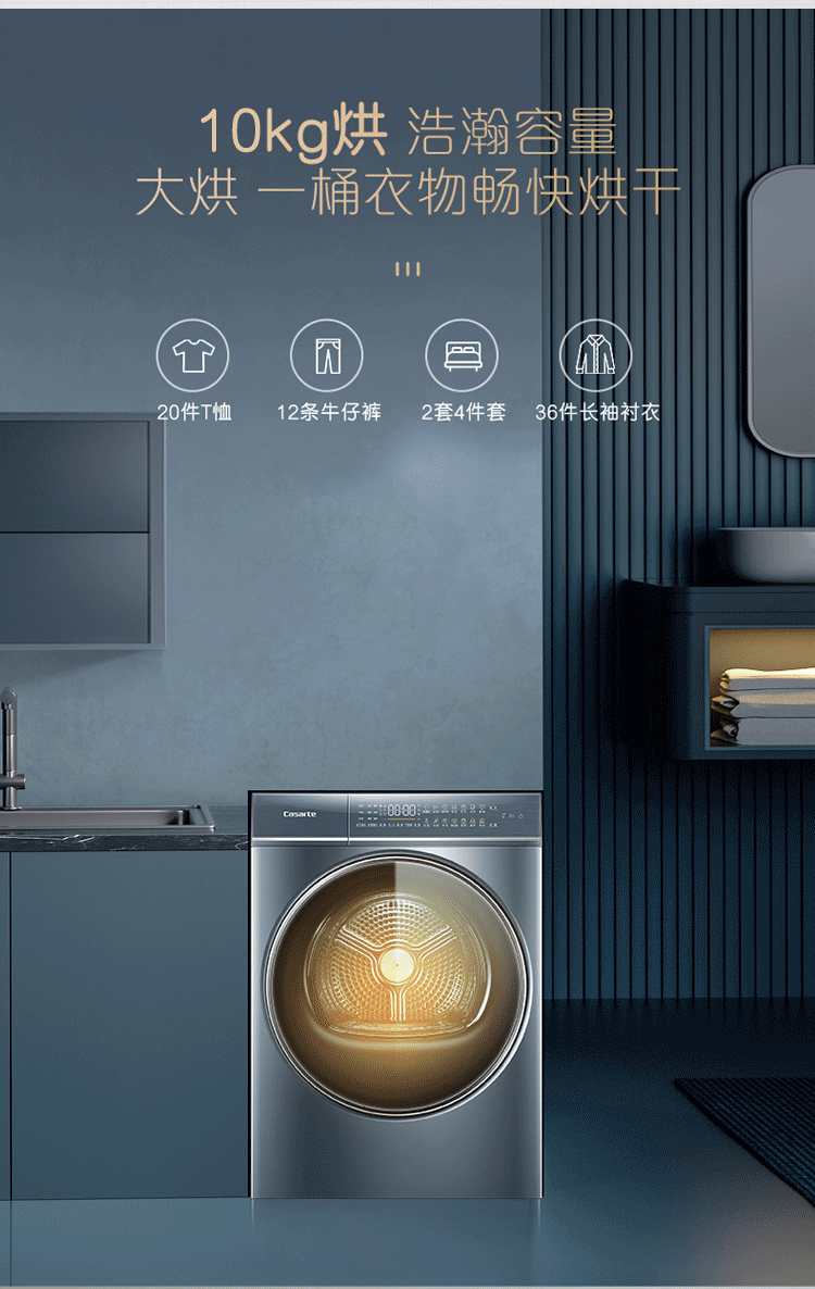 卡萨帝(Casarte)10公斤变频干衣机双擎热泵烘干护理衣物除菌净螨空气洗 锡兰青 CGY 10FL5EU1 锡兰青