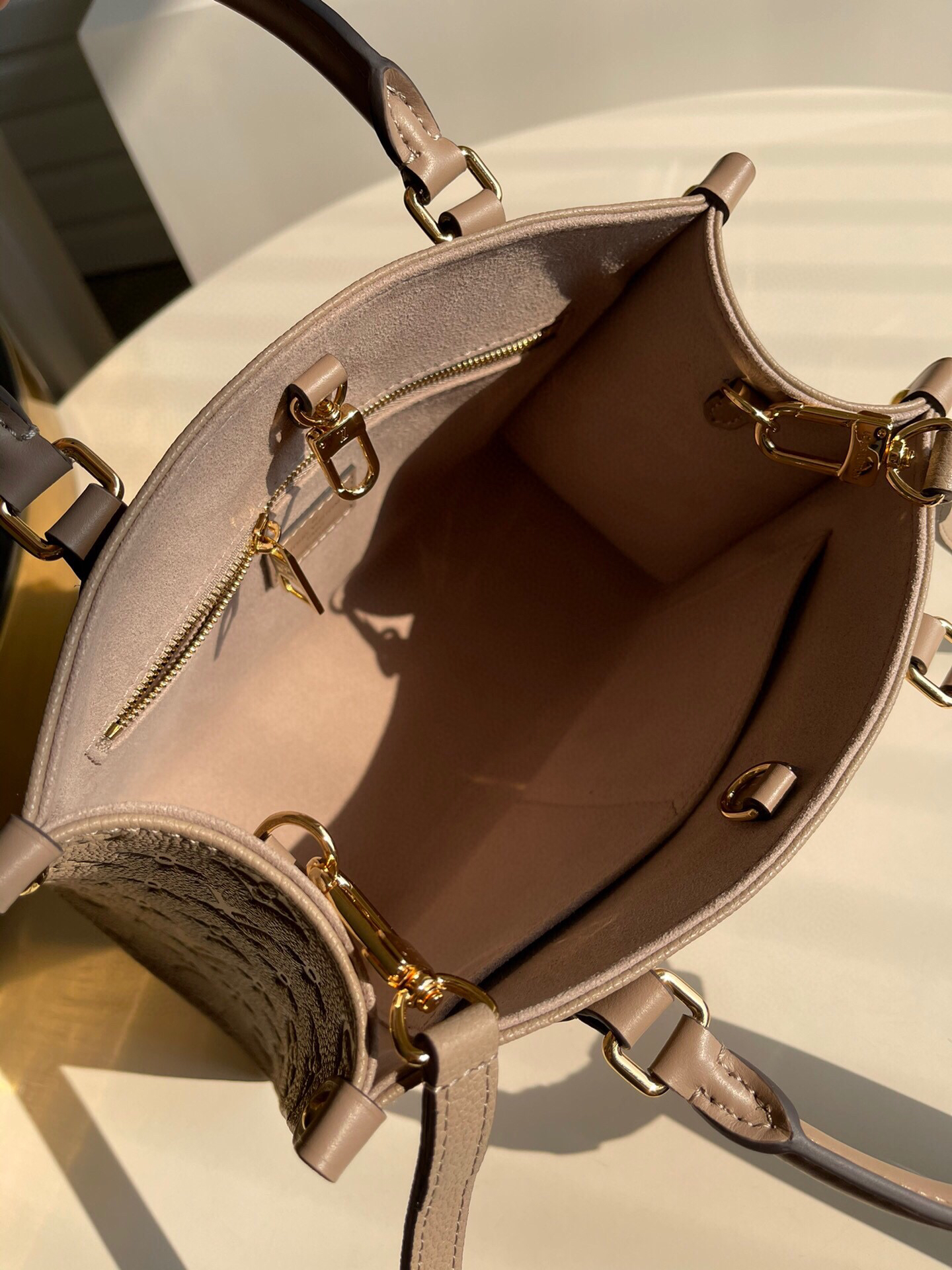 夏日特价💰1100 原单LV M45660灰 45653 Onthego 小号 Tote 包向 1968 年的经典 Sac Plat 手袋汲取灵感 以压印 Giant Monogram 图案的 Monogram Empreinte 皮革成就缩微版本 可收纳 iPad Mini 等日常所需 灵活手柄和可调节肩带丰富背携选择 size:25x19x11.5cm