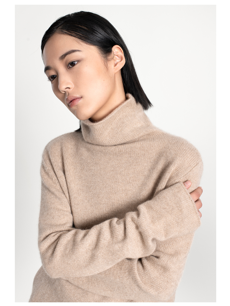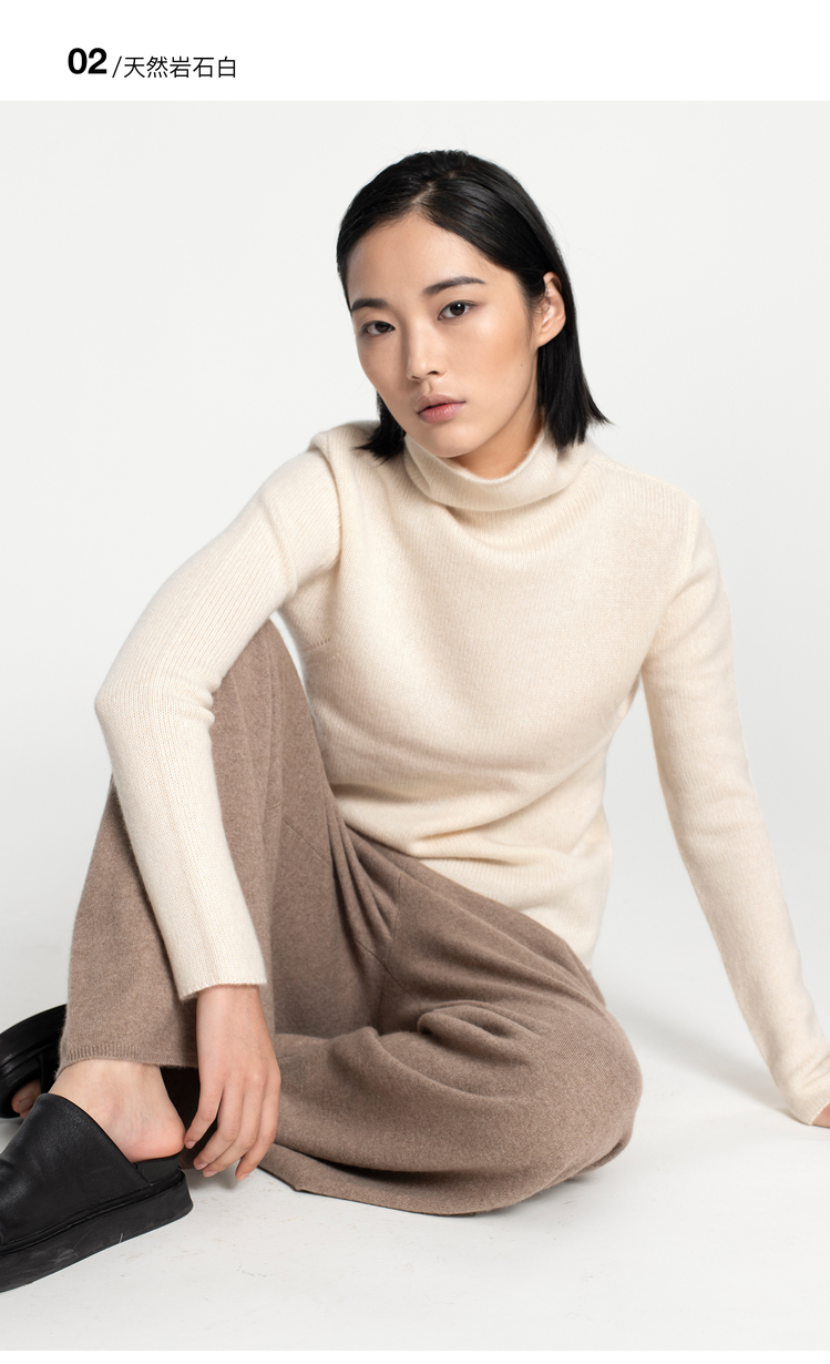 女士2021年新款无染色纯山羊绒三股加厚高领套头衫
