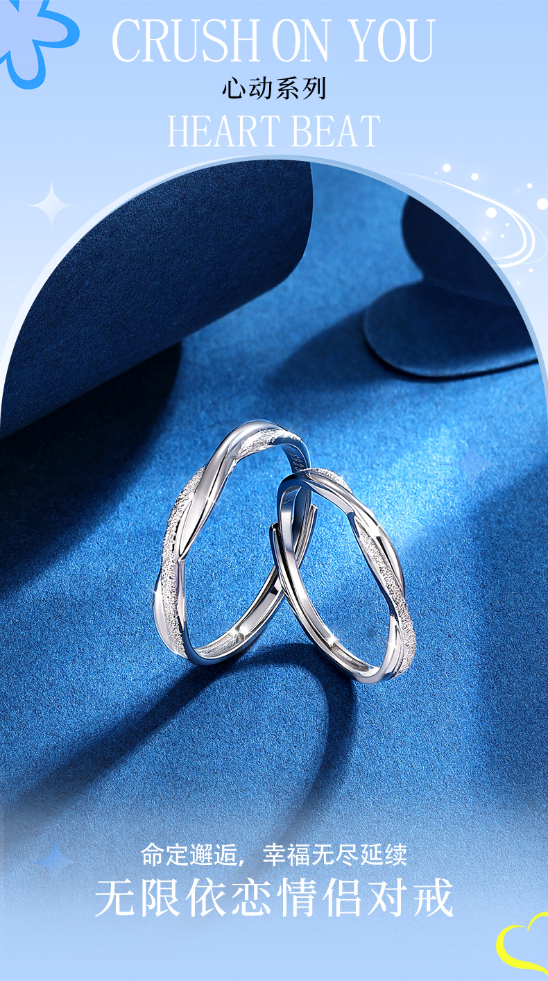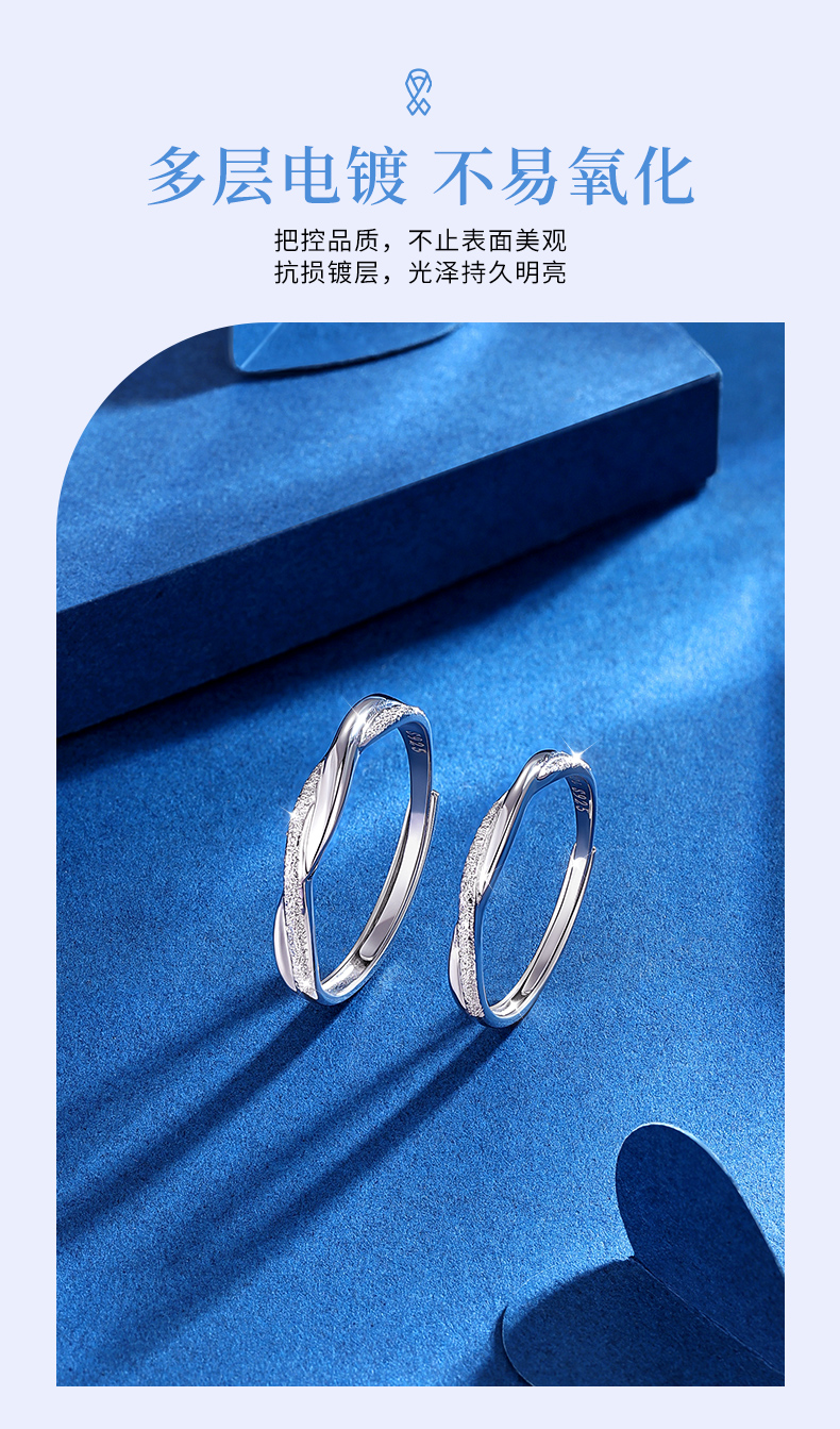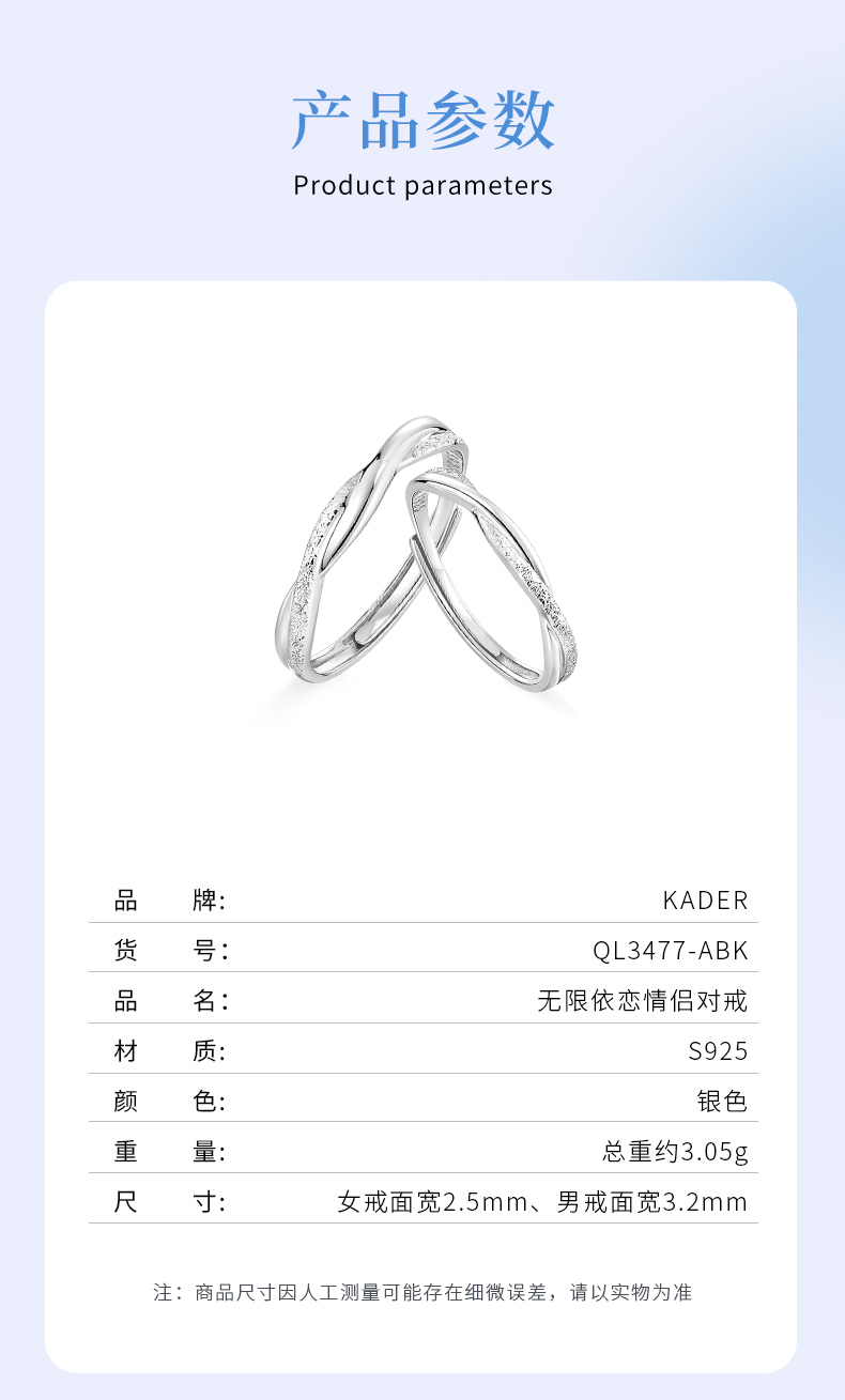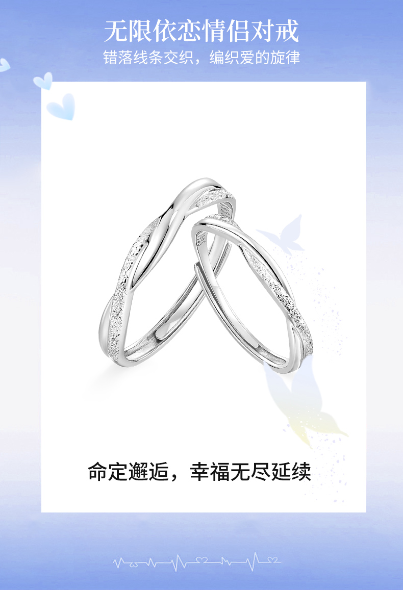卡蒂罗/KADER 无限依恋情侣对戒 莫比乌斯环爱无止境简约开口可调节素圈一对 爱意交织恋爱频率银戒 925银