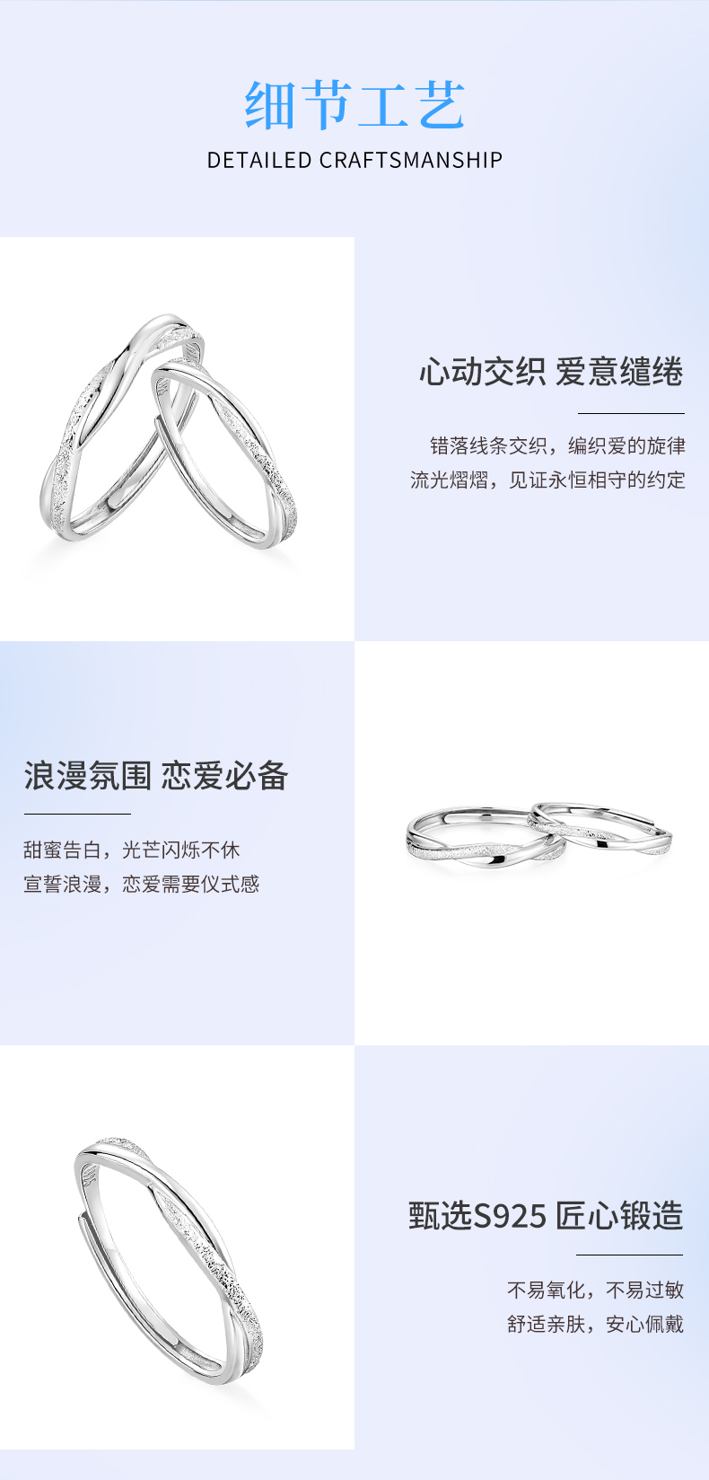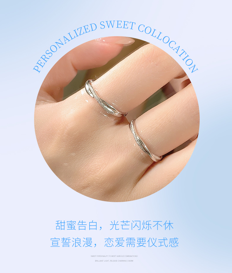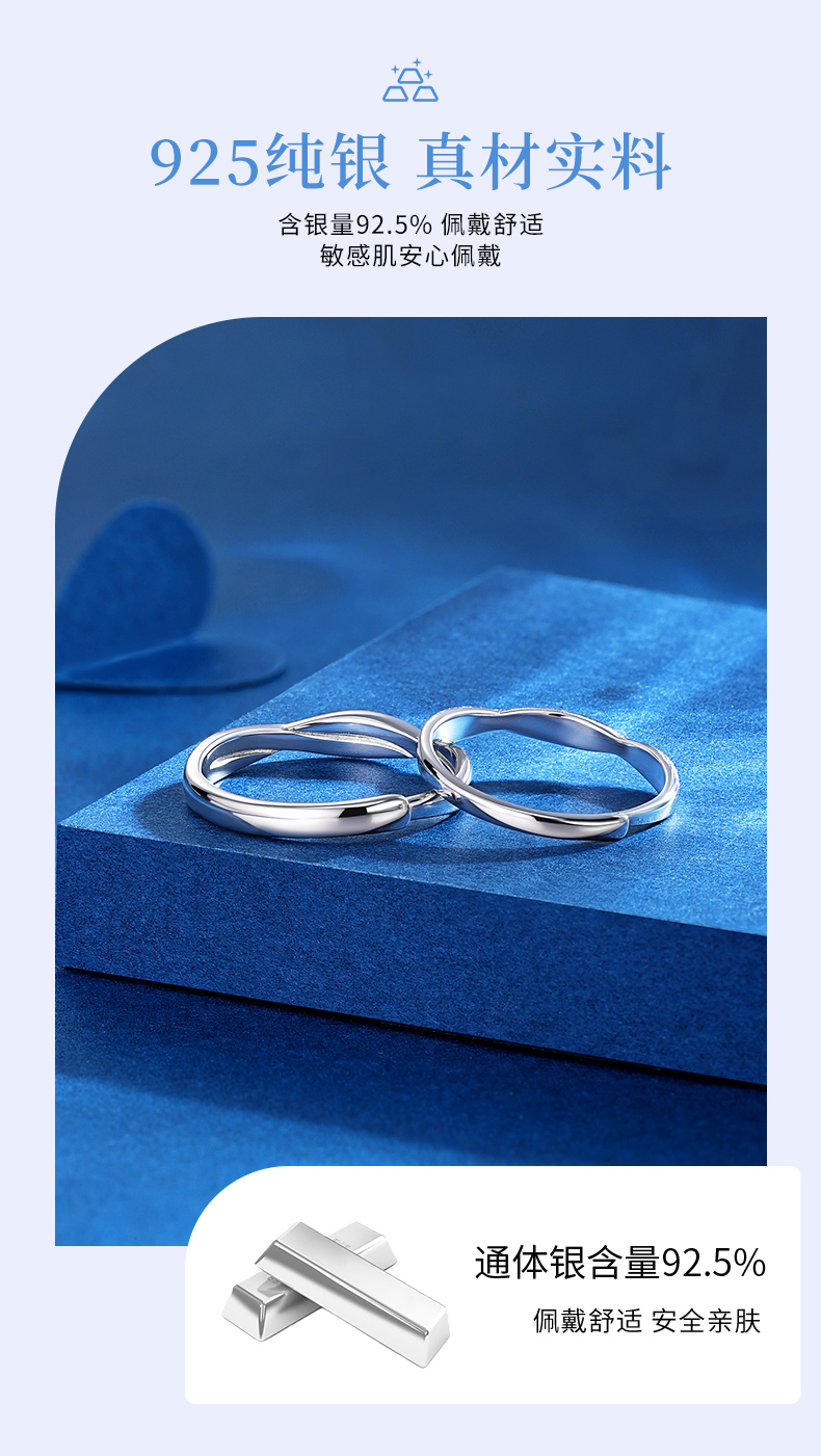 卡蒂罗/KADER 无限依恋情侣对戒 莫比乌斯环爱无止境简约开口可调节素圈一对 爱意交织恋爱频率银戒 925银