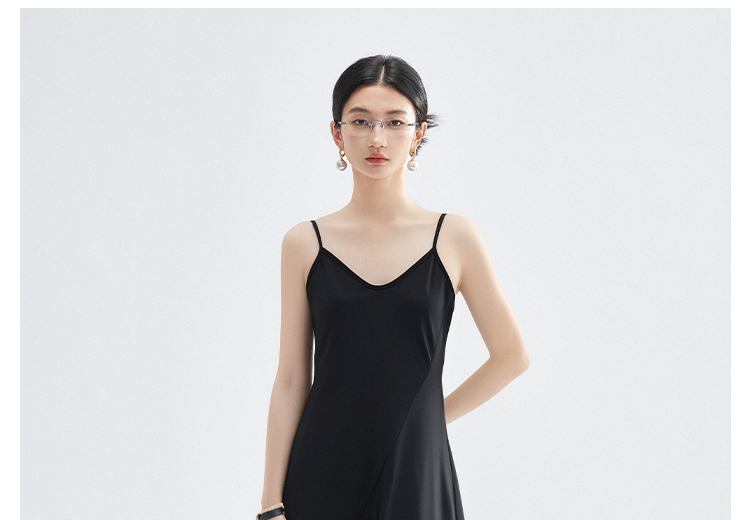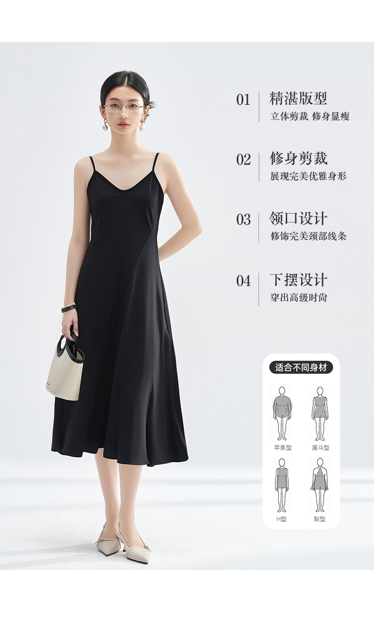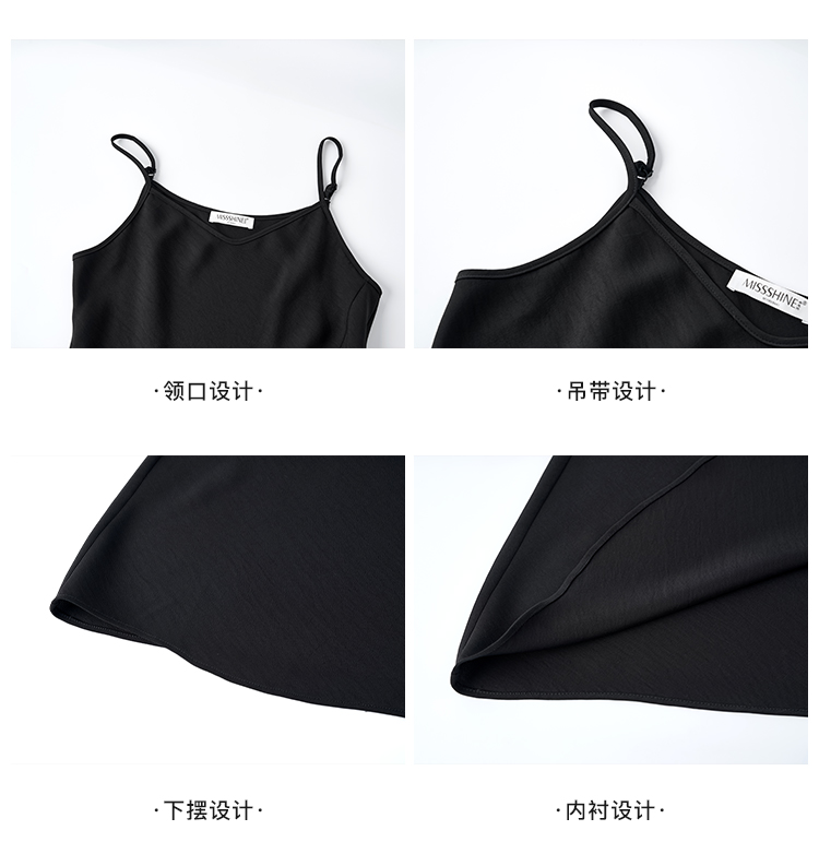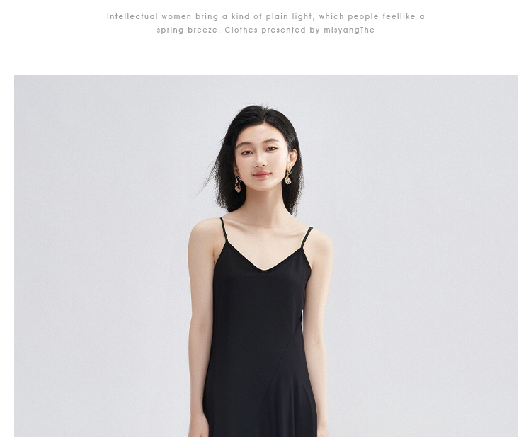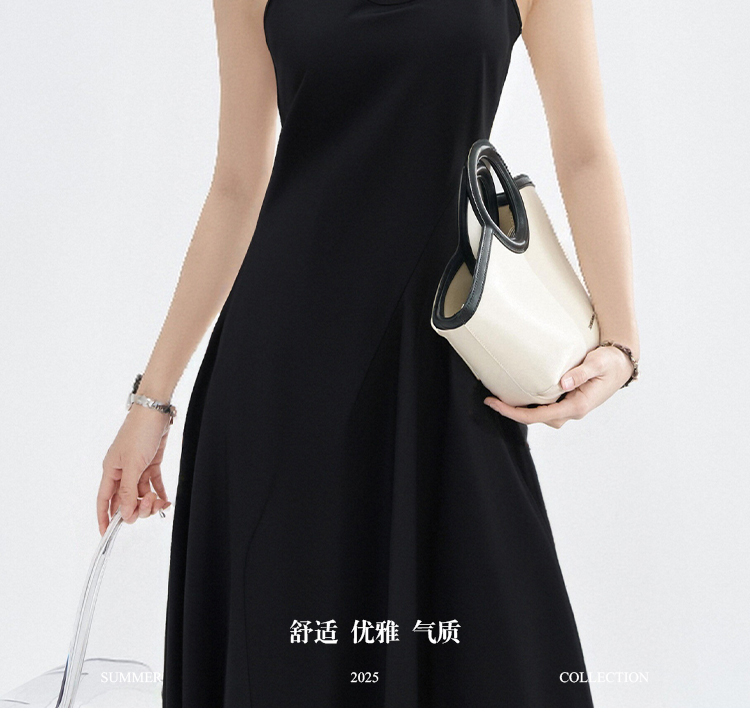 剩S/XL/XXL 米思阳2025夏季新款优雅纯色吊带连衣裙百搭修身中长款内搭大摆裙女5842
