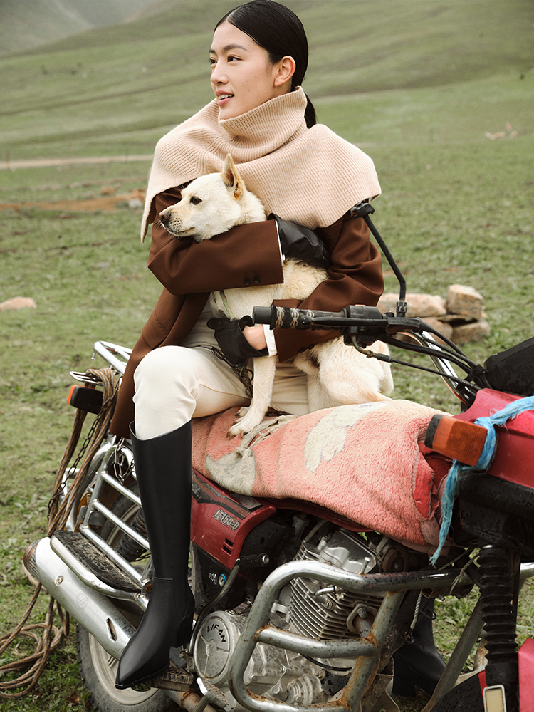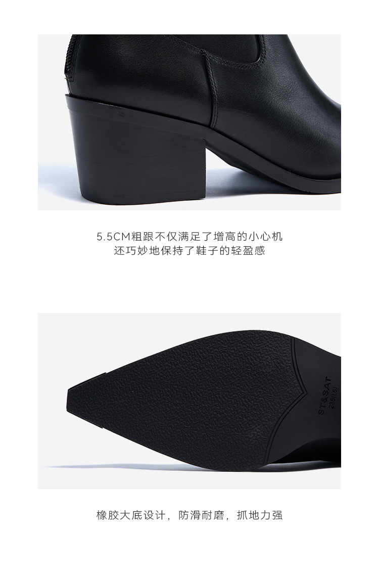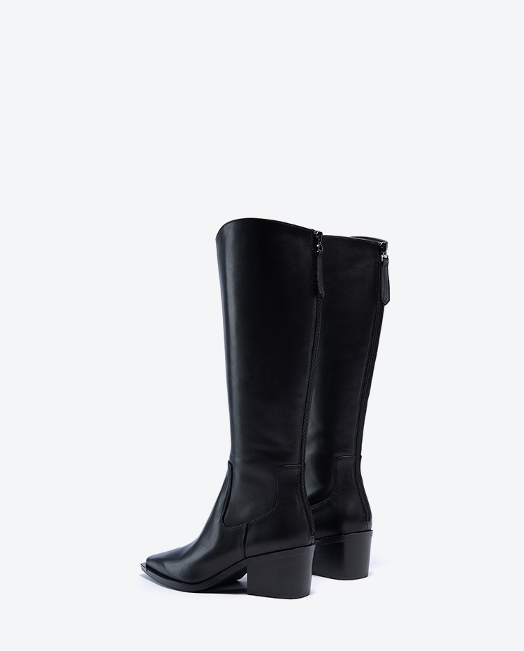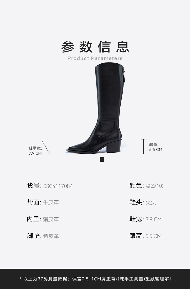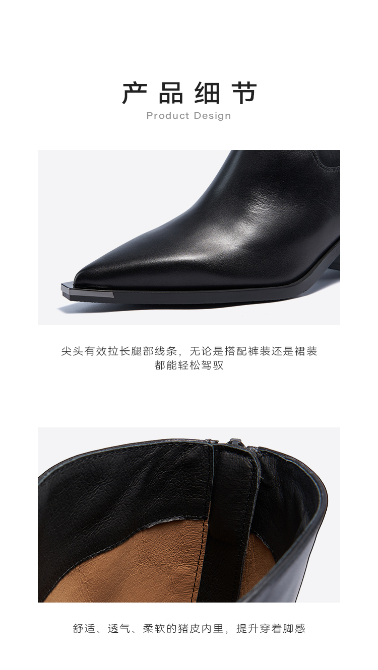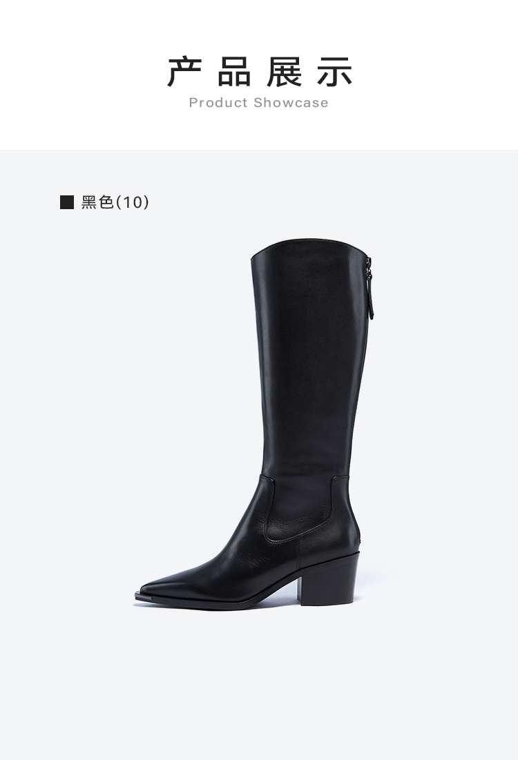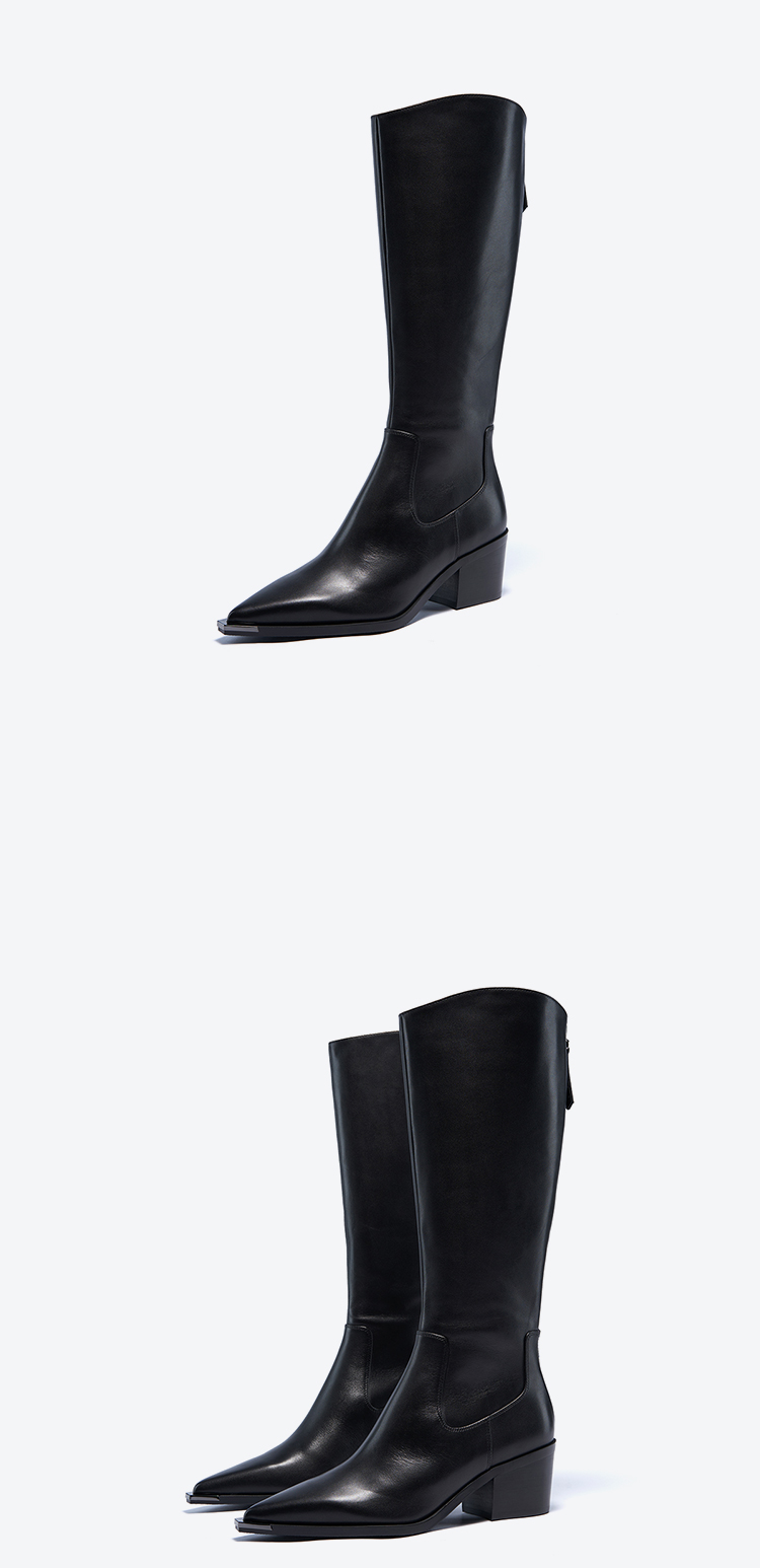 星期六时髦金属尖头显瘦百搭长筒靴SSC4117084