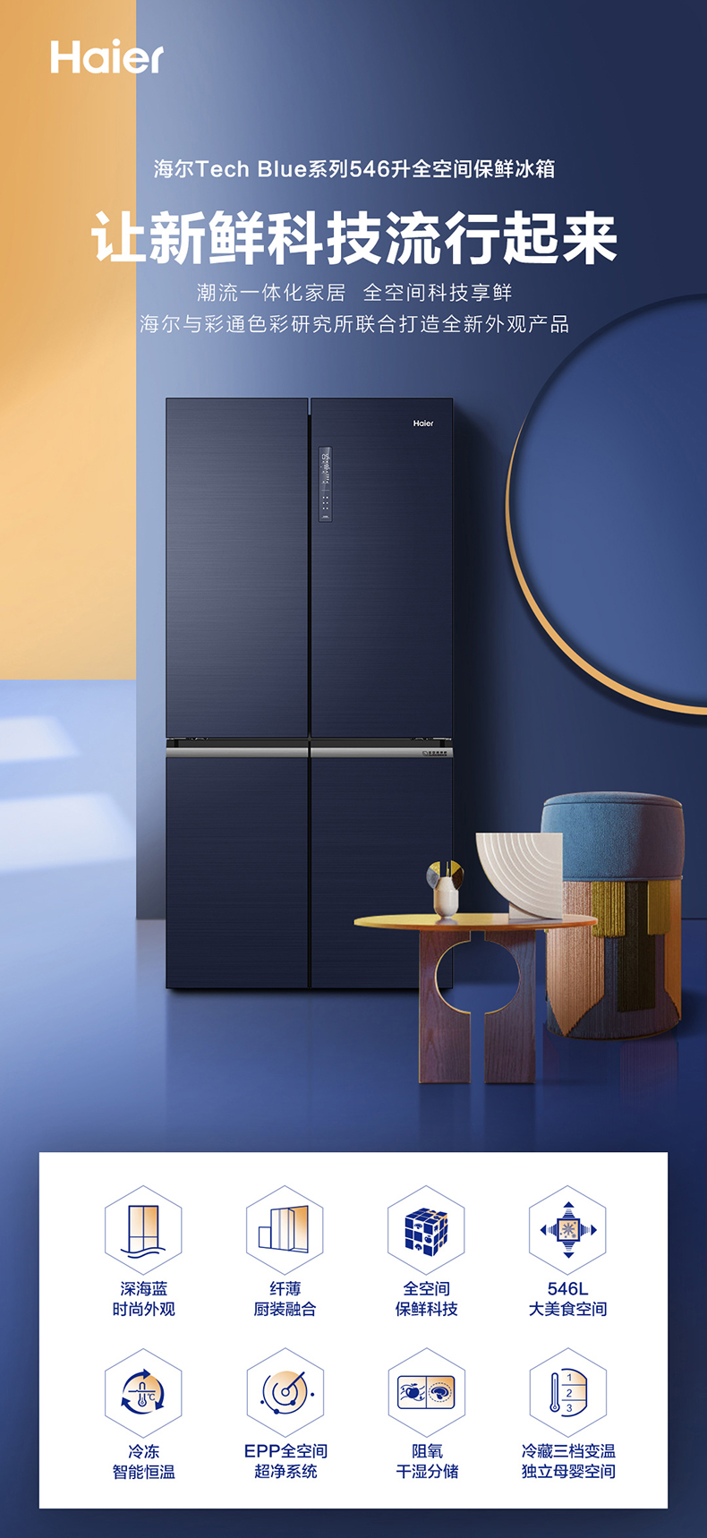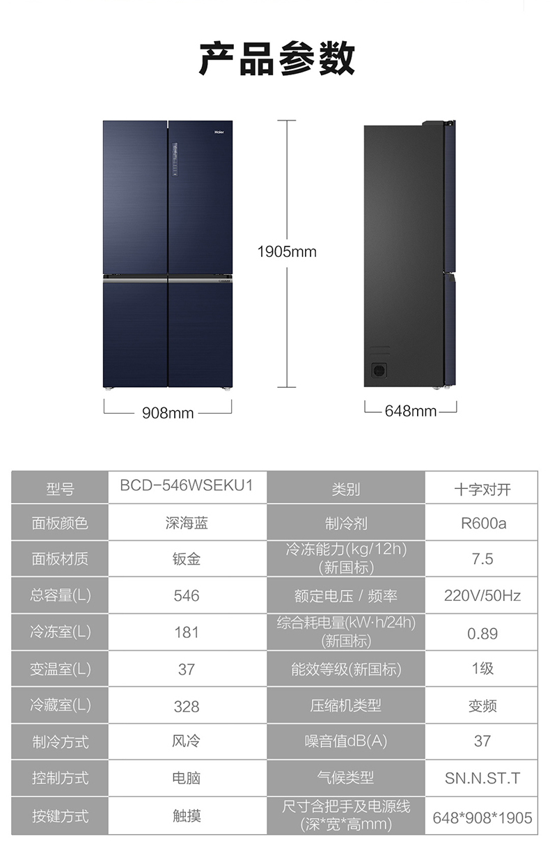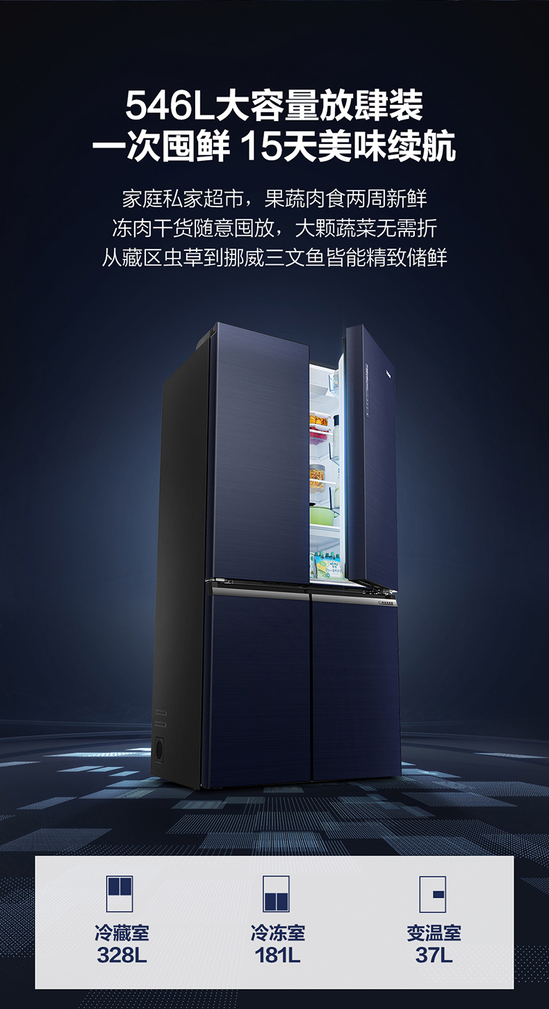 海尔546L十字对开门节能无霜大容量家用冰箱【LY】
