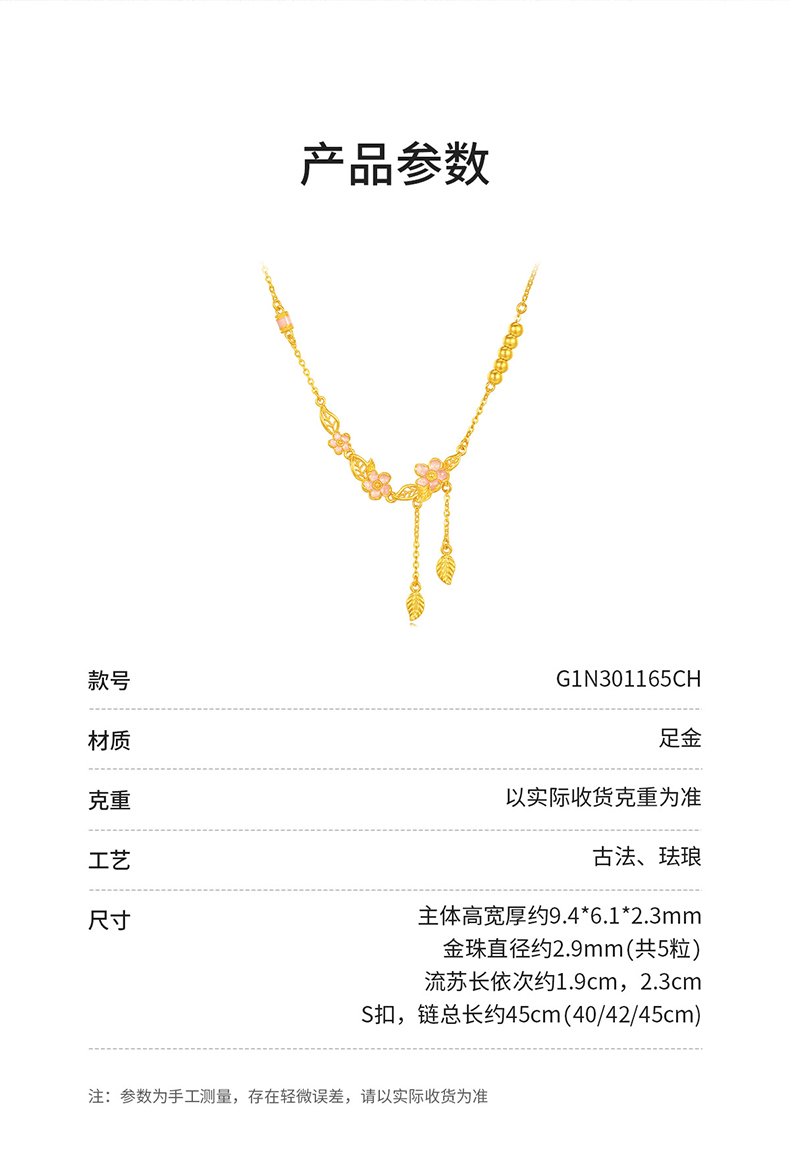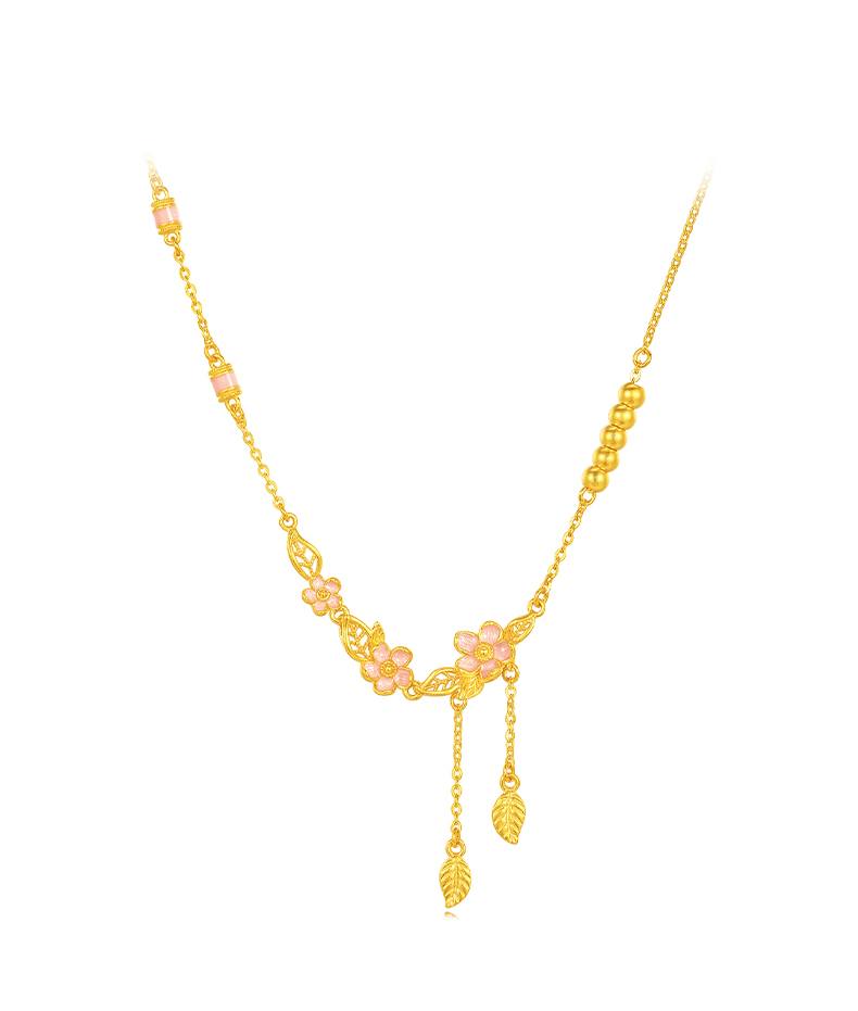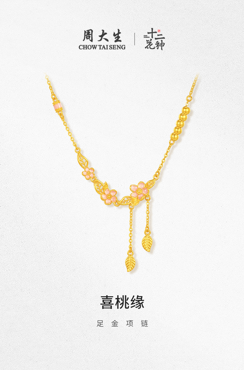 【特价秒杀】周大生X十二花神黄金项链女款足金金珠珐琅套链生日礼物送女朋友
