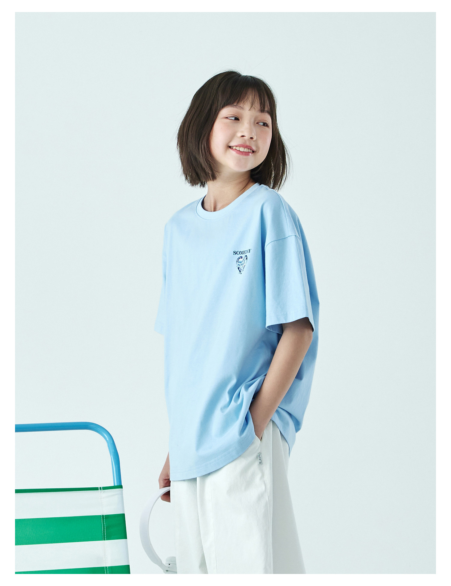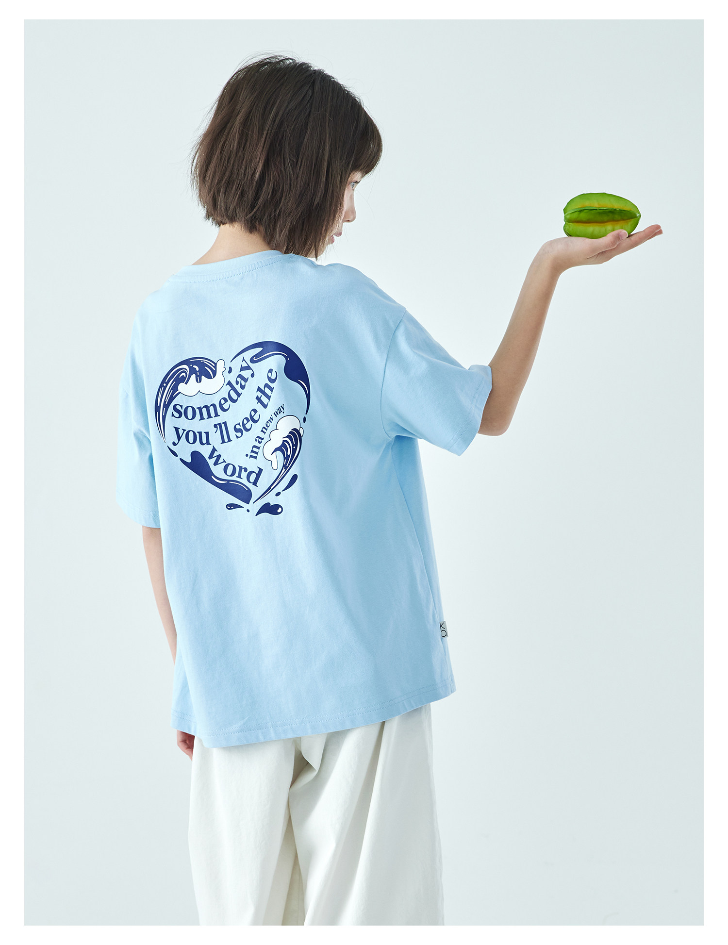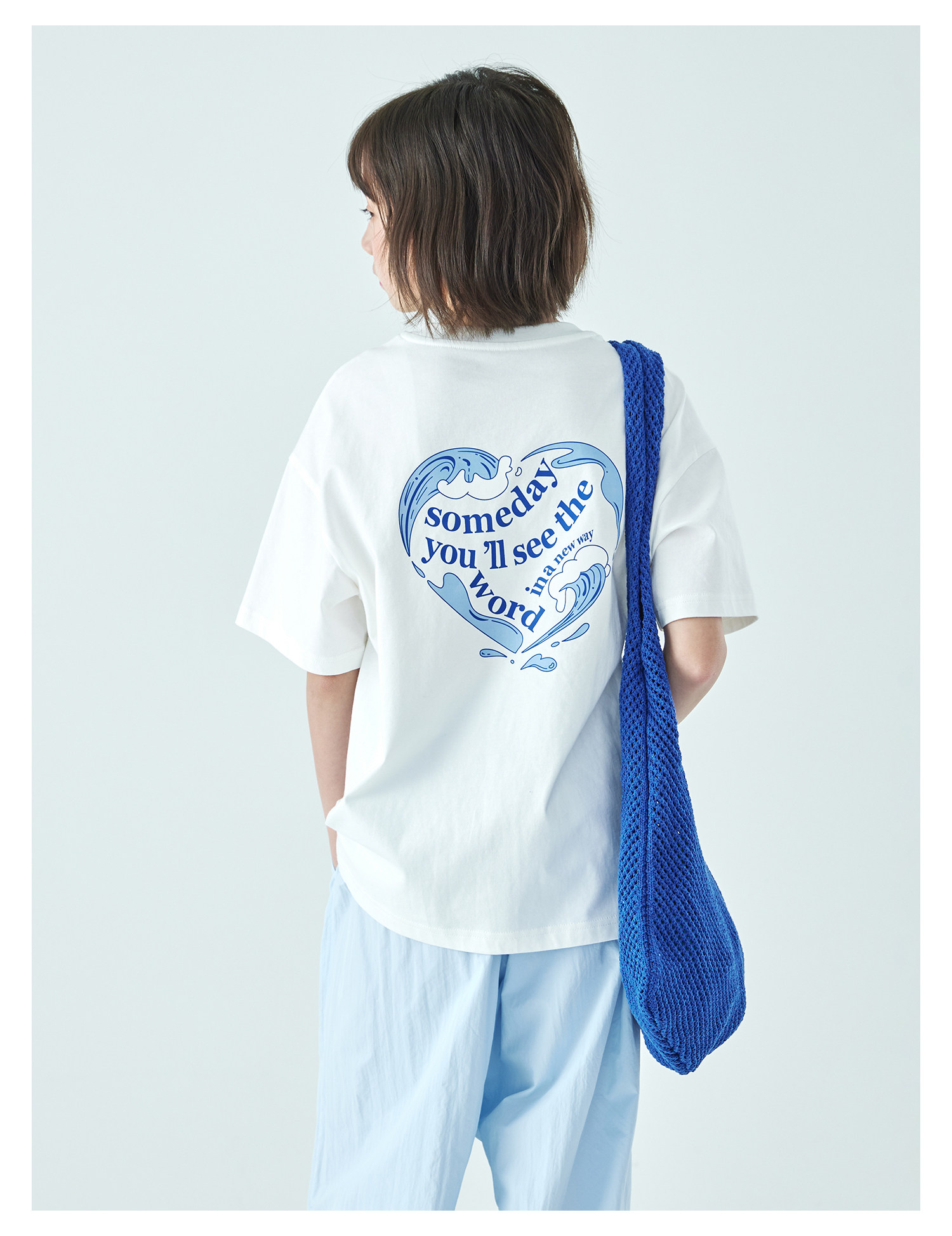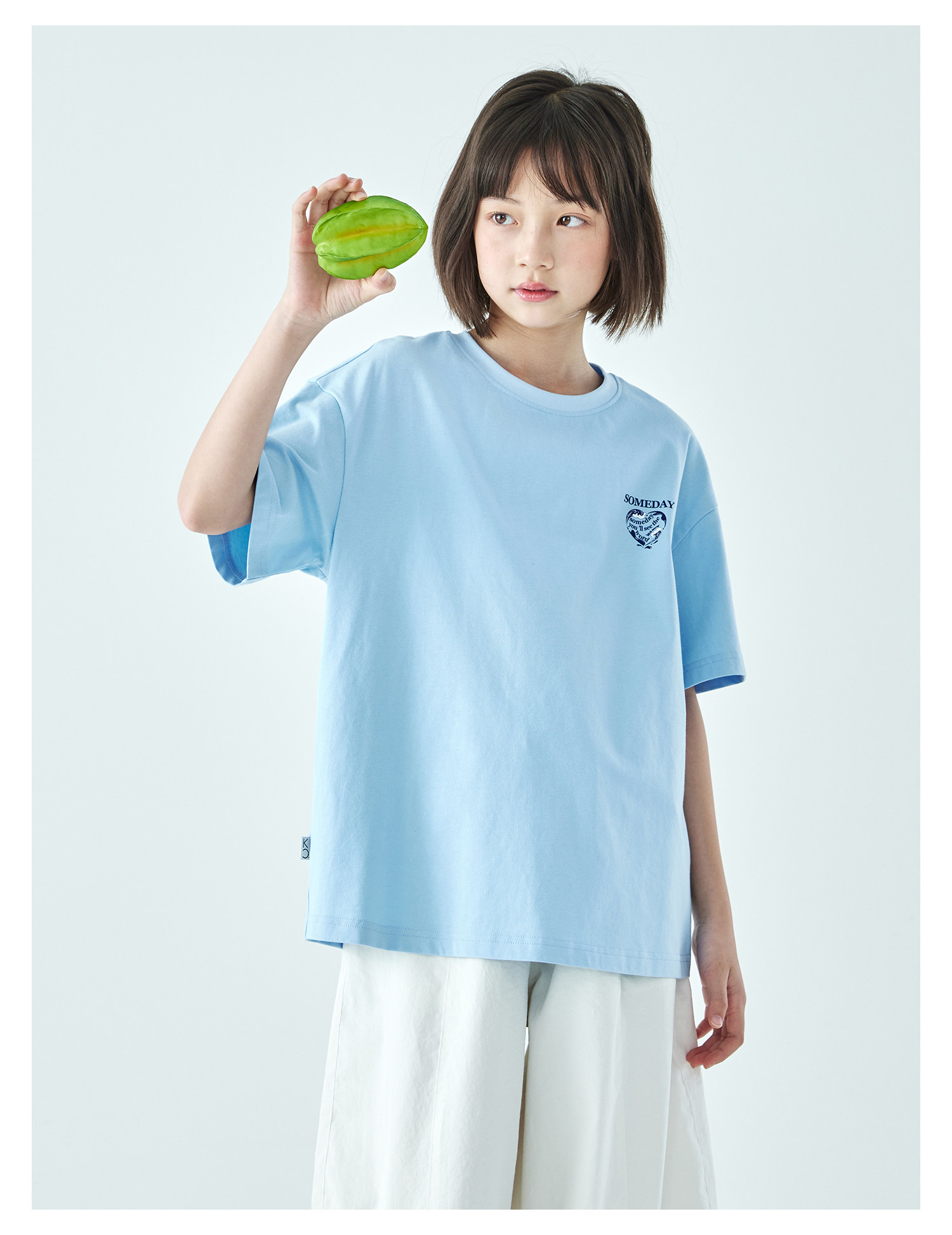 棵初26年夏季新款亲子中大女童爱心图案印花短袖T恤纯棉宽松上衣