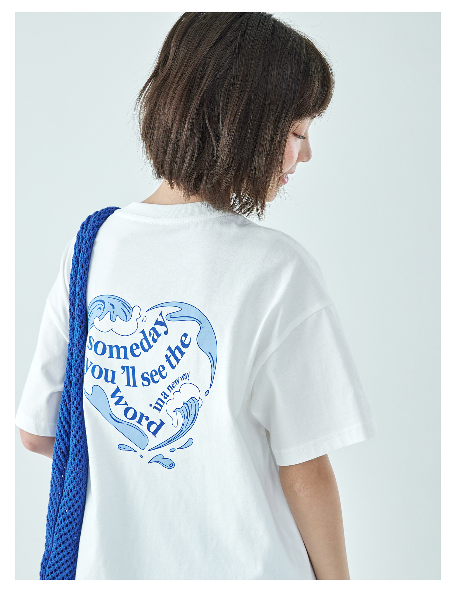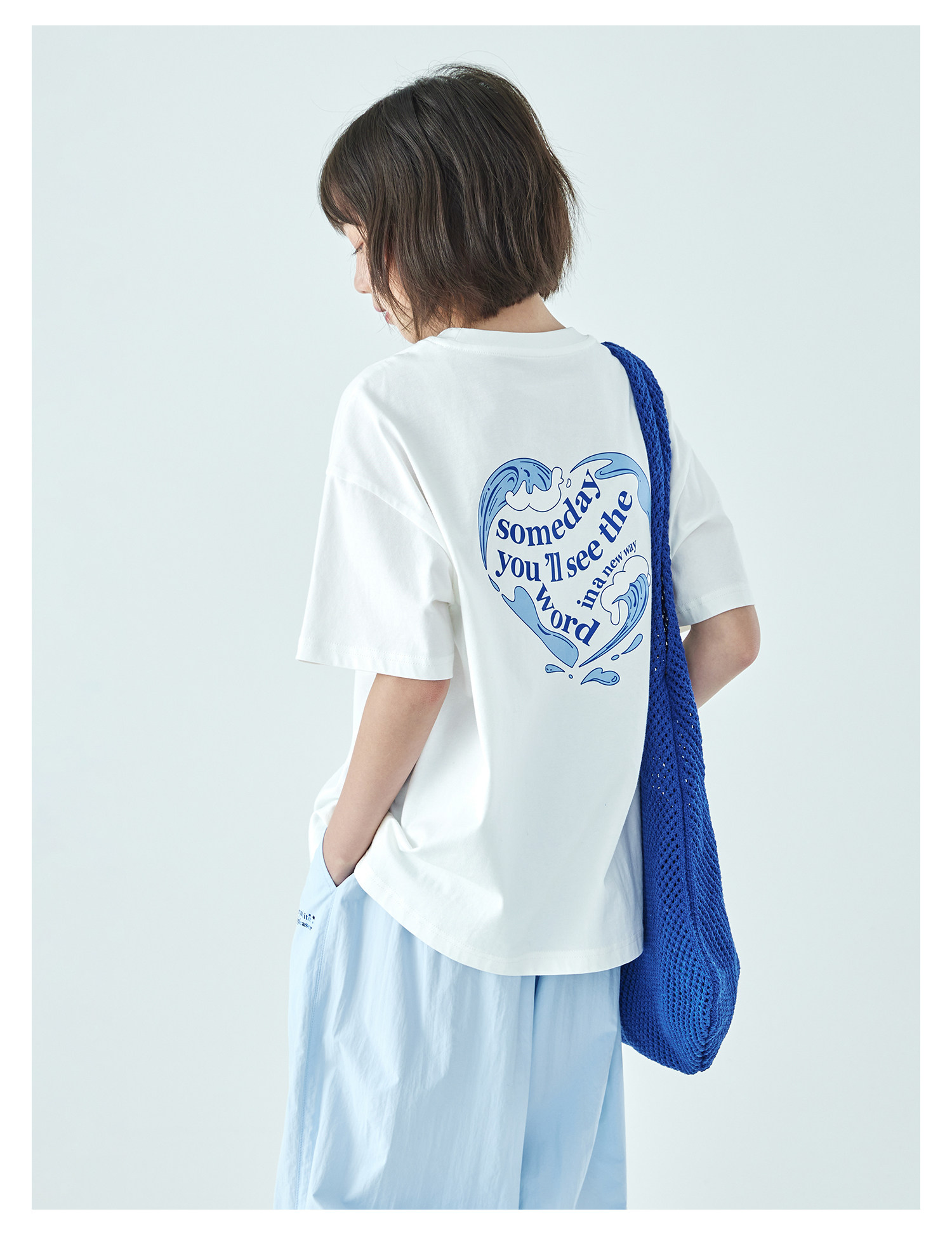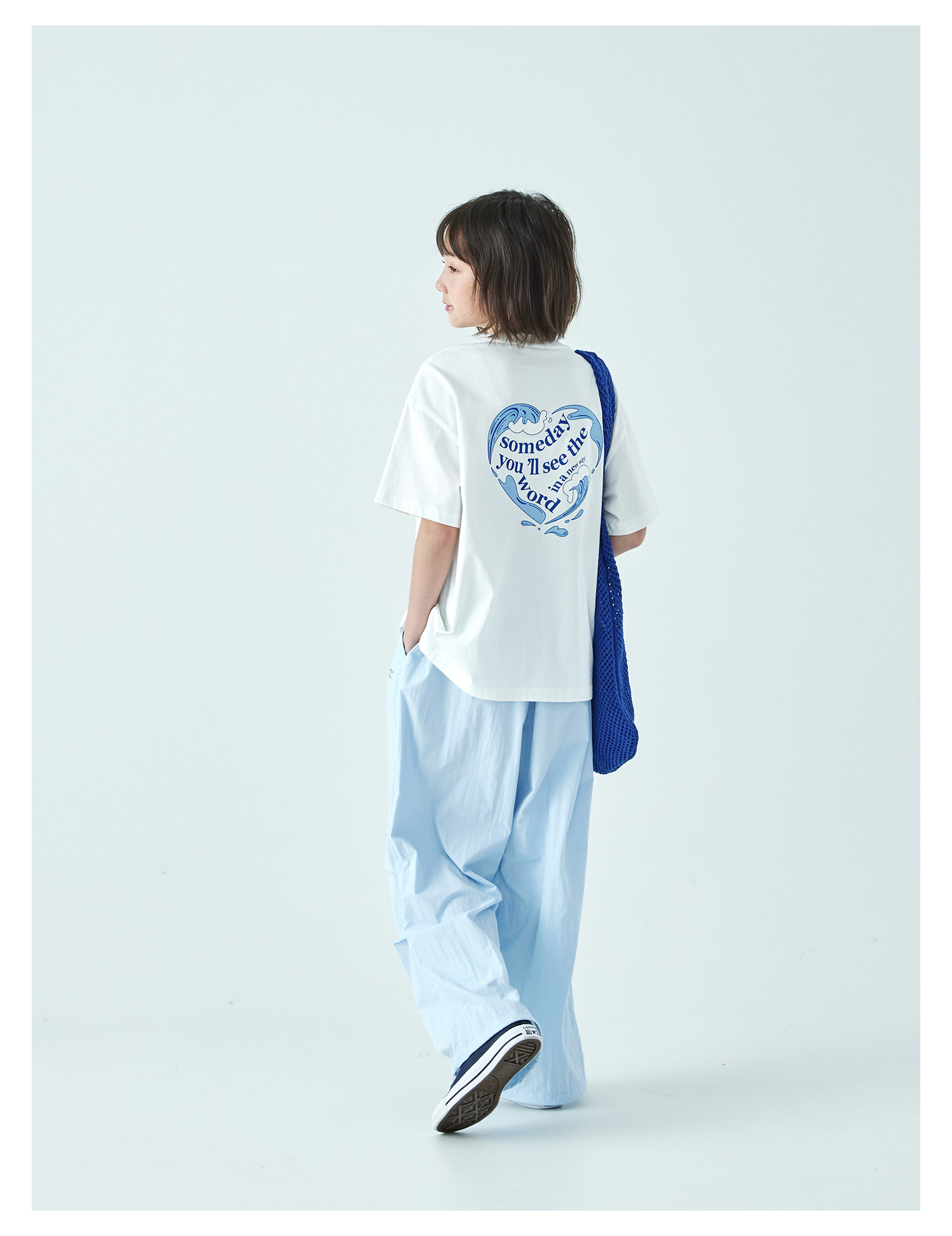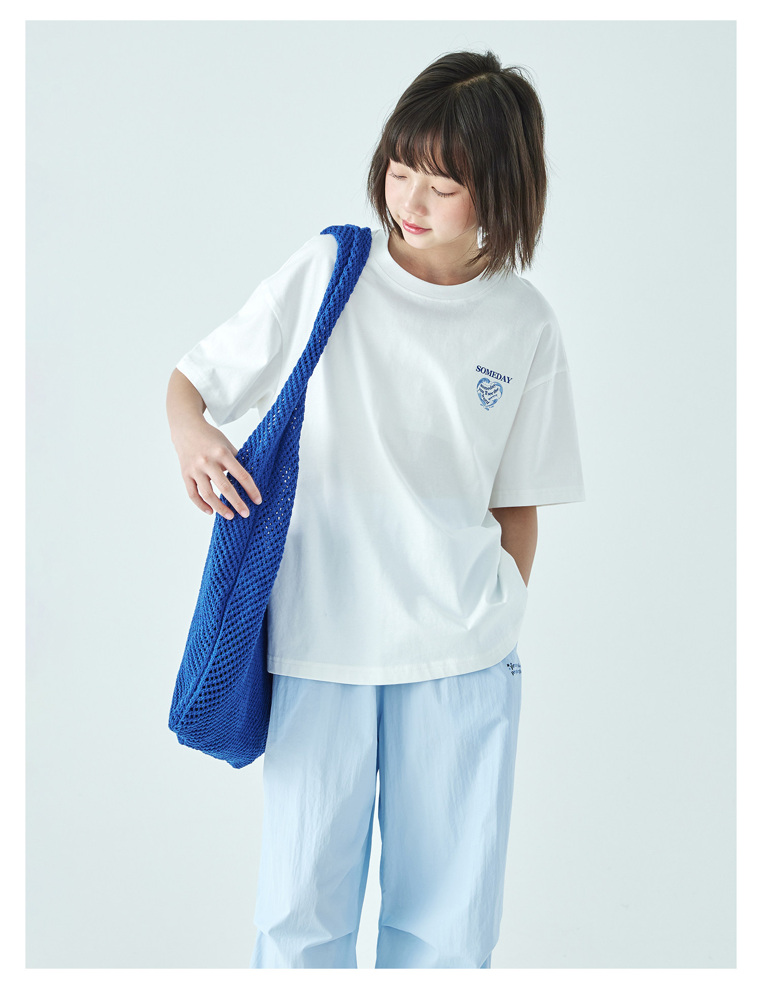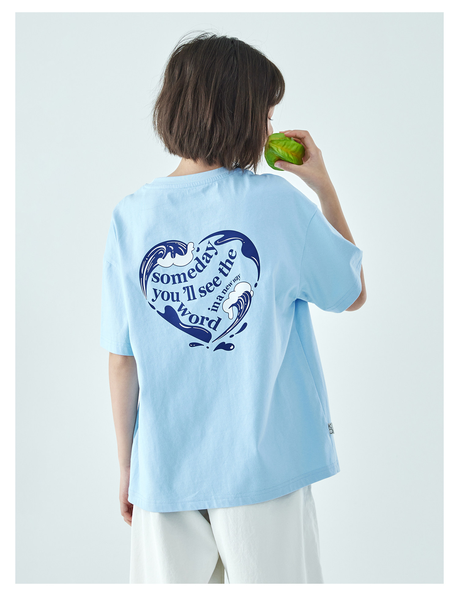 棵初26年夏季新款亲子中大女童爱心图案印花短袖T恤纯棉宽松上衣