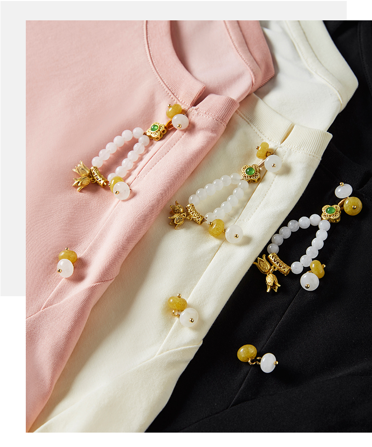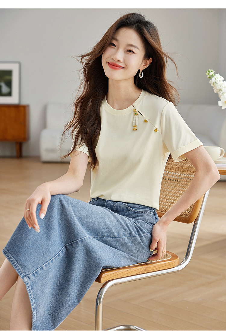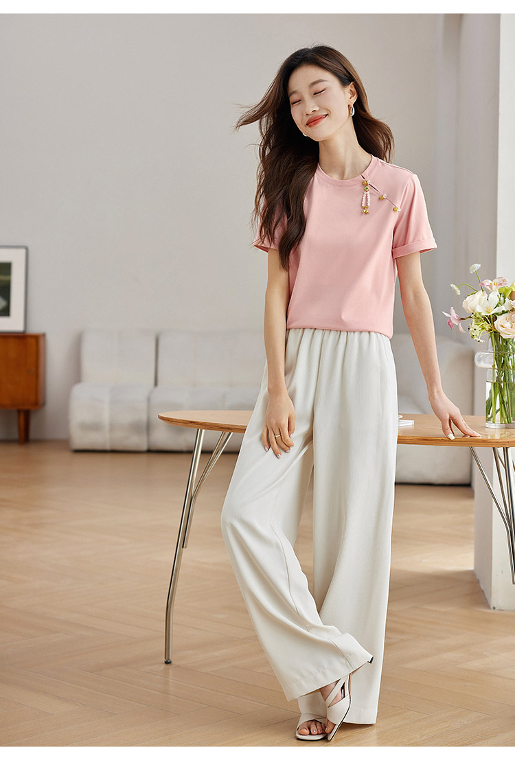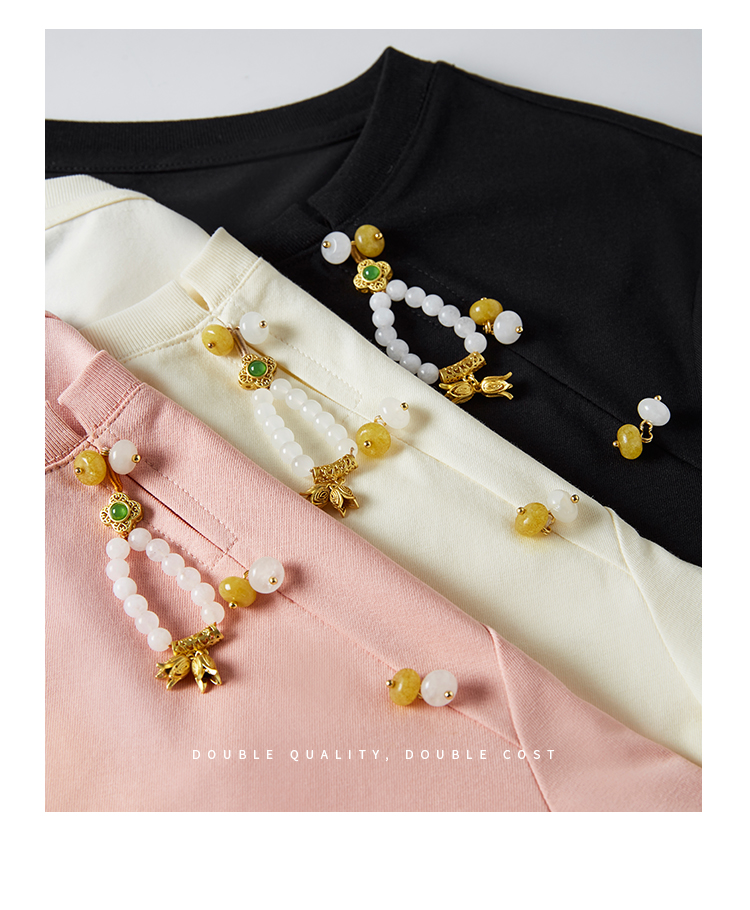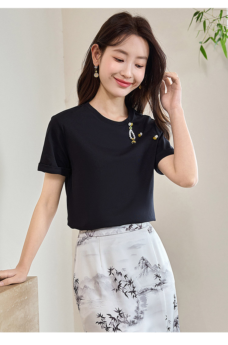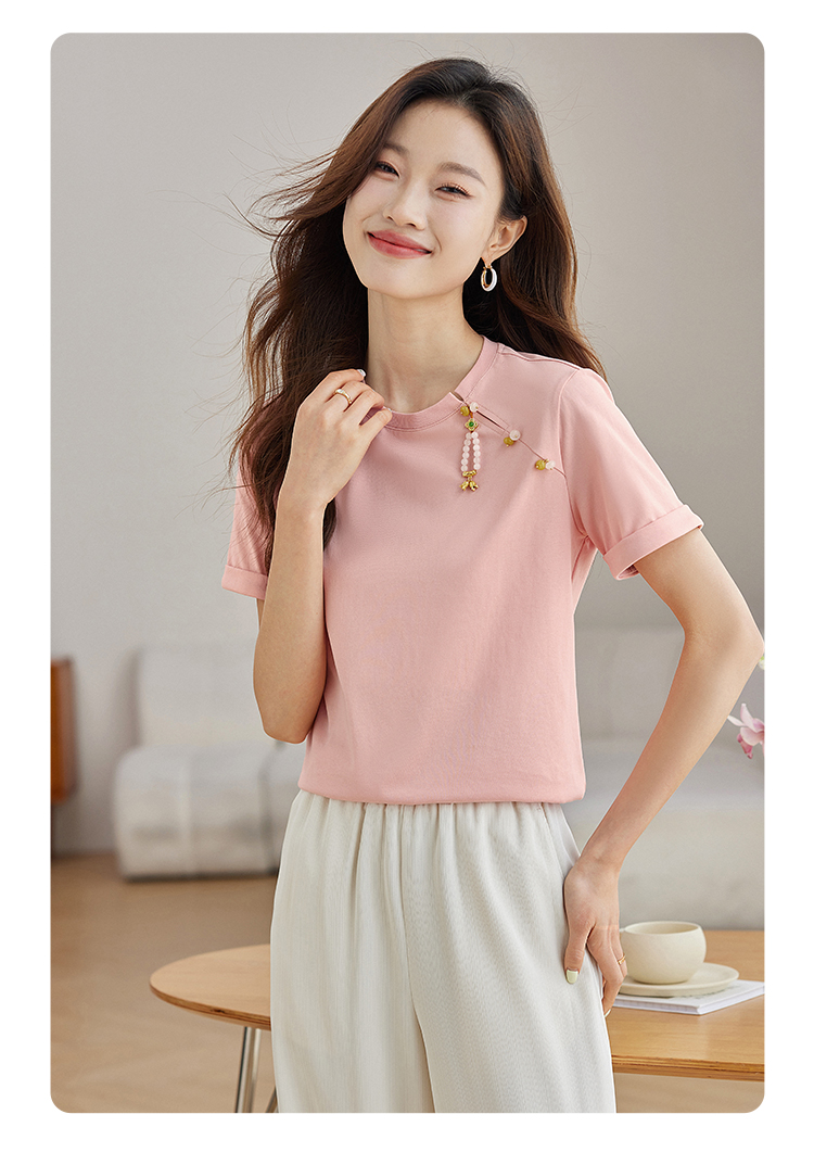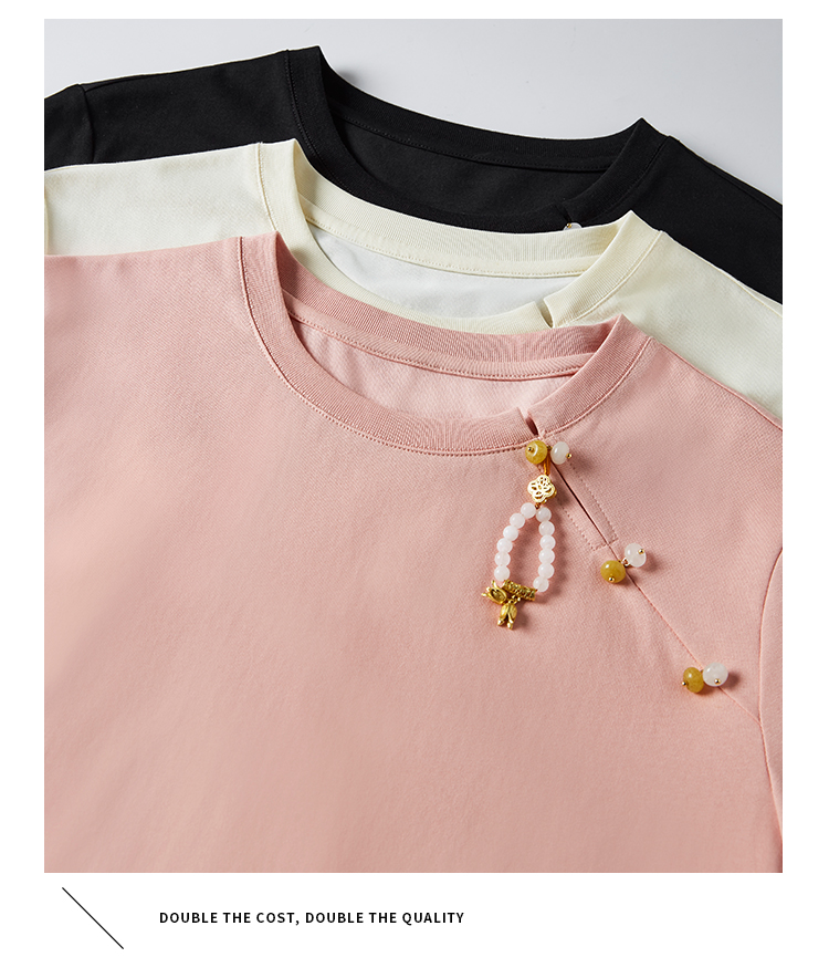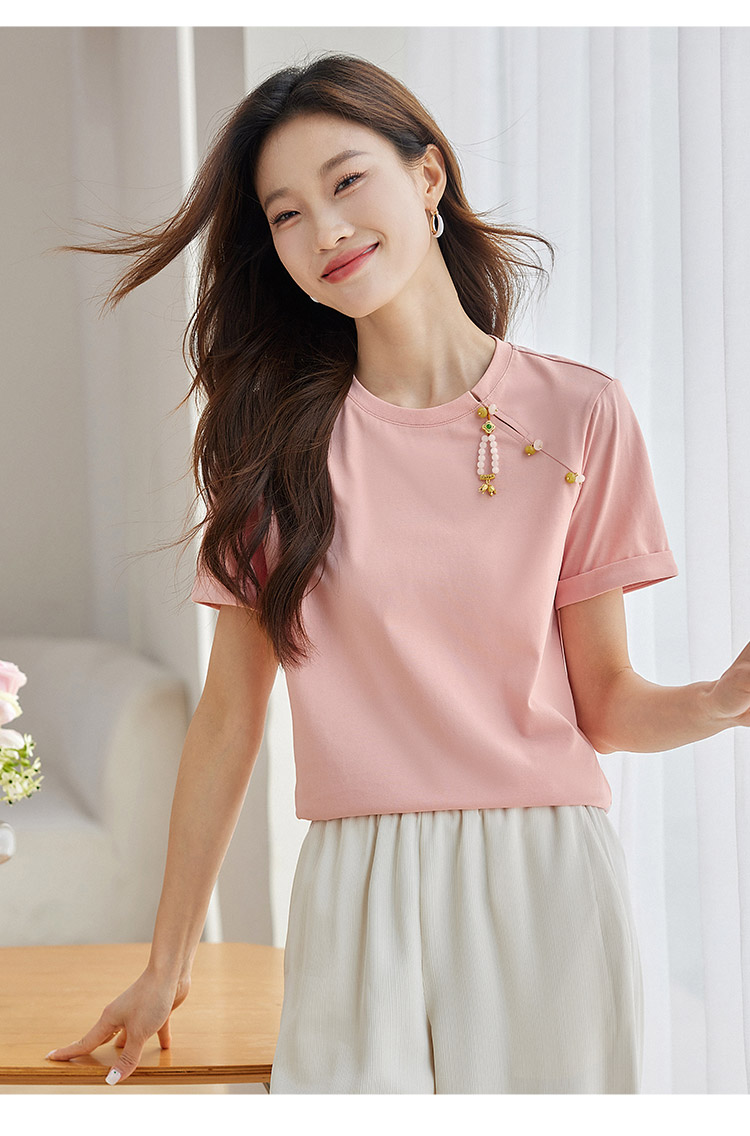 【专属特价】熙世界玉石吊坠新中式短袖T恤女2025夏新款圆领显瘦轻国风上衣