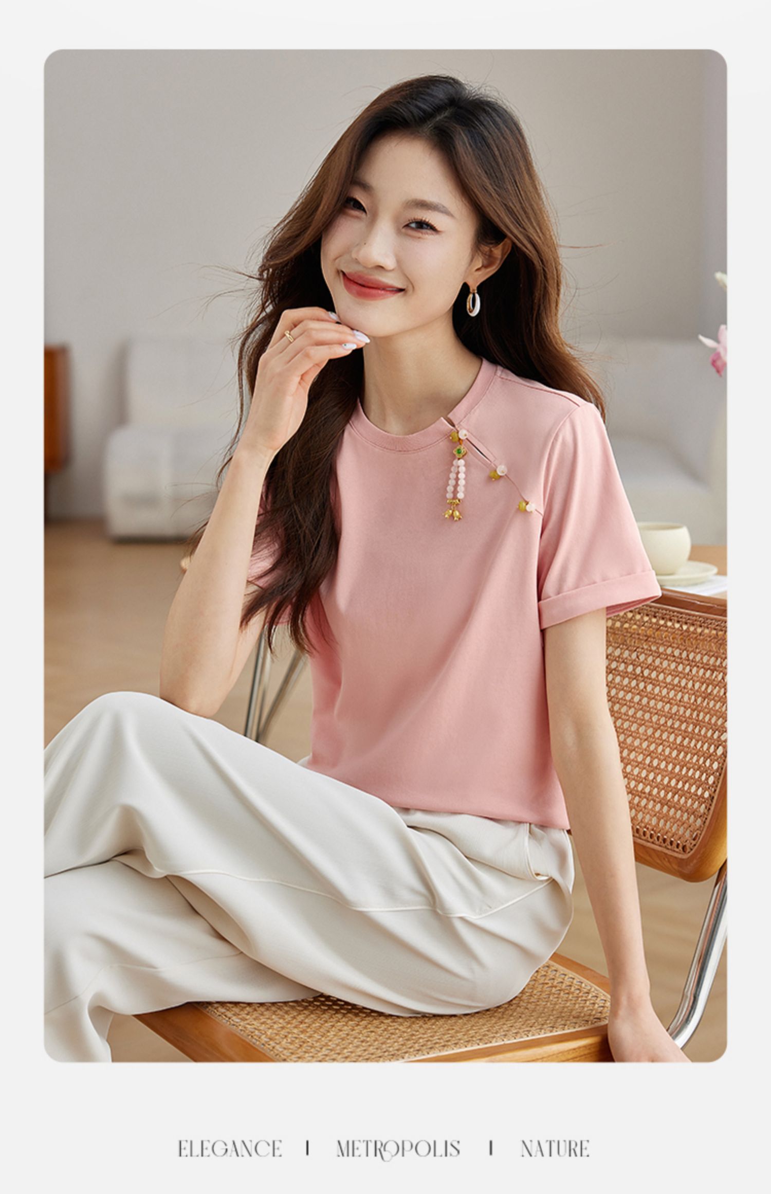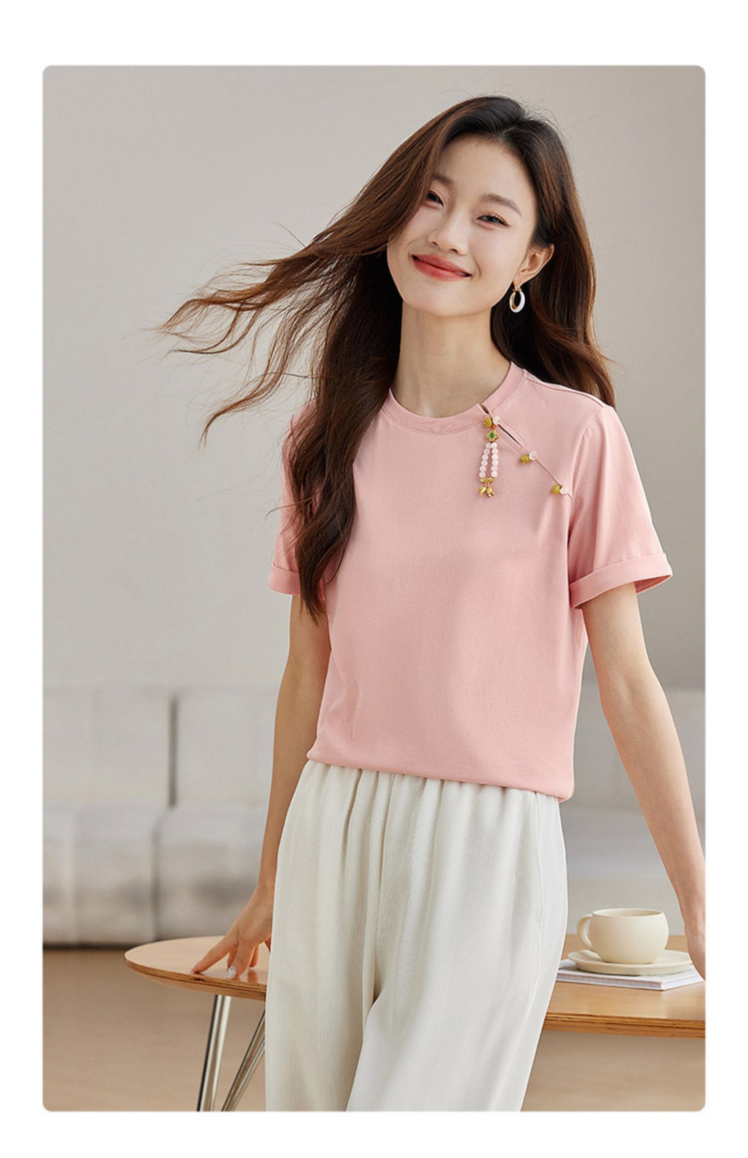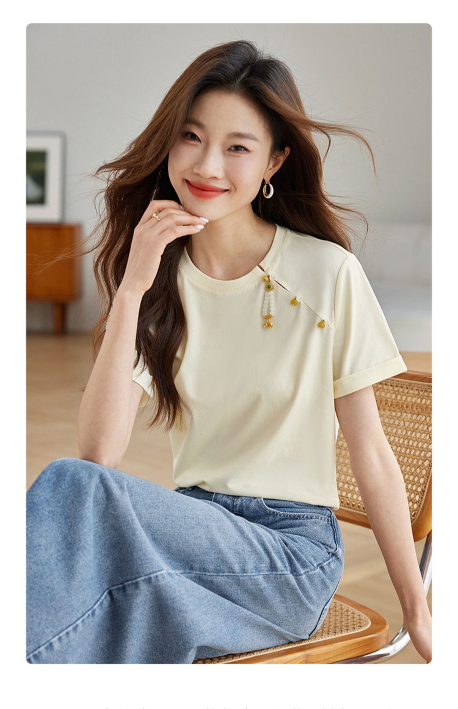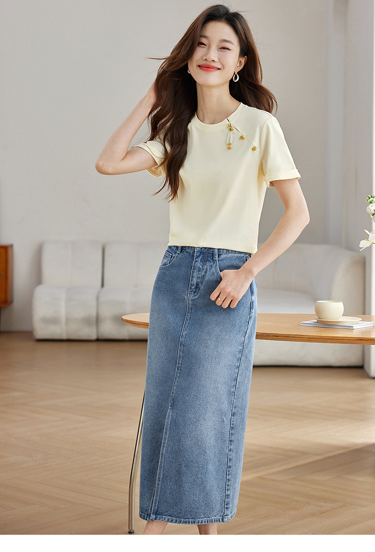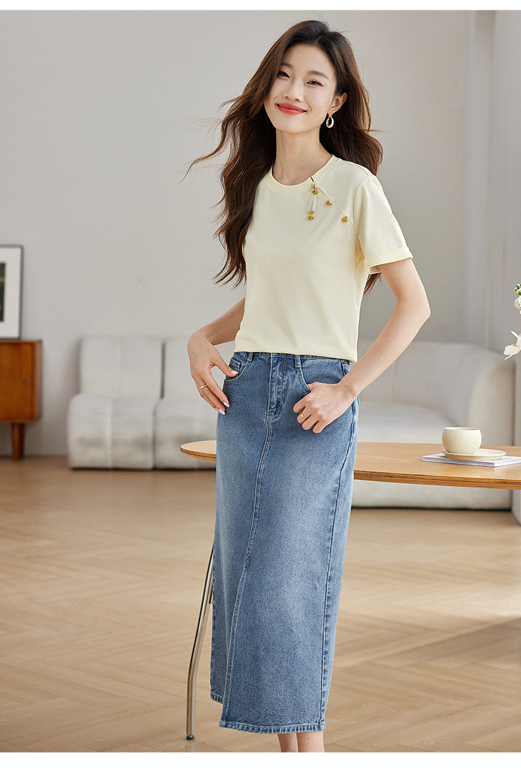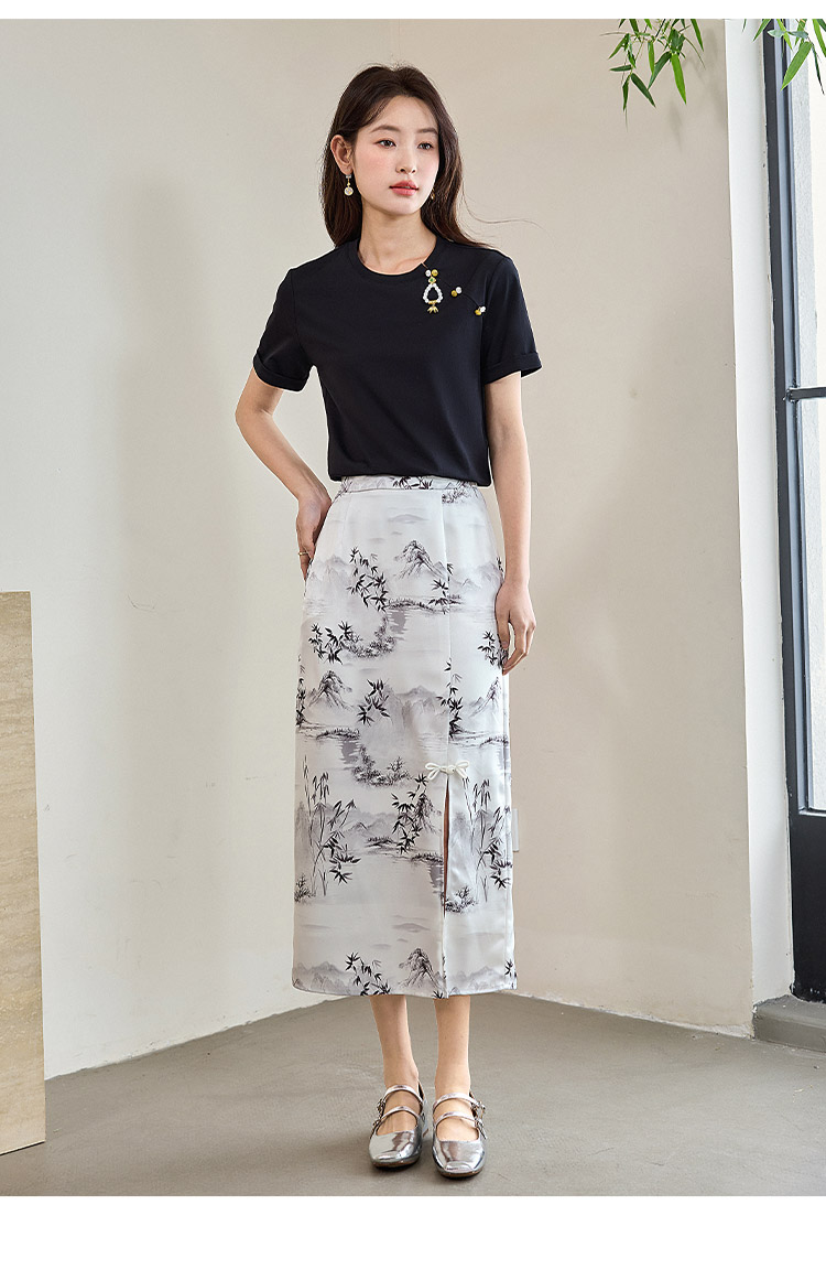 【专属特价】熙世界玉石吊坠新中式短袖T恤女2025夏新款圆领显瘦轻国风上衣